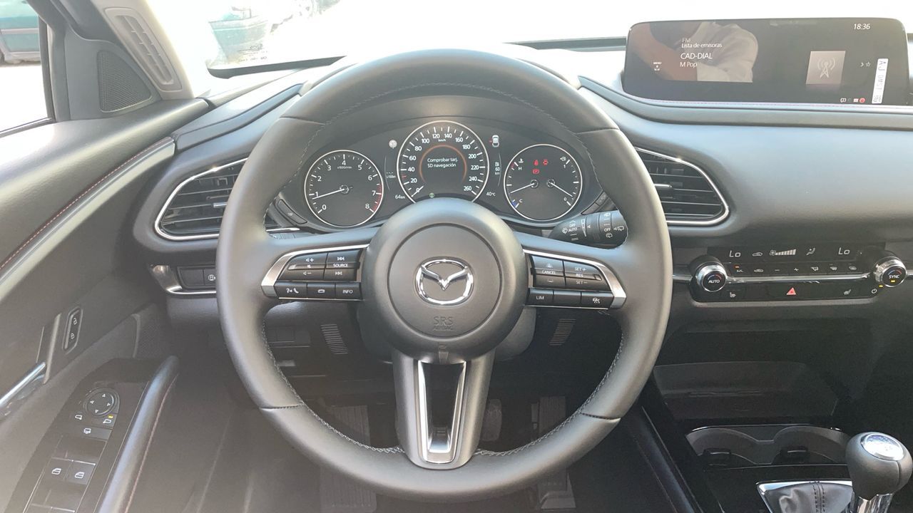 Bienvenido a WeevoCar, ¡Muchos coches, cero rollos! En WeevoCar creemos que comprar o vender un coche de ocasión debería ser fácil, transparente y sin complicaciones. Por eso reinventamos la experiencia: coches de calidad, precios claros y un equipo que te lo pone fácil desde el primer clic. · Financiación a tu medida: Elige la opción que mejor se adapte a ti. Diseñamos planes flexibles para que estrenes coche sin preocupaciones. · Vehículos certificados Todos nuestros coches pasan un control de 100 puntos en nuestros talleres oficiales. Calidad verificada, confianza garantizada. · Garantía mínima de 12 meses Con posibilidad de ampliación para que conduzcas con total tranquilidad. · Entrega donde quieras Llevamos tu coche a cualquier punto de la península por 350 € (IVA incluido). Y si estás en Baleares o quieres enviar tu coche allí: 550 € (IVA incluido). Recogida gratuita en instalación. · Valoramos tu coche a cambio Te damos la mejor tasación del mercado, rápida y sin compromiso. · Precio TODO INCLUIDO Sin sorpresas: IVA y transferencia ya incluidos en el precio final. Y para que no tengas que preocuparte por nada, te gestionamos también el seguro del vehículo en el momento de la compra. Contacta con nosotros a través del formulario web y uno de nuestros asesores te atenderá de forma personalizada. El vehículo ofertado puede no encontrarse físicamente en la ubicación del anuncio. La oferta es válida salvo error tipográfico en el precio o en la ficha. Imágenes no contractuales. ***EQUIPAMIENTO OPCIONAL INCLUIDO*** - Pintura metalizada Machine Gray. Polymetal Grey ***EQUIPAMIENTO SERIE INCLUIDO*** - Cinco plazas ( 2+3 ) - Ocho altavoces - Equipo de audio con radio AM/FM y radio digital - Control remoto de audio en el volante - Toma/s de 12v en los asientos delanteros - Cuatro frenos de disco siendo dos ventilados - ABS - Cierre eléctrico del maletero - Control de crucero con control de crucero adaptativo (ACC) - Espejo de cortesía iluminado en conductor en acompañante - Sistema de distancia de aparcamiento delanteros con sensor. sistema de distancia de aparcamiento traseros con sensor y cámara - Combustible: sin plomo 95 octanos y Combustible primario: gasolina - Acabados de lujo: pomo de la palanca de cambios en cuero. consola central en negro piano y tablero en cuero - Faros con lente elipsoidal. bombilla LED y luz larga con bombilla LED - Regulación de los faros con sensor de oscuridad y sensor de vehículos en sentido contrario - Encendido diurno automático - Airbag lateral de cortina delantero y trasero - Bandeja trasera rígida - Cierre centralizado con apertura por tarjeta/llave inteligente - Protección antirrobo - Airbag frontal del conductor. airbag frontal del acompañante desconectable - Airbags laterales delanteros - Dos reposacabezas en asientos delanteros ajustables en altura. tres reposacabezas en asientos traseros ajustables en altura - Cinturón de seguridad delantero en asiento conductor. acompañante y ajustable en altura - Cinturón de seguridad trasero en lado conductor. cinturón de seguridad trasero en lado acompañante. cinturón de seguridad trasero en asiento central de 3 puntos - Asientos de tela (material principal) y de tela (material secundario) - Apoyabrazos central delantero - Apoyabrazos trasero - Asiento delantero del conductor individual. térmico. ajuste longitudinal manual y ajuste manual en altura con ajuste manual del respaldo y ajuste manual de la inclinacion de la banqueta. asiento delantero del acompañante individual. térmico. ajuste longitudinal manual y ajuste manual en altura con ajuste manual del respaldo - Asientos traseros de tres plazas de tipo banco de orientación delantera con banqueta fija y respaldo abatible asimétrico - Volante multi-función de aluminio y cuero ajustable en altura y en profundidad - Dirección asistida eléctrica con endurecimiento progresivo s/velocidad - Sujetavasos en los asientos delanteros y los asientos traseros - Sistema de ventilación con filtro de carbón activo calefacción del motor - Controles de climatización diferenciados para conductor/acompañante - Aire acondicionado bizona de automático - Limpiaparabrisas delantero con sensor de lluvia - Lavafaros - Elevalunas eléctricos delanteros y traseros con dos de ellos de un solo toque - Navegador con datos vía tarjeta SD de 10.25 con información en 3D y con voz. control mediante botones/potenciómetros y información de tráfico 26.0. 36 y 60 - Sistema de servofreno de emergencia - Indicador de baja presión de los neumáticos con visualización de presión y sensor Montado en la llanta - Preparación Isofix - Tarjeta / llave inteligente con entrada sin llave y arranque sin llave - Sistema activacion por voz Alexa - Freno mano electrónico - Sensor de adelantamiento activo sin intermitente - Resultado de pruebas de impacto Euro NCAP :. puntuación global: 5.0. protección adultos: 99.0. protección niños: 86.0. protección peatones: 80.0. puntuación ayudas a la seguridad: 77.0. Versión evaluada: Mazda CX-30 2.0 petrol 5-door OD LHD y Fecha del test: 13 nov 2019 - Airbag de rodilla para el conductor - Control de arranque en pendiente - Encendido automático luces emergencia - Sistema de alarma de colisión: activa las luces de freno con asistencia de frenado. sistema antiatropello peatones/ciclistas y frenado a baja velocidad de 4 Km/h como mínimo aviso visual/ acústico. funciona por encima de 130 km/h / 78 mph. funciona por encima de 50 km/h / 30 mph. funciona por debajo de 50 km/h / 30 mph. incluye tráfico frontal en cruce y monitorización de patrón de conducción - Bluetooth - Start/Stop parada y arranque automático - Alerta de cambio de carril: activa la dirección - Cristal trasero oscurecido en el lateral trasero - Conexión para: USB delantero. 2. 0 y 0 - Botón de arranque del vehículo - Sistema de asistencia de aparcamiento trasero con visualización de guía - Limitador de velocidad -