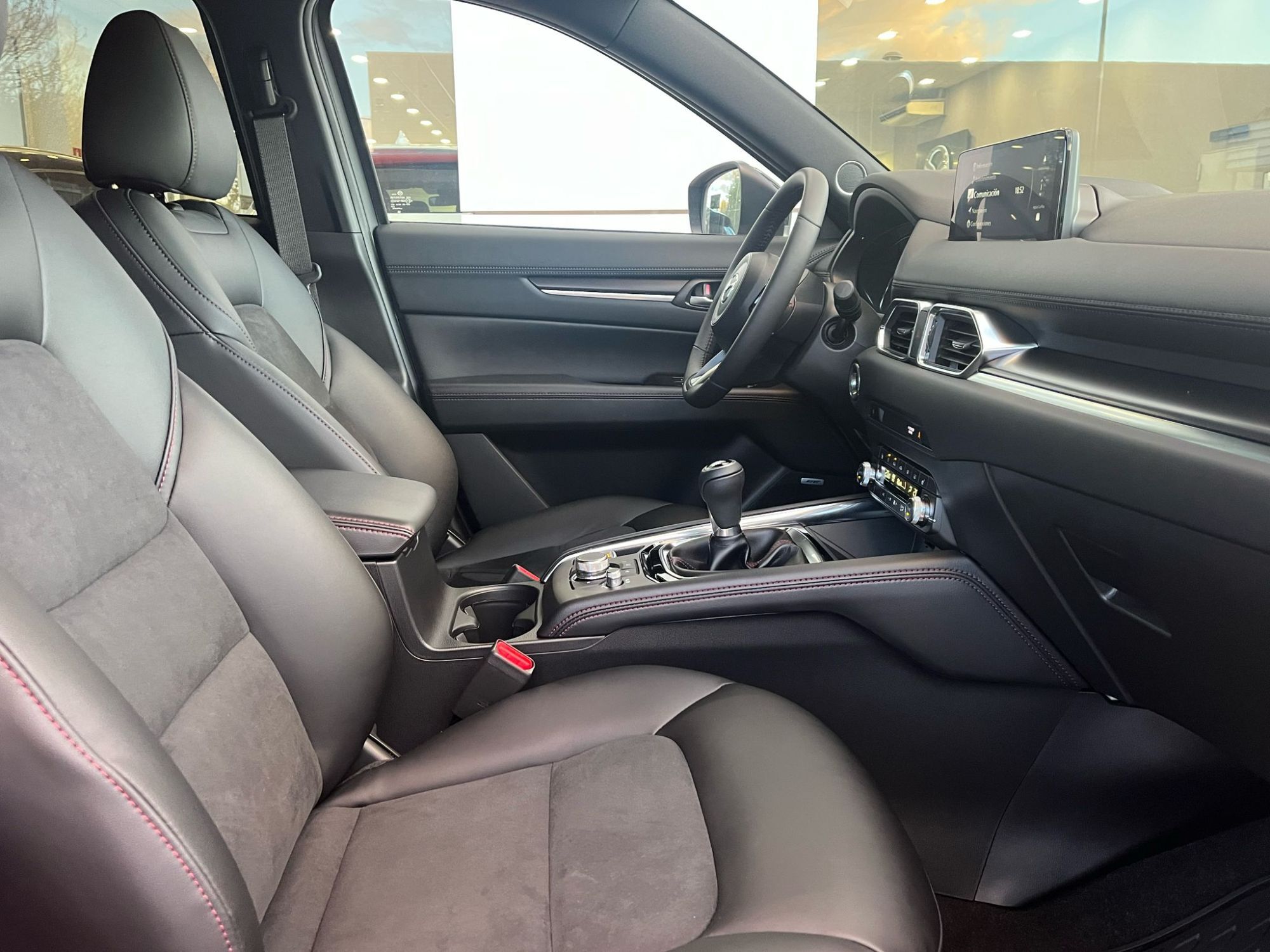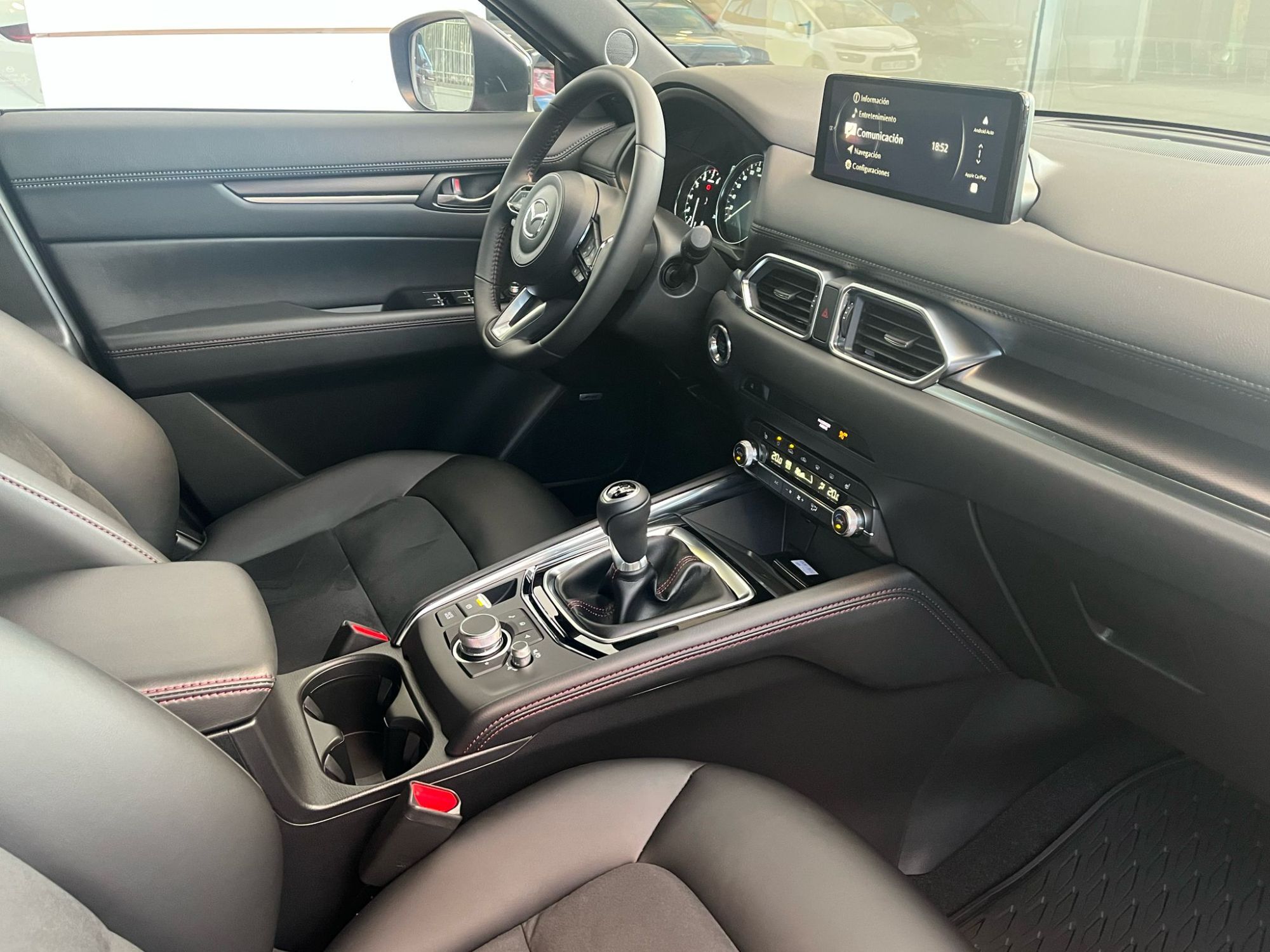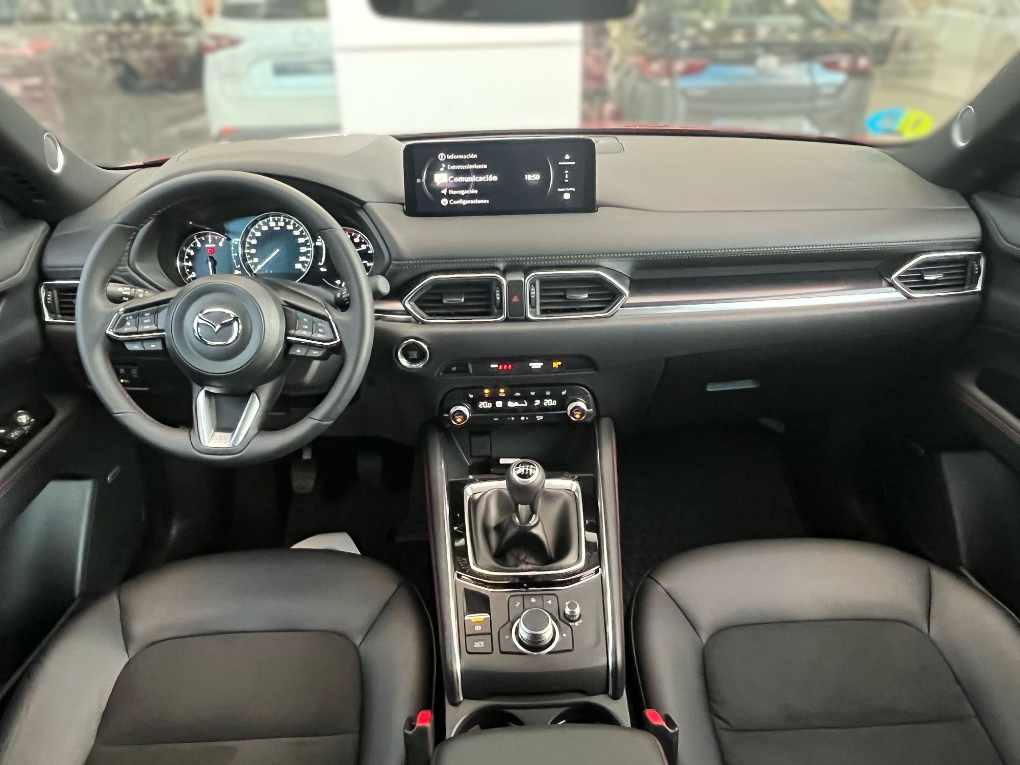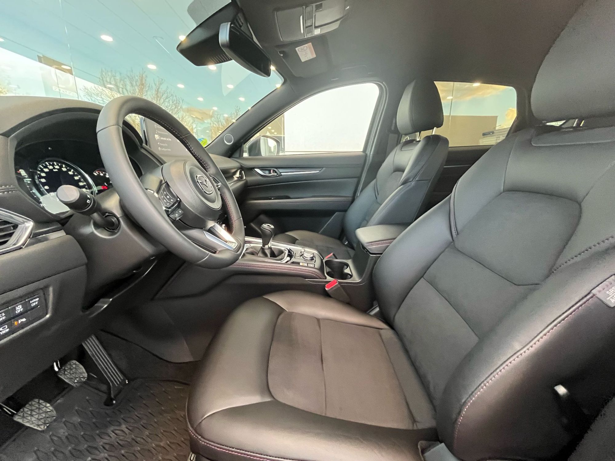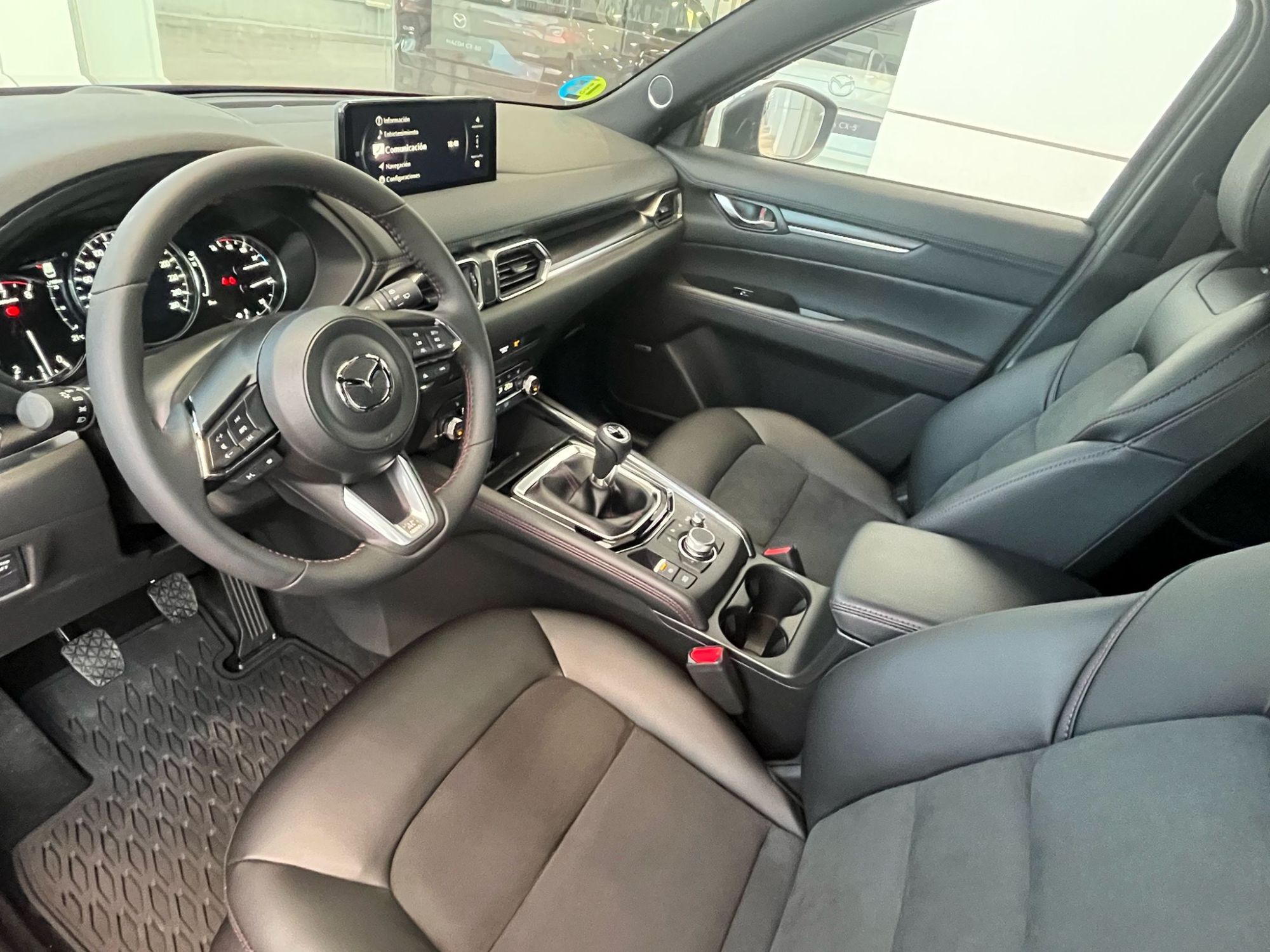 Concesionario Oficial Mazda en Ciudad Real y Valdepeñas Equipamiento versión Mazda CX-5 2.0G 165CV HOMURA MAZDA UNIQUE EXPERIENCE: : Garantía 6 años o 150.000 km desde fecha de matriculación, vehículo de cortesía gratuito, cita previa taller online y preferencial, entrega del coche lavado, compromiso precio mínimo garantizado y MyMazda App. Acceso inteligente sin llave Asientos traseros abatibles 40:20:40 Botón de arranque Climatizador bi-zona con salidas de aire traseras Guantera iluminada Pantalla táctil (en parado y con Android Auto y Apple Carplay) Retrovisor interior antideslumbramiento automático Sensor de lluvia y luz Ordenador de a bordo Ala frontal en negro Cristales traseros con tratamiento de privacidad Faros Full LED, luces diurnas y traseras LED Llantas de aleación 19 negras Luces diurnas LED Pasos de rueda en negro brillante Pilar B con acabado Piano Black Retrovisores exteriores calefactados y ajustables eléctricamente Retrovisores exteriores negros Sensores de aparcamiento (delantero y trasero) Zona inferior de los parachoques en negro brillante Asientos delanteros calefactados Asientos traseros reclinables Costuras rojas en puertas, consola central, volante y palanca de cambios Entrada AUX Molduras interiores de decoración en negro Radio digital (DAB) Sistema Bose® con 10 altavoces Techo interior en negro Volante y palanca de cambios con revestimiento de cuero Alarma con sensor de intrusión Asistente de tráfico y crucero (CTS) Control de crucero adaptativo por radar (MRCC) Detector de tráfico trasero (RCTA) Reconocimiento de señales de tráfico Sistema de asistencia a la frenada en ciudad trasero (RSCBS) Sistema de control de luces de largo alcance (HBC) DSC (Sistema de Control de Estabilidad) 2 USB tipo C delante Apple CarPlay y Android Auto inalámbricos Bluetooth Cierre automático de puertas Freno de estacionamiento electrico con Autohold Head Up Display de proyección en parabrisas Reposabrazos central trasero con 2 posavasos Sensor de humedad Volante calefactado Navegador Antena de tiburón Espejos de cortesía iluminados Faros Smart Full LED adaptativos (ALH) Luces Coming & Leaving Home Monitor de visión 360º Pequeño detalle en la parrilla en rojo Portón del maletero eléctrico Retrovisores exteriores con plegado eléctrico automático Salida de los escapes deportivas Spoiler techo 2 USB traseros Asientos delanteros regulables en altura Carga de móvil inalámbrica Cuadro de mandos con pantalla digital central de 17,8cm (7") Iluminación interior tipo LED Pantalla a color de 10,25" Reposabrazos de las puertas con costuras Suelo del maletero plano Volante multifunción Airbags frontales, laterales y de cortina Asistente de arranque en cuesta (HHA) Control de ángulo muerto (BSM) Detector de fatiga Frenada de emergencia pre-impacto (SBS) con alerta de obstrucción delantera Sistema de asistencia a la frenada en ciudad avanzado delantero (SCBS) con reconocimiento de peatones Sistema de aviso y prevención de cambio de carril involuntario Sistema de monitorización de presión de los neumáticos (TPMS) Kit de reparación de pinchazos