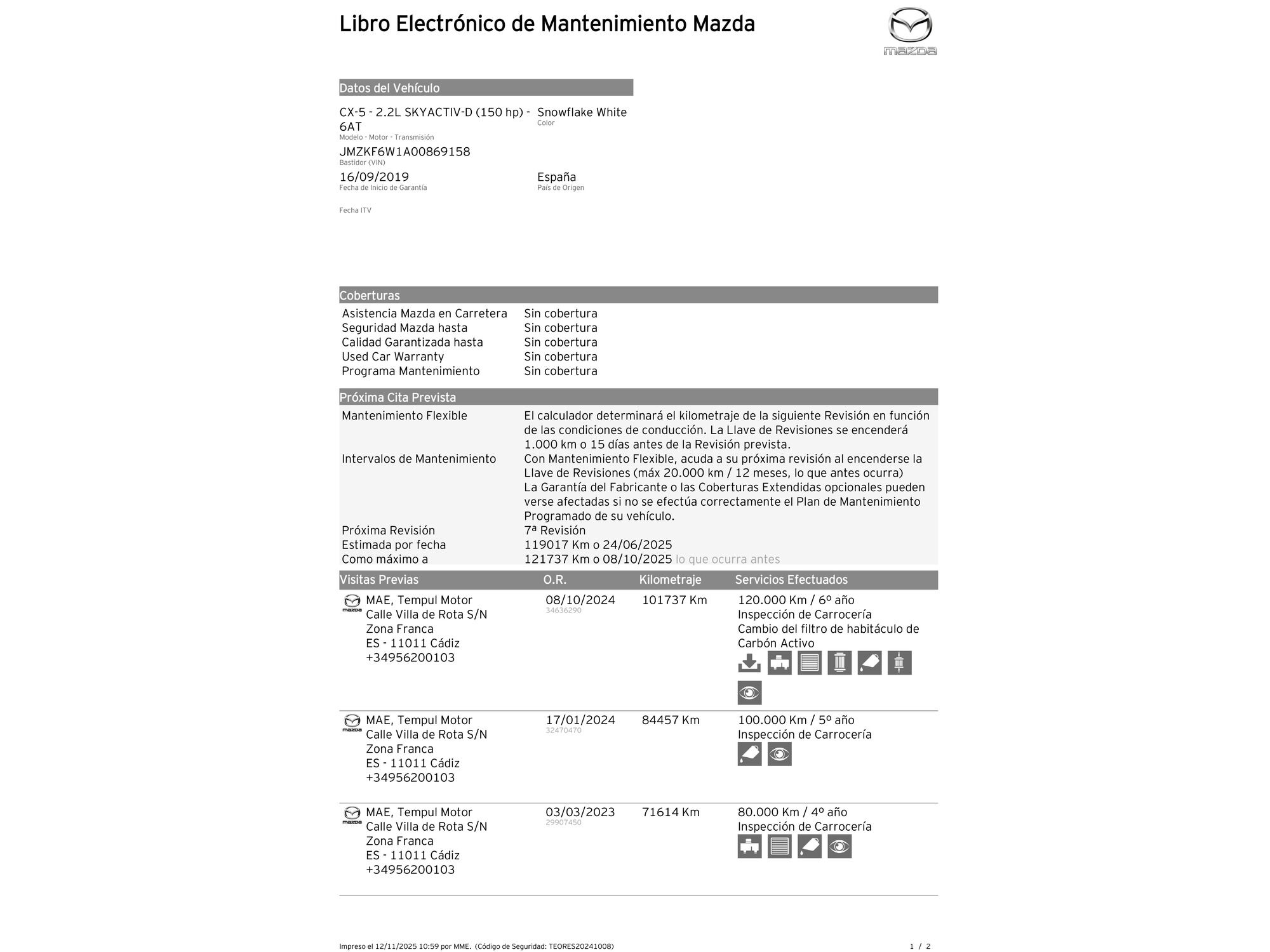 Mazda con 126.890 kilómetros de 2019 en Madrid
