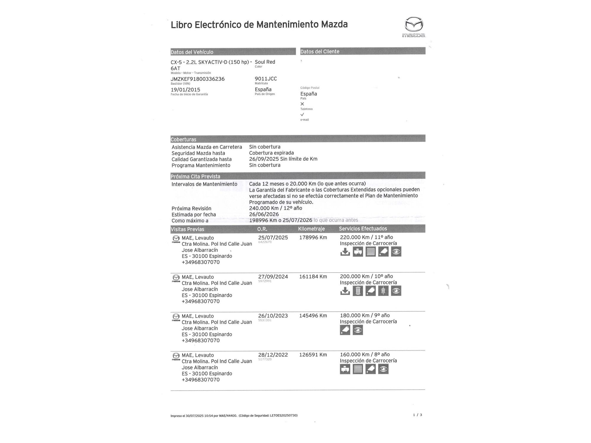 Mazda con 179.107 kilómetros de 2015 en Madrid