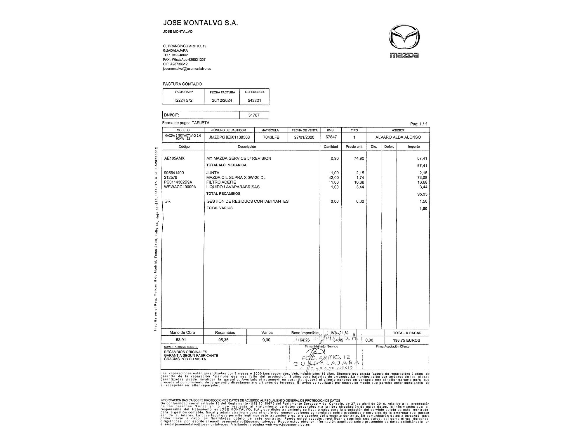 Mazda con 74.771 kilómetros de 2020 en Madrid