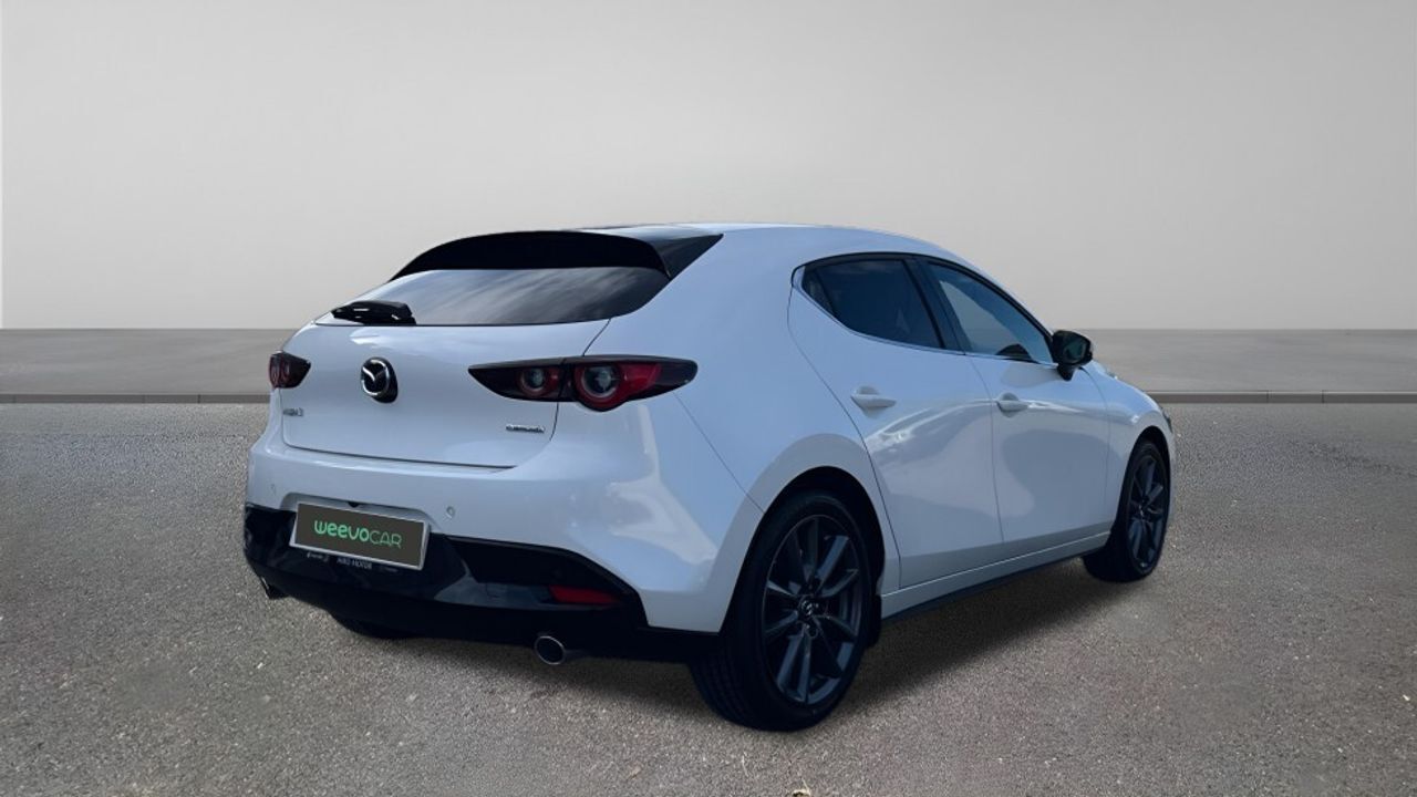 Bienvenido a WeevoCar, ¡Muchos coches, cero rollos! En WeevoCar creemos que comprar o vender un coche de ocasión debería ser fácil, transparente y sin complicaciones. Por eso reinventamos la experiencia: coches de calidad, precios claros y un equipo que te lo pone fácil desde el primer clic. · Financiación a tu medida: Elige la opción que mejor se adapte a ti. Diseñamos planes flexibles para que estrenes coche sin preocupaciones. · Vehículos certificados Todos nuestros coches pasan un control de 100 puntos en nuestros talleres oficiales. Calidad verificada, confianza garantizada. · Garantía mínima de 12 meses Con posibilidad de ampliación para que conduzcas con total tranquilidad. · Entrega donde quieras Llevamos tu coche a cualquier punto de la península por 350 € (IVA incluido). Y si estás en Baleares o quieres enviar tu coche allí: 550 € (IVA incluido). Recogida gratuita en instalación. · Valoramos tu coche a cambio Te damos la mejor tasación del mercado, rápida y sin compromiso. · Precio TODO INCLUIDO Sin sorpresas: IVA y transferencia ya incluidos en el precio final. Y para que no tengas que preocuparte por nada, te gestionamos también el seguro del vehículo en el momento de la compra. Contacta con nosotros a través del formulario web y uno de nuestros asesores te atenderá de forma personalizada. El vehículo ofertado puede no encontrarse físicamente en la ubicación del anuncio. La oferta es válida salvo error tipográfico en el precio o en la ficha. Imágenes no contractuales. ***EQUIPAMIENTO OPCIONAL INCLUIDO*** - Pintura metalizada ***EQUIPAMIENTO SERIE INCLUIDO*** - Cinco plazas ( 2+3 ) - Doce altavoces ( Bose ) con subwoofer - Equipo de audio con radio AM/FM. radio digital y pantalla táctil pantalla a color - Control remoto de audio en el volante - Toma/s de 12v en los asientos delanteros - Cuatro frenos de disco siendo dos ventilados - ABS - Control de crucero con control de crucero adaptativo - Espejo de cortesía iluminado en conductor en acompañante - Sistema de distancia de aparcamiento delanteros con sensor. sistema de distancia de aparcamiento traseros con sensor y cámara. sistema de distancia de aparcamiento en los lados con cámara - Combustible: sin plomo 95 octanos y Combustible primario: gasolina - Acabados de lujo: pomo de la palanca de cambios en cuero. consola central en negro piano y tablero en cromado - Faros con lente elipsoidal. bombilla LED y luz larga con bombilla LED - Regulación de los faros dependiente de la velocidad con ajuste de altura automático. faros direccionales. sensor de oscuridad y función de faros antiniebla luces de carretera activas y matricial - Encendido diurno automático - Airbag lateral de cortina delantero y trasero - Bandeja trasera rígida - Sujeción de carga - Cierre centralizado con apertura por tarjeta/llave inteligente - Protección antirrobo - Airbag frontal del conductor. airbag frontal del acompañante desconectable - Airbags laterales delanteros - Dos reposacabezas en asientos delanteros ajustables en altura. tres reposacabezas en asientos traseros ajustables en altura - Cinturón de seguridad delantero en asiento conductor. acompañante y ajustable en altura con pretensores - Cinturón de seguridad trasero en lado conductor. cinturón de seguridad trasero en lado acompañante. cinturón de seguridad trasero en asiento central de 3 puntos - Asientos de tela (material principal) y de tela (material secundario) - Apoyabrazos central delantero - Apoyabrazos trasero - Asiento delantero del conductor individual. térmico. ajuste longitudinal manual y ajuste manual en altura con ajuste manual del respaldo y ajuste manual de la inclinacion de la banqueta. asiento delantero del acompañante individual. térmico. ajuste longitudinal manual y ajuste manual en altura con ajuste manual del respaldo - Asientos traseros de tres plazas de tipo banco de orientación delantera con banqueta fija y respaldo abatible asimétrico - Volante multi-función de aluminio y cuero ajustable en altura y en profundidad - Dirección asistida eléctrica con endurecimiento progresivo s/velocidad - Sujetavasos en los asientos delanteros y los asientos traseros - Sistema de ventilación con pantalla digital. filtro de pólen y filtro de carbón activo calefacción del motor - Controles de climatización diferenciados digitales para conductor/acompañante - Aire acondicionado bizona de automático - Limpiaparabrisas delantero con sensor de lluvia - Lavafaros - Elevalunas eléctricos delanteros y traseros con dos de ellos de un solo toque - Navegador con datos vía tarjeta SD y pantalla a color de 10.25 con información en 3D y con voz. control mediante pantalla táctil y información de tráfico 26.0 - Sistema de servofreno de emergencia - Indicador de baja presion de los neumáticos con visualización de presión y sensor Montado en la llanta - Preparación Isofix - Tarjeta / llave inteligente con entrada sin llave y arranque sin llave - Sistema activacion por voz ninguno - Freno mano electrónico - Sensor de adelantamiento activo sin intermitente - Filtro de partículas - Resultado de pruebas de impacto Euro NCAP :. puntuación global: 5.0. protección adultos: 98.0. protección niños: 87.0. protección peatones: 81.0. puntuación ayudas a la seguridad: 73.0. Versión evaluada: Mazda 3 2.0 petrol. LHD y Fecha del test: 22 may 2019 - Airbag de rodilla para el conductor - Control de arranque en pendiente - Encendido automático luces emergencia - Sistema de alarma de colisión: activa las luces de freno con asistencia de frenado. sistema antiatropello peatones/ciclistas. monitorización del conductor y frenado a baja velocidad de 4 Km/h como mínimo aviso visual/ acústico. funciona por encima de 130 km/h / 78 mph. funciona por encima de 50 km/h / 30 mph y funciona por debajo de 50 km/h / 30 mph - Bluetooth - Start/Stop parada y arranque automático - Alerta de cambio de carril: activa la dirección - Cristal trasero 