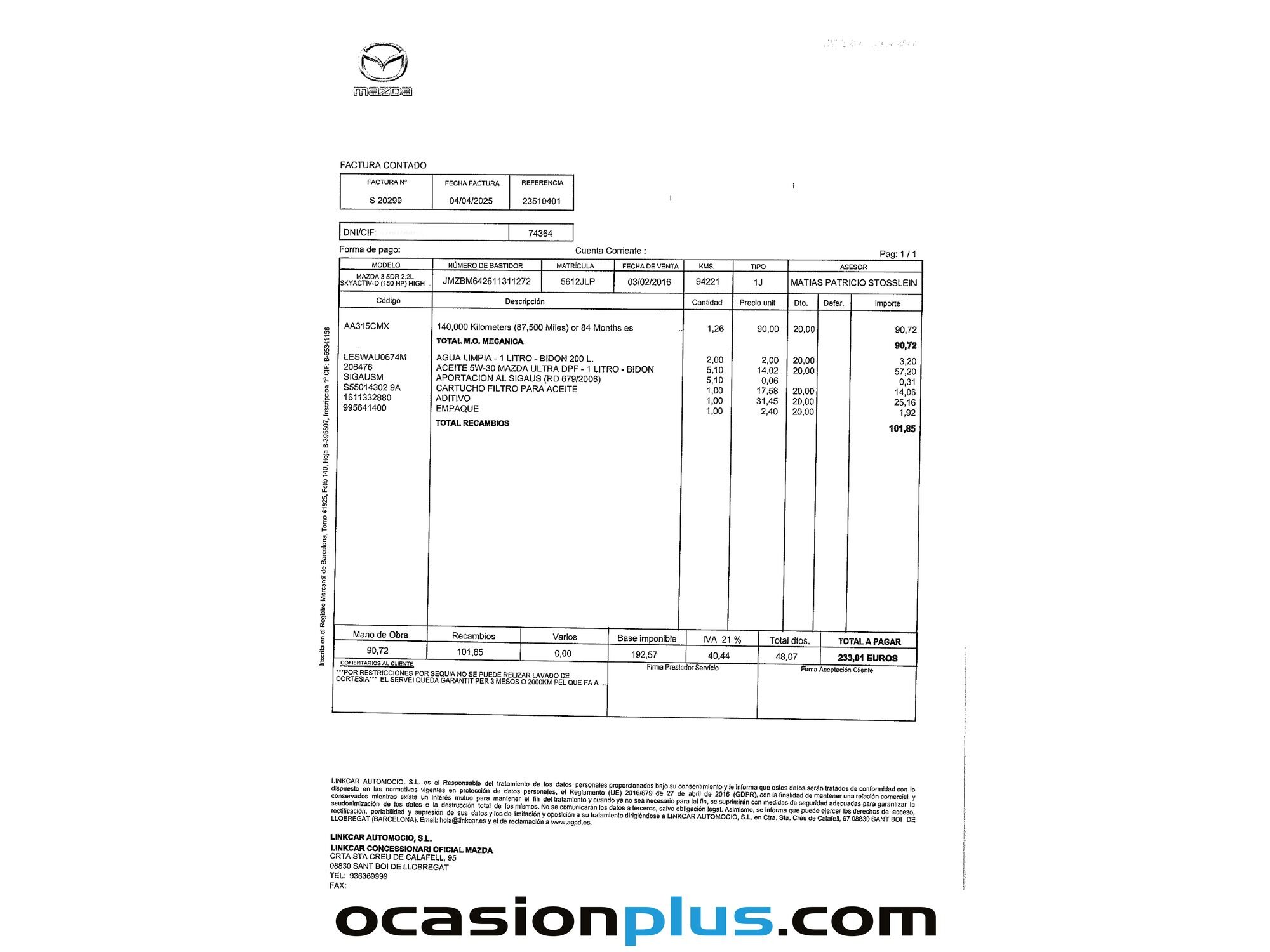¡LLEGA LA BLACK WEEK A OCASIONPLUS! HASTA 10.000 € DE SUPERDESCUENTOS EN MÁS DE 16.000 COCHES. SÓLO HASTA EL 30 DE NOVIEMBRE OCASIONPLUS - 16000 COCHES - 100 CENTROS OCASIONPLUS Nº1 CALIDAD - PRECIO Elige el coche que te guste y te lo llevamos a tu ciudad sólo con reservarlo 15 DÍAS / 1000 KMS DE PRUEBA Hasta 950€ de descuento en este coche ADEMÁS, HACEMOS LAS MEJORES FINANCIACIONES DEL MERCADO, PREGÚNTANOS!! Equipamiento destacado: Asientos calefactables, Faros bixenón, Ayuda aparcamiento, Encendido automático de faros, Sensor de lluvia, Sensor de presión de neumáticos, Start/Stop automático, Volante multifunción, Aire Acondicionado (Climatizador), Arranque por botón, Bluetooth, Isofix, Llantas de aleación (18"). - Coche Nacional, Historial Mantenimiento. - Garantía total 1 año, con cobertura nacional, ampliable a 24 meses. - Certificado de Kilómetros y ausencia de golpes estructurales. - Sobrevaloramos tu coche en operaciones de cambio. Tásalo ahora en ocasionplus.com - Entregamos cualquier coche en cualquier centro - Abierto Domingo y Festivos.