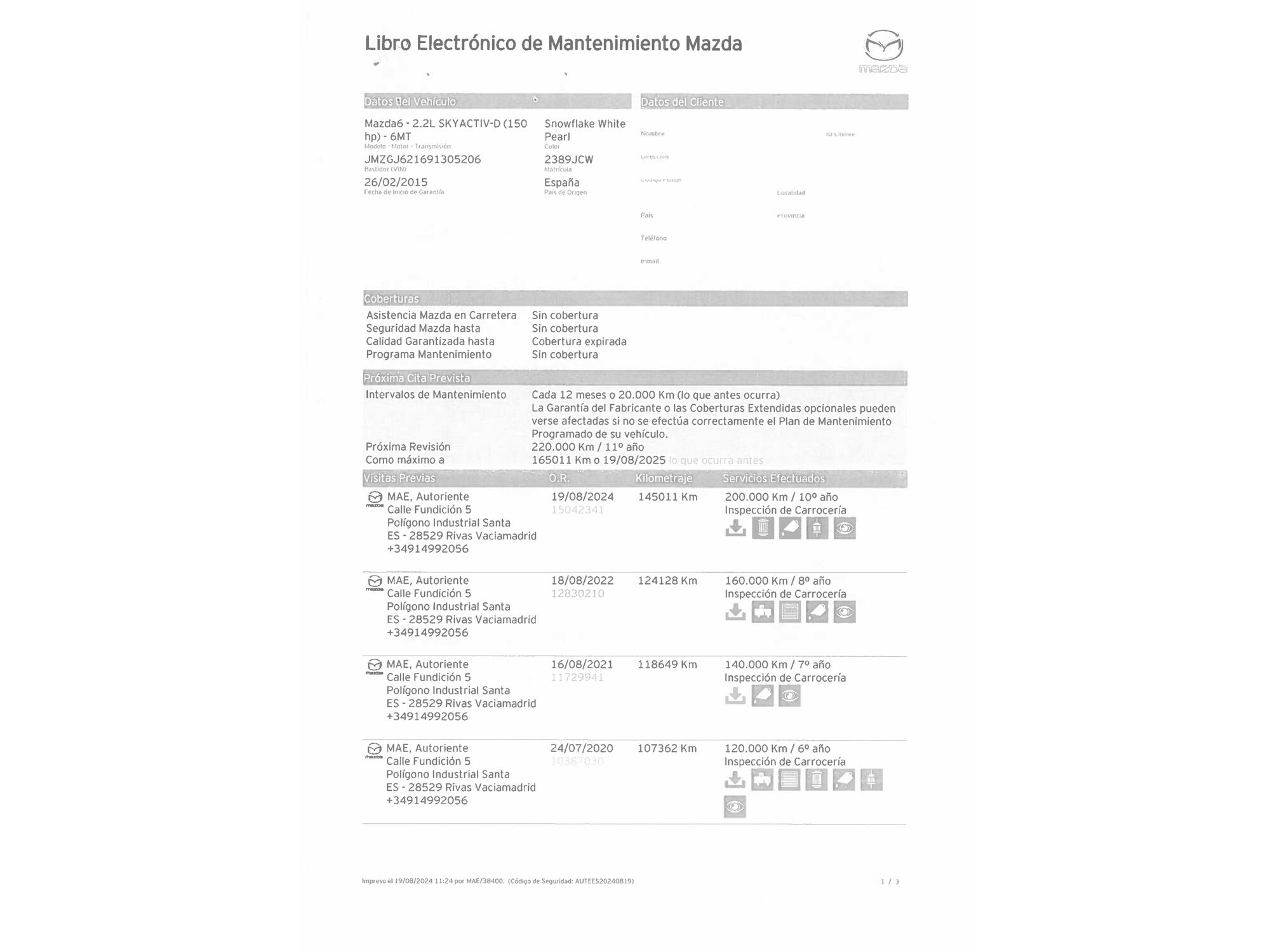 Mazda con 156.588 kilómetros de 2015 en Madrid