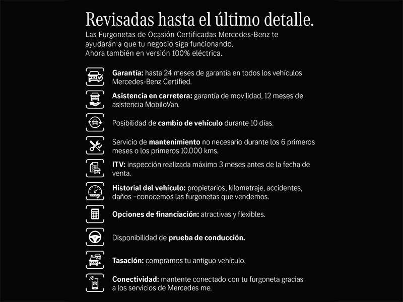 COMERCIAL DIMOVIL CONCESIONARIO OFICIAL MERCEDES-BENZ En MURCIA, perteneciente al Grupo Huertas,empresa con 119 años de experiencia en la venta de vehículos nuevos, ocasión y km 0.Vehículo con todos los mantenimientos realizados en concesionario oficial y con CERTIFICACIÓNMÁS EXHAUSTIVA DEL MERCADO, con mas de 200 puntos inspeccionados, garantizando los kilómetros y la no siniestralidad del vehículo.- Vehículos MERCEDES DE OCASION (Mercedes-Benz Certified) revisados bajo los estándares de MARCA con 2 años de garantía y kilometraje certificado.-Garantía de dos años para vehículos Mercedes-Benz certified, resto de vehículos garantía de 12 meses.- Prueba del vehículo antes de la compra.- Vehículos en perfecto estado de carrocería y mecánica.- Vehículos revisados 100% por nuestro Taller MERCEDES.- Posibilidad de Financiación 100% con las mejores condiciones del mercado.- Aceptamos vehículo como parte del pago.(Este anuncio puede contener errores, se muestra a título informativo y no contractual)Visítanos en nuestras exposiciones de:- Murcia: San Ginés (CITMUSA) Manzana 1 S/N, 30169.- Lorca: Pol. Ind Saprelorca, parcela K5 y K6, 30800.- Cartagena: Av. Juan Carlos I, 93, 30310 .- El Ejido: Pol. Ind. La Redonda C/ IX nº 15 (Almería) 04171.
