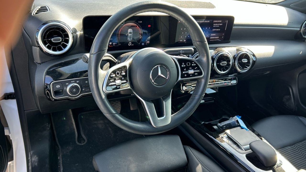 Este Mercedes-Benz Clase A 200 de 163 CV combina diseño compacto con un rendimiento ágil y refinado. Su motor gasolina de 1.3 litros ofrece una respuesta suave y eficiente, ideal para quienes buscan un coche urbano con capacidad para viajes más largos. Con 46.483 km y acabado en blanco, transmite una imagen moderna y cuidada. El interior destaca por su calidad y tecnología: incluye sistema MBUX con pantalla doble, navegación integrada, cámara trasera, sensores de aparcamiento, climatizador automático y control de crucero. También cuenta con llantas de aleación, iluminación ambiental y conectividad completa con smartphone. Es una opción muy interesante para conductores que valoran el confort, el diseño y la innovación en su día a día. Financiación 100% a tu medida y hasta 3 años de garantía. Aceptamos tu coche como parte de pago, con la máxima tasación tanto presencial como online.