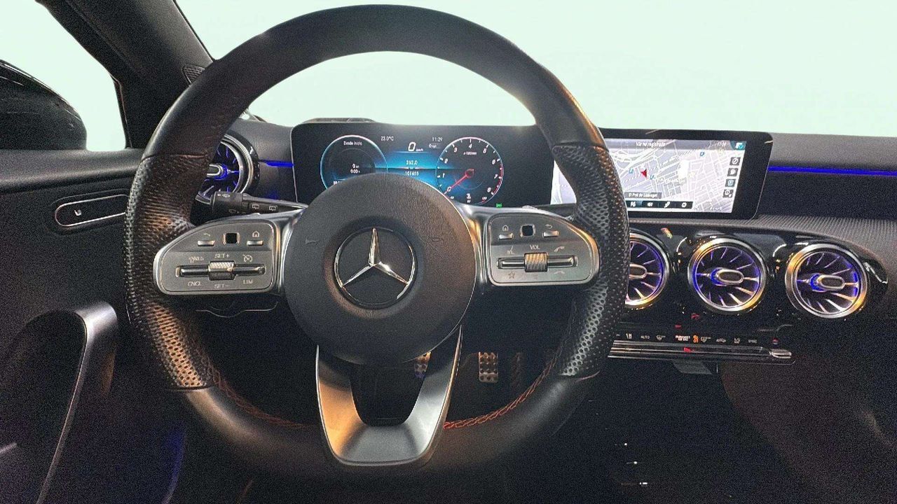 Climatizador automático bizona Retrovisores eléctricos abatibles Front Assist Start - stop Control de crucero adaptativo Lector de señales Elevalunas eléctricos Cierre centralizado con mando Apertura y arranque sin llave Airbags de conductor y pasajero Airbags laterales Antibloqueo de frenos (ABS) Ayuda de arranque en pendiente Control de estabilidad (ESC) Control de presión en neumáticos Dirección asistida eléctronica. Distribución electrónica de frenado (EBD) Pantalla táctil multifunción Mandos de radio en el volante Ordenador de a bordo Navegador Bluetooth, USB, entrada AUX Apple Carplay / Android Auto Sensores de luz y lluvia Regulador / limitador de velocidad (Cruise Control) Aviso de cambio involuntario de carril Sensores de aparcamiento delanteros y traseros Cámara trasera Llantas de aluminio Luz interior ambiental Asientos deportivos Tapicería de piel / alcántara A180d 5 AÑOS DE GARANTÍA, CONSULTAR CONDICIONES. Vehículo recién revisado, impecable de pintura (ni un arañazo). Precio sujeto a financiación, en caso de no financiar el precio es de 26.490 €. Tramitamos financiación a su medida. ACEPTAMOS SU VEHÍCULO COMO PARTE DE PAGO. PARA MÁS INFORMACIÓN LLAMAR AL TEL: 93 371 97 37 o al 655 86 85 78 La información mostrada puede contener errores tipográficos, de los cuales el establecimiento no se hace responsable.