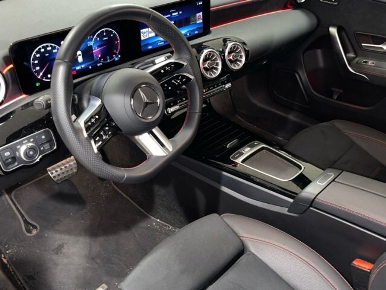 EQUIPAMIENTOS: DYNAMIC SELECT Preinstalación para compartir llave Asistente de frenado activo Red portaobjetos en respaldos delanteros Sensor de lluvia Extra Digital: Funciones MBUX ampliadas Módulo de comunicación (LTE) para el uso de Extras Digitales Extra Digital: Preinstalación para Live Traffic Information TEMPOMAT Climatización automática THERMOTRONIC Recordatorio pasivo de presencia de personas Filtro de particulas diesel Airbag de rodillas Alfombrillas AMG AMG Line AMG Line Advanced Plus Antena para GPS Apoyabrazos en las plazas traseras Apoyo lumbar con 4 vías de ajuste Asientos calefactados para conductor y acompañante Asientos deportivos Asientos traseros con respaldos abatibles Ayuda activa para aparcar con PARKTRONIC Cámara de marcha atrás Cambio automático 8G-DCT Capó activo para protección de peatones CENTRAL MEDIA DISPLAY Chaleco reflectante para el conductor Compartimento portaobjetos en la consola central con tapa de tipo persiana Cristales calorífugos tintados oscuros Depuración de los gases de escape con técnica EURO 6 Desconexión automática del airbag del acompañante Detector activo de cambio de carril Dirección directa Documento COC EU6 sin certificado matricul. p. II Eje trasero simple Extra Digital: Luces de carretera automáticas Extra Digital: MBUX Navegación Premium Extra Digital: Navegación por disco duro Extra Digital: Preinstalación para servicios de navegación Extra Digital: Servicios de acceso remoto Faros LED High Performance Iluminación de ambiente 64 colores Indicación estado cinturones traseros en visualizador de instrumentos Indicador de velocidad limite KEYLESS-GO Kit estético AMG Levas de cambio en el volante galvanizadas Llamada de emergencia Mercedes-Benz Llantas de aleación AMG de 45,7 cm (18") y 5 radios dobles Manual de instrucciones y libro de servicio - español Modificaciones Técnicas Neumáticos de verano Número de identificación del vehículo (VIN) Paquete Advanced Plus con Extras Digitales Paquete de alumbrado y visibilidad Paquete de aparcamiento con cámara de marcha atrás Paquete de asientos de confort Paquete de retrovisores Paquete Night Paquete USB Plus Parasol con espejos de cortesía iluminados Portavasos doble Preequipo de aire acondicionado para paises cálidos Preinstalación para radio digital Radio digital RE MIRON Retrovisor interior con sistema antideslumbrante automático Retrovisores exteriores abatibles eléctricamente Sistema de control de emisones diésel BlueTEC incluye reserva AdBlue® Sistema de control de la presión de los neumáticos Sistema de frenos deportivo Sistema inalámbrico de carga para dispositivos móviles delante Sistema multimedia MBUX Sonido deportivo del motor Techo interior de tela en color negro TIREFIT Tren de rodaje de confort de altura rebajada Visualizador del cuadro de instrumentos completamente digital Volante deportivo multifunción forrado en cuero napa