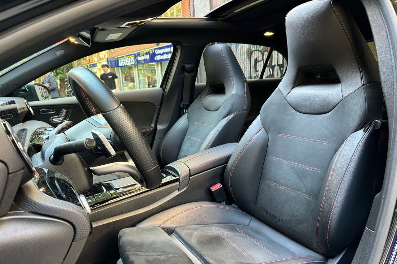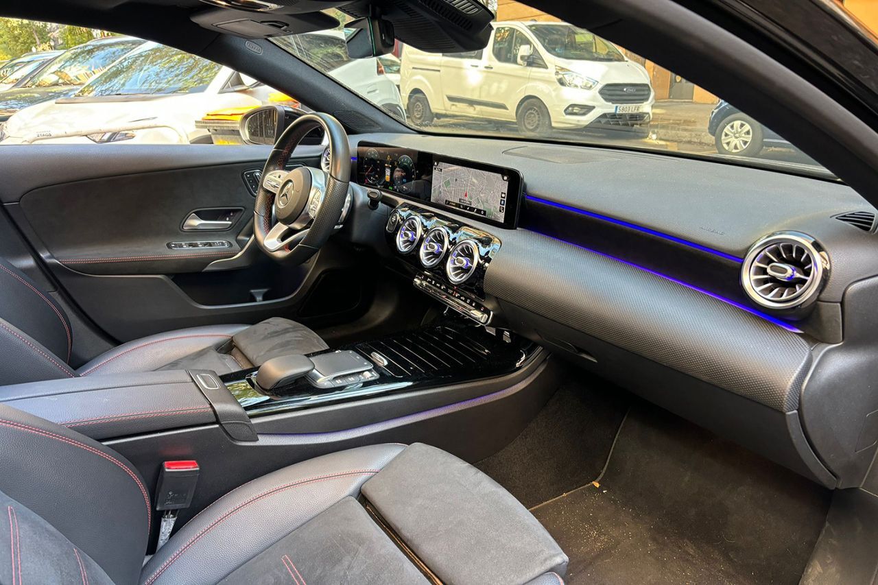 12 Meses de garantía incluida en el precio Vehículo nacional acabado AMG Line. Híbrido enchufable con hasta 74 km de autonomía eléctrica, lo que le otorga la etiqueta 0 Emisiones de la DGT. Techo solar panorámico, tapicería de cuero mixto, asientos con apoyo lumbar con 4 vías de ajuste, asientos delanteros deportivos con ajuste eléctrico y función de memoria, faros MULTIBEAM LED, asientos calefactados, sistema de navegación MBUX, cámara de marcha atrás junto con sensores de aparcamiento, alerta de salida involuntaria de carril, regulador de velocidad, ordenador de viaje, sensor de lluvia y luces, paquete Night con detalles exteriores en negro brillo junto con lunas traseras tintadas, iluminación ambiental de 64 colores, Apple CarPlay y Android Auto, acceso y arranque sin llave, retrovisores abatibles eléctricamente, radio digital, sistema de sonido Advance, volante multifunción con levas de cambio, visualizador del cuadro de instrumentos completamente digital, llantas de aleación en 18, pintura negro metalizado, Bluetooth, conexión USB. +49.000 EUR NUEVO, CONSULTAR LISTADO COMPLETO DE OPCIONALES. Vehículo de octubre de 2020