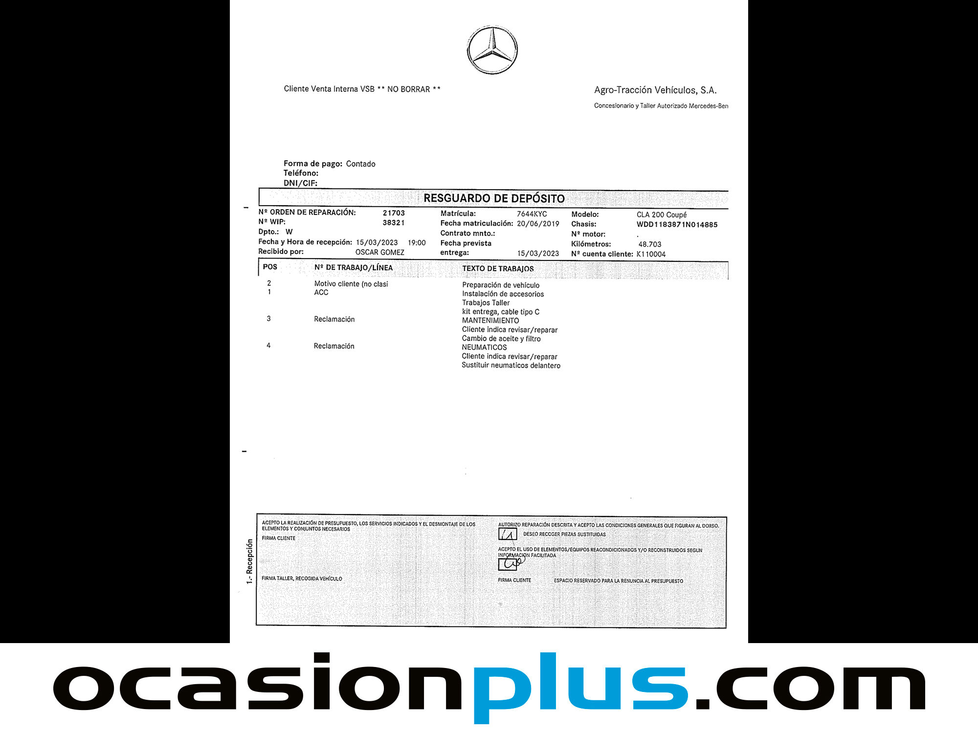 ¡LLEGA LA FERIA DE OTOÑO A OCASIONPLUS! HASTA 8.000 € DE DESCUENTO EN MÁS DE 16.000 COCHES.. OCASIONPLUS - 16000 COCHES - 100 CENTROS OCASIONPLUS Nº1 CALIDAD - PRECIO Elige el coche que te guste y te lo llevamos a tu ciudad sólo con reservarlo 15 DÍAS / 1000 KMS DE PRUEBA Hasta 1535€ de descuento en este coche Precio oferta financiado: 25355€ (consulta condiciones específicas de promo - sujeta a aprobación de la entidad financiera) Precio al contado: 27890€ ADEMÁS, HACEMOS LAS MEJORES FINANCIACIONES DEL MERCADO, PREGÚNTANOS!! Equipamiento destacado: Techo solar, Paquete AMG, Tapicería cuero-alcántara, Asientos calefactables, Asientos deportivos, Navegador, Car Play, Cámara de marcha atrás, Ayuda aparcamiento, Faros delanteros led, Faros traseros led, Encendido automático de faros, Sensor de lluvia, Start/Stop automático, Reconocimiento señales de tráfico, Asistente de mantenimiento de carril, Control de velocidad, Limitador de velocidad, Volante multifunción, Aire Acondicionado (Climatizador), Arranque por botón, Freno de estacionamiento eléctrico, Bluetooth, Llantas de aleación (18"). - Coche Nacional. - Garantía total 1 año, con cobertura nacional, ampliable a 24 meses. - Certificado de Kilómetros y ausencia de golpes estructurales. - Sobrevaloramos tu coche en operaciones de cambio. Tásalo ahora en ocasionplus.com - Entregamos cualquier coche en cualquier centro - Abierto Domingo y Festivos.