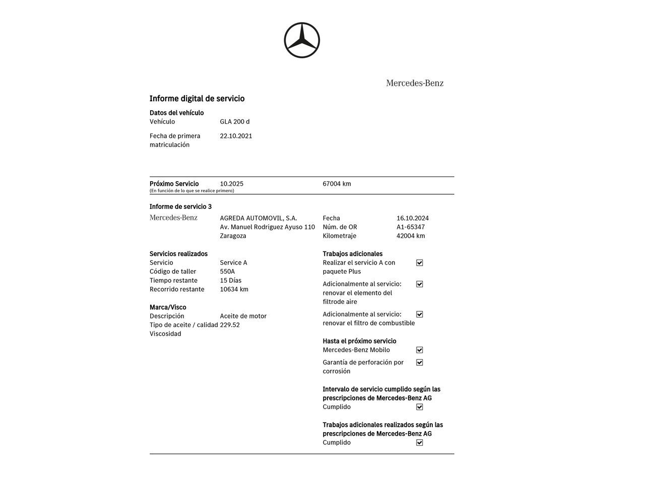 En HRmotor tenemos un coche como nuevo para ti esperándote. Disfrútalo con total tranquilidad, con hasta 2 años de garantía. Contamos con un stock de +3.000 coches de segunda mano para que puedas comprar un coche de ocasión que se adapte a todas tus necesidades y preferencias en nuestros más de 30 concesionarios repartidos en toda España. De esta manera nos encontramos en Madrid con 4 centros; en Barcelona con 4 centros; en Valencia con 3 centros; en Sevilla con 2 centros; en Málaga con 2 centros. Además, nos podrás encontrar también en Lleida, Girona, Castellón, Alicante, Bilbao, Gijón, Mallorca, Murcia, Pamplona, San Sebastián, Tudela, A Coruña, Valladolid, Zaragoza y Elche. Precio al contado de 32790€. o consultar condiciones. Mercedes-Benz Clase GLA 200d AMG Line * Sujeto a condiciones. Consulte con su comercial V-0322727 ***EQUIPAMIENTO EXTRA:*** - Panel de instrumentos digital (virtual cockpit) - Paquete Advantage - Pintura metalizada - Smartphone integrad. - Ventanilla lateral detrás y Luna trasera tintadas ***EQUIPAMIENTO SERIE:*** - Preinstalación car sharing - Paquete Luz y Visión - Paquete-maletero - protección de bajos delante y detrás (plata) - Retrovisor exterior regulable eléctricamente y calefactable, ambos - Retrovisor exterior color carrocería - Faro LED High Performance - Luz de día LED - Sensor de lluvia - Receptor de radio digital (DAB) - Sistema procesador de voz Funciones ampliadas (MBUX) - Mercedes-Benz Sistema de llamada de socorro - Asistente a la conducción: Sistema información del tráfico Live Tráfico - Conexión a USB - App-Connect - Módulo de comunicación (LTE) Preinstalación Mercedes me connect - Conexión USB atrás - Touchpad (consola central) - Asistente a la conducción: Indicador límite-velocidad - sistema de información Remote Service (Plus) - Sistema control presión neumáticos - Airbag de rodilla lado del conductor - Control de crucero (Tempomat) - Airbag conductor/acompañante - airbag para cadera delante (Pelvisbag) - airbag de la ventana delante y detrás - Airbag lateral delante - Airbag acompañante Desconectable - consola central delante con Persiana / Portaobjetos - Reposabrazos central delante con Guantera - Climatizador automático - Respaldo del asiento trasero dividido/abatible (40:20:40) - Elevalunas eléctric. delante + detrás - Cierre centralizado con Mando a distancia - Función encendido: Power KeyFree - Portón trasero con automático sistema de apertura y cierre - Alarma antirrobo + Protección del habitáculo interior / Protección para remolque - Monitorización del vehículo (sistema para localizar el vehículo) - Enchufe (enchufe 12V) adicional - Compartimento para gafas en Techo interior integrad. - Sistema antibloqueo (ABS) - Asistente a la conducción: activo Asistente del freno - Asistente a la conducción: activo Asistente del carril (Soporte de la dirección) - Kit reparación de neumáticos - Volante (Sport) con Multifunción - Programa electrónico de estabilidad (ESP) - Asistente a la conducción: Multi-Sense (Conmutador del modo de conducción) - Sistema SCR (Tecnología-AdBlue) - Reducción polución según norma gases escape Euro 6d - Depósito combustible: agrandado - Sistema Start/Stop - Filtro partículas - Línea de diseño y equipamiento AMG Line - Carrocería: 5 puertas - Tipo transmisión: Tracción delantera - Batalla 2729 mm - Caja de cambios 8-marchas - Caja cambios doble embrague DCT - Motor 2,0 Ltr. - 112 kW (Sistema: 135 kW) 16V Híbrido