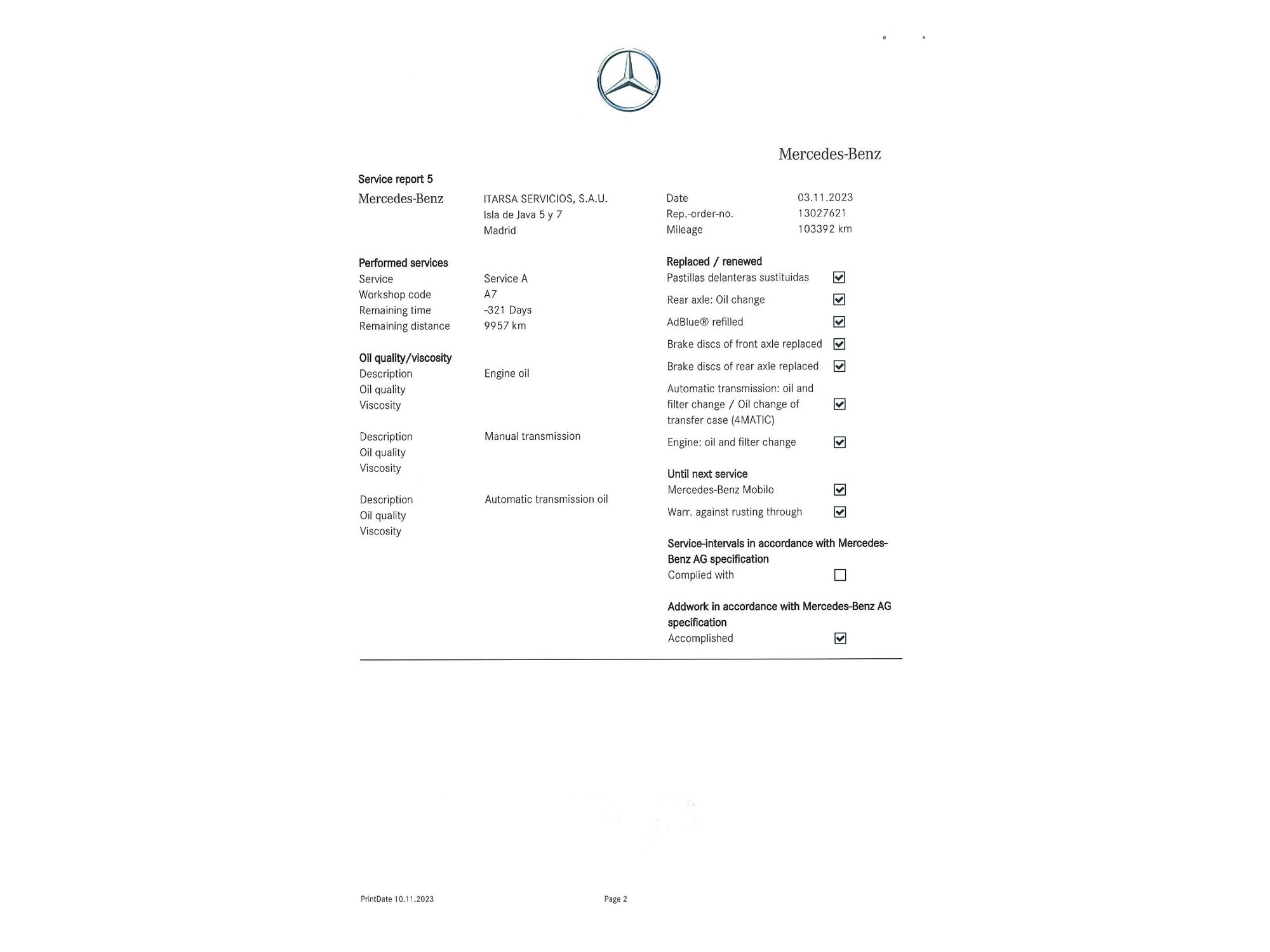Mercedes Benz con 129.891 kilómetros de 2017 en Madrid