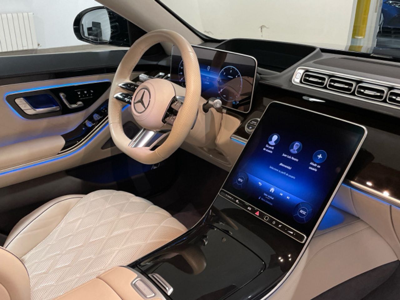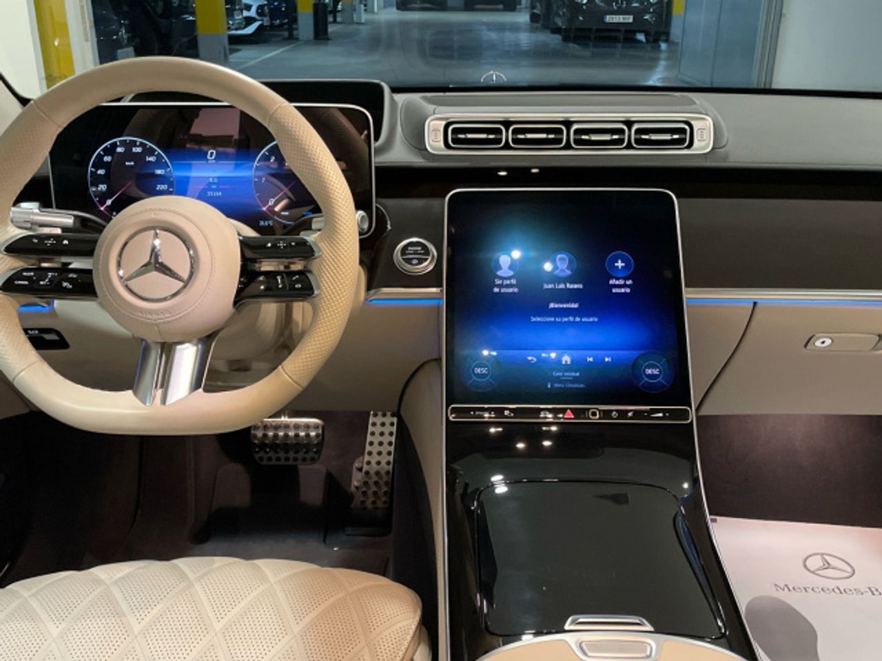 - Cuero napa beige macchiato / gris magma - Molduras de madera de raíz de nogal marrón brillan - Paquete Premium Plus - DIGITAL LIGHT - Techo corredizo panorámico - Head-Up-Display con realidad aumentada MBUX - Visualizador 3D para el conductor - Paquete ENERGIZING plazas delanteras - MAGIC VISION CONTROL - Cristales calorífugos tintados oscuros - Cámara de 360° - AMG Line