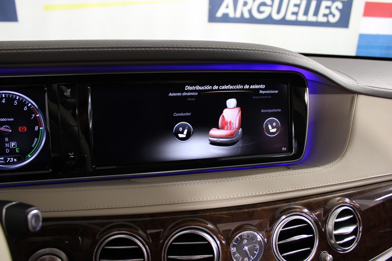 12 Meses de garantía incluida en el precio Vehículo nacional DE FINALES DE 2013 con motor híbrido, lo que le otorga la etiqueta ECO de la DGT. Suspensión neumática, techo solar panorámico, tapicería de cuero beige, asientos multicontorno eléctricos con memoria, sistema de navegación Comand, asientos calefactados y ventilados, faros LED inteligentes, asientos con función de masaje, cámara de visión trasera junto con sensores de aparcamiento, climatizador bizona, sonido premium Burmester, alerta de vehículos en ángulo muerto y de salida involuntaria de carril, regulador de velocidad ADAPTATIVO, retrovisores abatibles eléctricamente, volante multifunción con levas de cambio, iluminación ambiente, cierre de puertas softclose, pintura negro Obsidiana metalizado, llantas de aleación, Bluetooth, conexión AUX y USB. +114.000EUR NUEVO, CONSULTAR LISTADO COMPLETO DE OPCIONALES. Vehículo con 112.071kms.