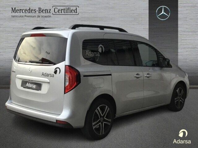 Equipamiento opcional: - [0-EM7] 2 interfaces USB consola central detras - [0-502] Actualizaciones asistente de velocidad inteligente - [0-SI1] Airbag central, airbags lat. y windowbag del./det. - [0-SA4] Airbag conductor y acompañante - [0-VL2] Alfombrillas de terciopelo - [0-805] Año mod. X4/1 - [0-VF8] Apoyabrazos central ARTICO, paneles puertas NEOTEX - [0-FG1] Apoyabrazos con compartimento - [0-FX7] Arranque KEYLESS-GO - [0-SF6] Asiento conductor altura var. con apoyo lumbar - [0-SL2] Asiento del acompanante, ajustable en altura - [0-IU1] Asientos en la 2.ª fila - [0-BA3] Asistente de frenado activo - [0-JQ1] Asistente para señales de tráfico B - [0-JQ2] ATTENTION ASSIST B - [0-J66] Avisador cinturon no abrochado cond. acomp. y det. - [0-E07] Ayuda al arranque en pendientes - [0-F2U] Ayuda para aparcar trasera - [0-U77] Banco trasero FOLD & LOAD dividido 1/3 : 2/3 - [0-D11] Barras longitudinales en el techo con soporte ba - [0-FG5] Bolsas en los respaldos de los asientos delantero - [0-ES1] Caja de enchufe 12 V para el habitaculo - [0-FR8] Cámara de marcha atrás - [0-G7A] Cambio automatico de 7 marchas - [0-H00] Canal de aire caliente para habitáculo - [0-I5A] Carga util de serie - [0-XE8] Catalizador ECO 90 g - [0-HH4] Climatización automática THERMOTRONIC - [0-XW9] Código de control modificación WLTP - [0-X5B] CÓDIGO INTERNO AC1B2 - [0-X1G] CODIGO INTERNO FRAN - [0-X5C] CÓDIGO INTERNO PRAIS - [0-XE5] Código interno SSVOLP - [0-IK3] Combi de lujo - [0-ZZ7] Contenido de marca Mercedes-Benz - [0-JP7] Control de ángulo muerto - [0-W70] Cristales tintados negros en el compartimento - [0-JK5] Cuadro de instrumentos con display en color - [0-V57] Cubierta de portamaletas - [0-T78] Cubierta del riel puerta corredera color vehiculo - [0-F4W] Depósito de agua lavaparabrisas de mayor volumen - [0-SK5] Desconexión automática airbag acompañante - [0-JB4] Detector activo de cambio de carril - [0-H1E] Difusores de ventilacion plazas traseras - [0-IM1] Distancia entre ejes 2.716 mm - [0-XC9] Documento COC - [D-DUP0] DUP Código duplicado 0 - [0-Z10] Ejecución camino estándar - [0-FI9] Elem. adorno tablero instr. pint. brillante negra - [0-FI8] Elementos adorno pintura plateada mate efecto seda - [0-FE3] Elevalunas el. del. lado conductor funcion confort - [0-FE7] Elevalunas eléctrico en puerta corredera - [0-V55] Enmoquetado habitaculo - [0-V56] Enmoquetado maletero - [0-F56] Espejo en el parasol de acompañante - [0-F58] Espejo en el parasol de conductor - [0-F78] Espejo para el habitaculo - [0-IG4] Estándar - [0-LG7] Faros LED High Performance - [0-KL5] Filtro combustible con separador de agua - [0-KA1] Filtro de particulas - [0-B25] Freno de estacionamiento eléctrico - [0-MJ8] Función de parada y arranque ECO - [0-XZ0] Generación de modelos 0 - [0-XF8] Generación de modelos GSR2B - [0-EY6] Gestión de averías - [0-FQ3] Guantera lado acompanante, cerrada - [0-LC1] Iluminación de ambiente - [0-LL1] Iluminacion interior en tecnica LED - [0-I29] Iluminacion interior LED delante + 2a fila - [0-C0Z] Listones de umbral con distintivo "Mercedes-Benz" - [0-R2I] Llantas aleación 43,2 cm (17") y diseño 5 radios - [0-I42] Llantas de aleacion de 17" - [0-Z1M] Matriculación M1 - [0-SZ6] Mesita plegable en el respaldo del conductor y de - [0-JH3] Módulo comunicación (LTE) para servicios digitales - [0-FC0] Moldura del portón trasero en cromo - [0-I5D] Motor diesel - [0-MW6] Motor OM 608.9 DE 15 LA 85 KW (116 CV) - [0-RM7] Neumáticos de verano - [0-RD9] Neumáticos sin especificación de la marca - [0-MT8] NIVEL DE EMISIONES EURO 6E M/N1 clase II - [0-FP4] Paquete cromado para el interior - [0-E4S] Paquete de integracion de smartphone - [0-P2F] Paquete de seguridad activa - [0-P2V] Paquete SE - [0-CM0] Parachoques pintados - [0-FK3] Parrilla cromada para el radiador - [0-C1J] Pomo palanca de cambio en cuero - [0-EC5] Preinstalación para Digitale Extras - [0-EY2] Preinstalación para Live Traffic Information - [0-EW6] Preinstalación Remote Services Plus - [0