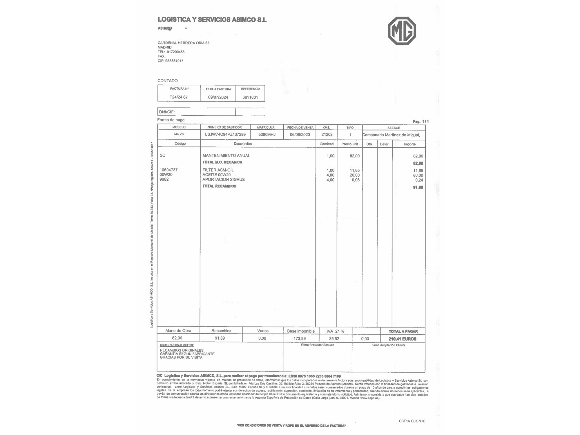 MG con 40.208 kilómetros de 2023 en Madrid