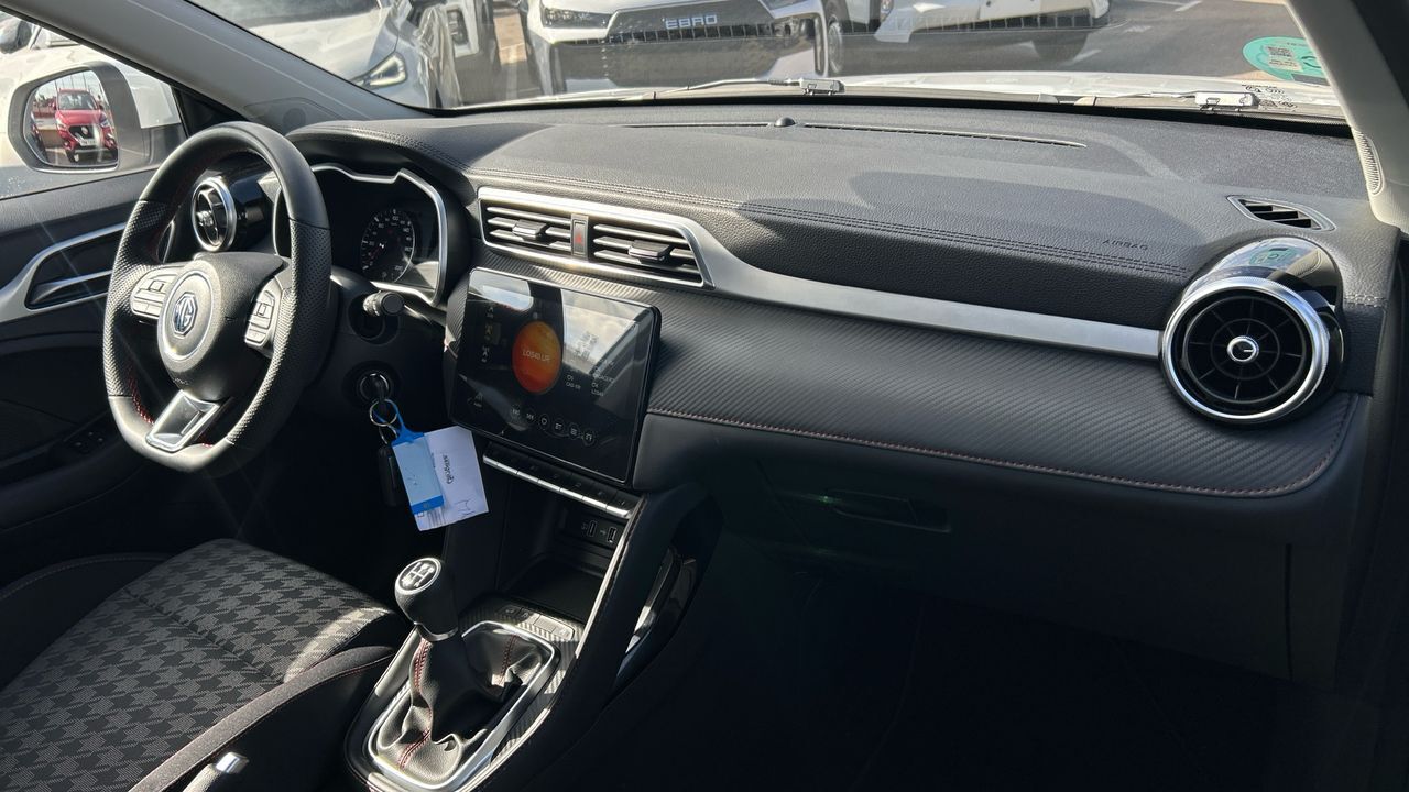 Este MG ZS Comfort con motor gasolina 1.5 de 106 CV es un SUV compacto que combina funcionalidad y diseño, ideal para quienes buscan un vehículo cómodo para el día a día y con espacio suficiente para escapadas en familia. Con 24.400 km, se presenta como una opción equilibrada entre rendimiento y practicidad, con una conducción suave y una posición elevada que mejora la visibilidad. Su equipamiento incluye pantalla táctil con conectividad, aire acondicionado, control de velocidad, sensores traseros y llantas de aleación. El color blanco aporta un aspecto limpio y moderno, fácil de mantener. Es perfecto para conductores que valoran la amplitud interior, la sencillez en el manejo y un consumo ajustado en trayectos urbanos y mixtos. Financiación 100% a tu medida y hasta 3 años de garantía. Aceptamos tu coche como parte de pago, con la máxima tasación tanto presencial como online. ***EQUIPAMIENTO SERIE INCLUIDO*** - Cinco plazas ( 2+3 ) - Cuatro altavoces - Equipo de audio con radio AM/FM. radio digital y pantalla táctil - Control remoto de audio en el volante - Toma/s de 12v en los asientos delanteros - Cuatro frenos de disco siendo dos ventilados - ABS - Control de crucero - Espejo de cortesía en conductor en acompañante - Sistema de distancia de aparcamiento traseros con sensor - Combustible: sin plomo 95 octanos y Combustible primario: gasolina - Acabados de lujo: pomo de la palanca de cambios en símil aluminio. consola central en símil fibra de carbono. puertas en símil aluminio y tablero en símil aluminio - Faros con lente elipsoidal. bombilla LED y luz larga con bombilla LED - Regulación de los faros con sensor de oscuridad y sensor de vehículos en sentido contrario - Encendido diurno automático - Airbag lateral de cortina delantero y trasero - Bandeja trasera flexible - Sujeción de carga - Cierre centralizado con mando a distancia - Protección antirrobo - Portaequipajes longitudinal en el techo en Cromados/Plateados - Airbag frontal del conductor. airbag frontal del acompañante desconectable - Airbags laterales delanteros - Dos reposacabezas en asientos delanteros ajustables en altura. tres reposacabezas en asientos traseros ajustables en altura - Cinturón de seguridad delantero en asiento conductor. acompañante y ajustable en altura - Cinturón de seguridad trasero en lado conductor. cinturón de seguridad trasero en lado acompañante. cinturón de seguridad trasero en asiento central de 3 puntos - Asientos de tela (material principal) y de cuero sintético (material secundario) - Apoyabrazos central delantero - Asiento delantero del conductor individual. ajuste longitudinal manual y ajuste manual en altura con ajuste manual del respaldo. asiento delantero del acompañante individual y ajuste longitudinal manual con ajuste manual del respaldo - Sujetavasos en los asientos delanteros - Sistema de ventilación con filtro de carbón activo controles en pantalla táctil y calefacción del motor - Aire acondicionado de automático - Limpiaparabrisas delantero con sensor de lluvia - Elevalunas eléctricos delanteros con uno de ellos de un solo toque. elevalunas eléctricos traseros - Sistema de servofreno de emergencia - Indicador de baja presión de los neumáticos con visualización de presión - Preparación Isofix - Resultado de pruebas de impacto Euro NCAP :. puntuación global: 5.0. protección adultos: 90.0. protección niños: 85.0. protección peatones: 64.0. puntuación ayudas a la seguridad: 70.0. Versión evaluada: MG ZS EV 5-door OD LHD y Fecha del test: 18 dic 2019 - Control de arranque en pendiente - Encendido automático luces emergencia - Sistema de alarma de colisión: activa las luces de freno con asistencia de frenado. sistema antiatropello peatones/ciclistas y frenado a baja velocidad de 0 Km/h como mínimo aviso visual/ acústico. funciona por encima de 130 km/h / 78 mph. funciona por encima de 50 km/h / 30 mph y funciona por debajo de 50 km/h / 30 mph - Bluetooth - Alerta de cambio de carril: activa la dirección - Cristal trasero oscurecido en el lateral trasero - Conexión para: USB delantero. 1. 0 y 0 - Limitador de velocidad - Luces de freno. luces de cruce. luces intermitentes laterales. Luces de día. Luces traseras y luces de carretera con tecnología LED - Reconocimiento señales de tráfico - Modos de conducción con cartografía del motor