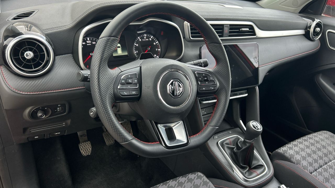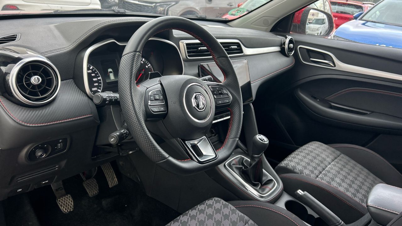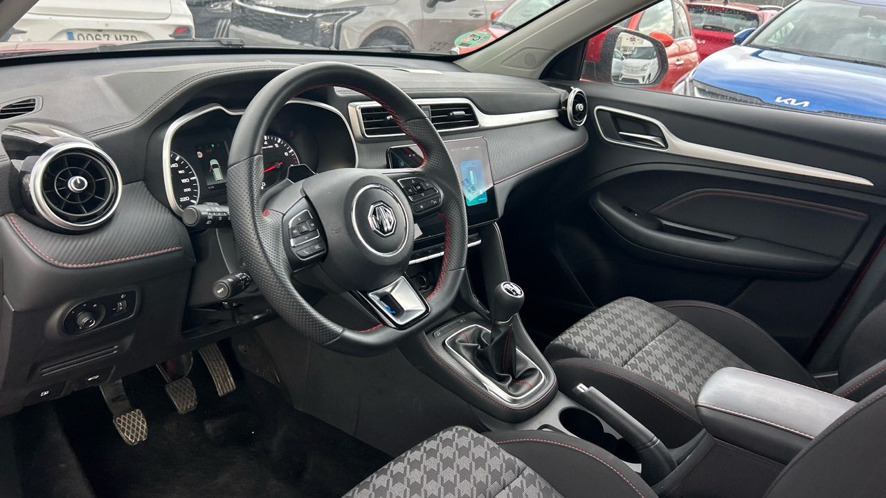 Este MG ZS 1.5 Comfort de 106 CV ofrece una conducción sencilla y agradable, pensada para quienes buscan un SUV compacto con buena relación entre espacio, equipamiento y consumo. Con 20.047 km y acabado en rojo metalizado, destaca por su diseño moderno y su altura al suelo, que facilita el acceso y mejora la visibilidad. Dispone de pantalla táctil con conectividad, cámara trasera, climatizador, control de crucero y sensores de aparcamiento. El interior es amplio y funcional, con buena capacidad de maletero para el uso diario o escapadas. Es una opción adecuada para familias pequeñas o conductores que valoran la comodidad sin complicaciones, tanto en ciudad como en carretera. Financiación 100% a tu medida y hasta 3 años de garantía. Aceptamos tu coche como parte de pago, con la máxima tasación tanto presencial como online. ***EQUIPAMIENTO OPCIONAL INCLUIDO*** - Pintura metalizada ***EQUIPAMIENTO SERIE INCLUIDO*** - Cinco plazas ( 2+3 ) - Cuatro altavoces - Equipo de audio con radio AM/FM. radio digital y pantalla táctil - Control remoto de audio en el volante - Toma/s de 12v en los asientos delanteros - Cuatro frenos de disco siendo dos ventilados - ABS - Control de crucero - Espejo de cortesía en conductor en acompañante - Sistema de distancia de aparcamiento traseros con sensor y cámara - Combustible: sin plomo 95 octanos y Combustible primario: gasolina - Acabados de lujo: pomo de la palanca de cambios en símil aluminio. consola central en símil fibra de carbono. puertas en símil aluminio y tablero en símil aluminio - Faros con lente elipsoidal. bombilla LED y luz larga con bombilla LED - Regulación de los faros con sensor de oscuridad y sensor de vehículos en sentido contrario - Encendido diurno automático - Airbag lateral de cortina delantero y trasero - Bandeja trasera flexible - Sujeción de carga - Cierre centralizado con mando a distancia - Protección antirrobo - Portaequipajes longitudinal en el techo en Cromados/Plateados - Airbag frontal del conductor. airbag frontal del acompañante desconectable - Airbags laterales delanteros - Dos reposacabezas en asientos delanteros ajustables en altura. tres reposacabezas en asientos traseros ajustables en altura - Cinturón de seguridad delantero en asiento conductor. acompañante y ajustable en altura - Cinturón de seguridad trasero en lado conductor. cinturón de seguridad trasero en lado acompañante. cinturón de seguridad trasero en asiento central de 3 puntos - Asientos de tela (material principal) y de cuero sintético (material secundario) - Apoyabrazos central delantero - Asiento delantero del conductor individual. ajuste longitudinal manual y ajuste manual en altura con ajuste manual del respaldo. asiento delantero del acompañante individual y ajuste longitudinal manual con ajuste manual del respaldo - Sujetavasos en los asientos delanteros - Sistema de ventilación con filtro de carbón activo controles en pantalla táctil y calefacción del motor - Aire acondicionado de automático - Limpiaparabrisas delantero con sensor de lluvia - Elevalunas eléctricos delanteros con uno de ellos de un solo toque. elevalunas eléctricos traseros - Navegador con datos vía internet de 12.30 con información en 3D y con voz. control mediante pantalla táctil y información de tráfico 31.2. 0 y 999 - Sistema de servofreno de emergencia - Indicador de baja presión de los neumáticos con visualización de presión - Preparación Isofix - Resultado de pruebas de impacto Euro NCAP :. puntuación global: 5.0. protección adultos: 90.0. protección niños: 85.0. protección peatones: 64.0. puntuación ayudas a la seguridad: 70.0. Versión evaluada: MG ZS EV 5-door OD LHD y Fecha del test: 18 dic 2019 - Control de arranque en pendiente - Encendido automático luces emergencia - Sistema de alarma de colisión: activa las luces de freno con asistencia de frenado. sistema antiatropello peatones/ciclistas. monitorización del conductor y frenado a baja velocidad de 0 Km/h como mínimo aviso visual/ acústico. funciona por encima de 130 km/h / 78 mph. funciona por encima de 50 km/h / 30 mph y funciona por debajo de 50 km/h / 30 mph - Bluetooth - Alerta de cambio de carril: activa la dirección - Cristal trasero oscurecido en el lateral trasero - Conexión para: USB delantero. 1. 0 y 0 - Limitador de velocidad - Luces de freno. luces de cruce. luces intermitentes laterales. Luces de día. Luces traseras y luces de carretera con tecnología LED - Reconocimiento señales de tráfico - Modos de conducción con cartografía del motor