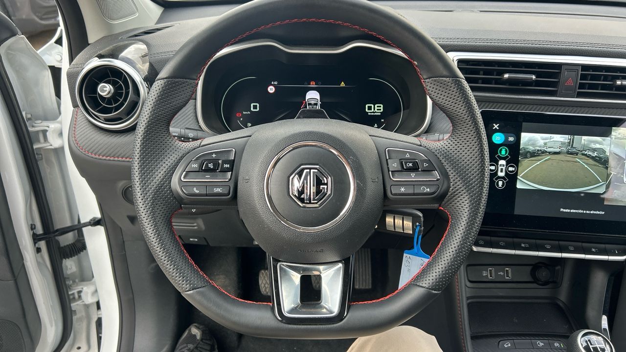 Este MG ZS 1.5 Luxury de 106 CV combina diseño moderno con una conducción cómoda y eficiente. Con solo 12.913 km y acabado en blanco, ofrece una estética cuidada y una posición elevada que facilita la visibilidad. Su motor gasolina responde con suavidad, ideal para desplazamientos diarios y escapadas de fin de semana. En el interior, destaca por su equipamiento completo: pantalla táctil con navegador, cámara de visión trasera, climatizador, sensores de aparcamiento, control de crucero y tapicería en símil cuero. Las llantas de aleación y los detalles cromados aportan un toque elegante. Es una opción muy interesante para quienes buscan un SUV compacto, funcional y bien equipado para el día a día. Financiación 100% a tu medida y hasta 3 años de garantía. Aceptamos tu coche como parte de pago, con la máxima tasación tanto presencial como online. ***EQUIPAMIENTO SERIE INCLUIDO*** - Cinco plazas ( 2+3 ) - Seis altavoces con sonido surround mejora 3D - Equipo de audio con radio AM/FM. radio digital y pantalla táctil - Control remoto de audio en el volante - Toma/s de 12v en los asientos delanteros - Cuatro frenos de disco siendo dos ventilados - ABS - Control de crucero - Espejo de cortesía en conductor en acompañante - Sistema de distancia de aparcamiento delanteros con cámara. sistema de distancia de aparcamiento traseros con sensor y cámara. sistema de distancia de aparcamiento en los lados con cámara - Combustible: sin plomo 95 octanos y Combustible primario: gasolina - Acabados de lujo: pomo de la palanca de cambios en símil aluminio. consola central en símil fibra de carbono. puertas en símil aluminio y tablero en símil aluminio - Faros con lente elipsoidal. bombilla LED y luz larga con bombilla LED - Regulación de los faros con sensor de oscuridad y sensor de vehículos en sentido contrario - Luces antiniebla delanteras - Encendido diurno automático - Airbag lateral de cortina delantero y trasero - Bandeja trasera flexible - Sujeción de carga - Cierre centralizado con mando a distancia - Protección antirrobo - Portaequipajes longitudinal en el techo en Cromados/Plateados - Airbag frontal del conductor. airbag frontal del acompañante desconectable - Airbags laterales delanteros - Dos reposacabezas en asientos delanteros ajustables en altura. tres reposacabezas en asientos traseros ajustables en altura - Cinturón de seguridad delantero en asiento conductor. acompañante y ajustable en altura - Cinturón de seguridad trasero en lado conductor. cinturón de seguridad trasero en lado acompañante. cinturón de seguridad trasero en asiento central de 3 puntos - Asientos de cuero sintético (material principal) y de cuero sintético (material secundario) - Apoyabrazos central delantero - Apoyabrazos trasero - Asiento delantero del conductor individual con ajuste eléctrico ( tres ajustes eléctricos ) térmico. eléctrico y ajuste eléctrico en altura con ajuste eléctrico del respaldo. asiento delantero del acompañante individual. térmico y ajuste longitudinal manual con ajuste manual del respaldo - Sujetavasos en los asientos delanteros y los asientos traseros - Sistema de ventilación con filtro de carbón activo controles en pantalla táctil y calefacción del motor - Aire acondicionado de automático - Limpiaparabrisas delantero con sensor de lluvia - Elevalunas eléctricos delanteros con uno de ellos de un solo toque. elevalunas eléctricos traseros - Navegador con datos vía internet de 12.30 con información en 3D y con voz. control mediante pantalla táctil y información de tráfico 31.2. 0 y 999 - Sistema de servofreno de emergencia - Indicador de baja presión de los neumáticos con visualización de presión - Preparación Isofix - Resultado de pruebas de impacto Euro NCAP :. puntuación global: 5.0. protección adultos: 90.0. protección niños: 85.0. protección peatones: 64.0. puntuación ayudas a la seguridad: 70.0. Versión evaluada: MG ZS EV 5-door OD LHD y Fecha del test: 18 dic 2019 - Control de arranque en pendiente - Encendido automático luces emergencia - Sistema de alarma de colisión: activa las luces de freno con asistencia de frenado. sistema antiatropello peatones/ciclistas. monitorización del conductor y frenado a baja velocidad de 0 Km/h como mínimo aviso visual/ acústico. funciona por encima de 130 km/h / 78 mph. funciona por encima de 50 km/h / 30 mph y funciona por debajo de 50 km/h / 30 mph - Bluetooth - Alerta de cambio de carril: activa la dirección - Cristal trasero oscurecido en el lateral trasero - Conexión para: USB delantero. 1. 0 y 0 - Sistema de asistencia de aparcamiento trasero con visualización de guía - Limitador de velocidad - Luces de freno. luces de cruce. luces intermitentes laterales. Luces de día. Luces traseras y luces de carretera con tecnología LED - Reconocimiento señales de tráfico - Modos de conducción con cartografía del motor - Cámara de visión de 360º vista mejorada 3D