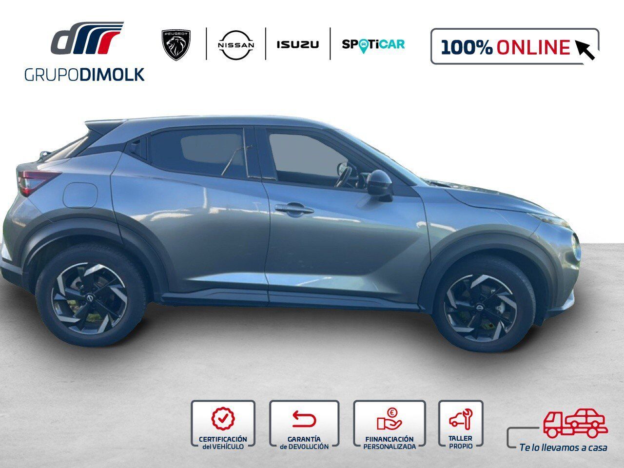 Vehículo REF: 5980MCM disponible en Grupo Dimolk, con 12 puntos de venta y más de 300 vehículos en stock, ¡Somos la referencia del sector en vehículos de ocasión de GALICIA! Aprovecha la OPORTUNIDAD y Llévate este NISSAN JUKE 1.0 DIG-T N-CONNECTA de 2022 con 18741 Kms. Entrega inmediata - Vehículo disponible en nuestro concesionario ANTAMOTOR Con Entrega a domicilio a cualquier punto de la península. Precio financiado sujeto a la aprobación de la entidad bancaria. Necesitarás tu DNI o NIE en vigor, última nómina, vida laboral y recibo bancario. Consúltanos para financiaciones a tu medida.) Si tu coche tiene menos de 8 años o lo entregas como parte de pago, tienes asegurada la tasación más competitiva del mercado. La propuesta integral del Grupo Dimolk incluye: Todos los trámites vinculados a la compra. Las mejores ofertas en seguros Posibilidad de aumentar la garantía. Financiación del 100% del importe. Encuentra tu vehículo km 0, seminuevo o de ocasión en el Grupo de referencia del vehículo de ocasión en Galicia. ¡VEN A VISITARNOS! Este anuncio no es vinculante, puede contener errores, se muestra a título informativo y no contractual. Dimolk PEUGEOT en A Coruña, Santiago, Carballo y Ferrol Antamotor, NISSAN E ISUZU A Coruña, Santiago, Carballo y Ferrol Oferta valida salvo error tipográfico o fin de existencia. Garantía de devolución ÚNICA en grupo Dimolk: Llévatelo 15 días o 1.000 Km y si no te convence te devolvemos el dinero.