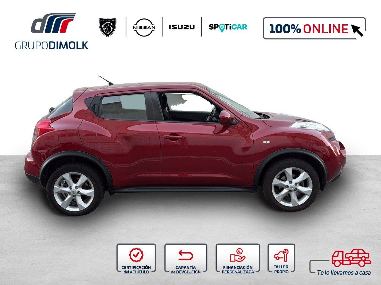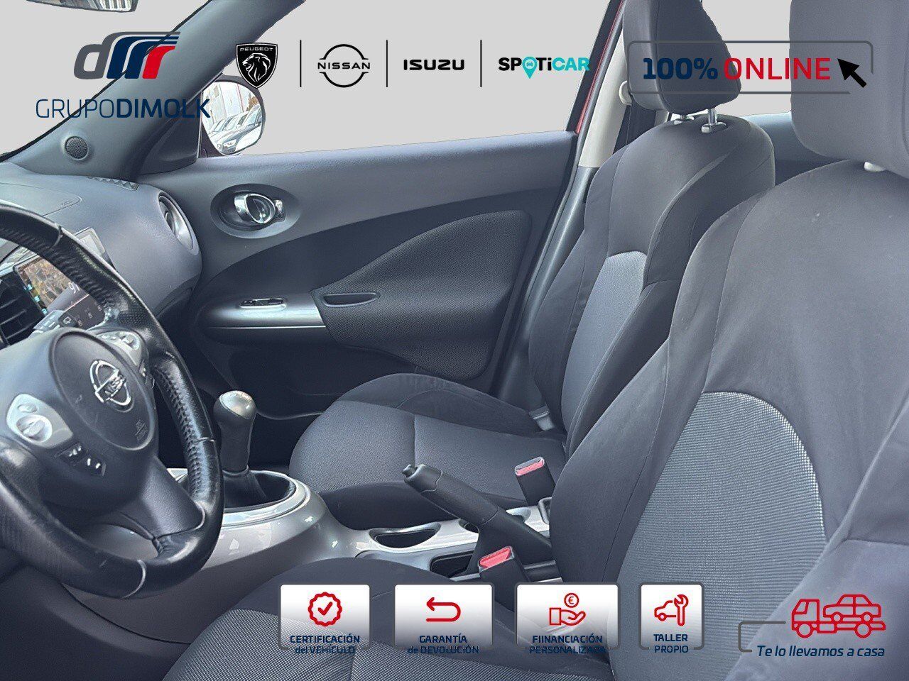 Vehículo REF: 7273HMP disponible en Grupo Dimolk, con 12 puntos de venta y más de 300 vehículos en stock, ¡Somos la referencia del sector en vehículos de ocasión de GALICIA! Aprovecha la OPORTUNIDAD y Llévate este NISSAN JUKE 1.6 ACENTA 2WD de 2012 con 177726 Kms. (Entrega inmediata) Vehículo disponible en nuestro concesionario ANTAMOTOR Con Entrega a domicilio. Precio al contado: 9900 € Precio financiado: 9400 € (Precio sujeto a financiación de un mínimo de 72 meses. Sujeta a la aprobación de la entidad bancaria. Necesitarás tu DNI o NIE en vigor, última nómina, vida laboral y recibo bancario. Consúltanos para financiaciones a tu medida.) Si tu coche tiene menos de 8 años o lo entregas como parte de pago, tienes asegurada la tasación más competitiva del mercado. La propuesta integral del Grupo Dimolk incluye: Todos los trámites vinculados a la compra. Las mejores ofertas en seguros Posibilidad de aumentar la garantía. Financiación del 100% del importe. Encuentra tu vehículo km 0, seminuevo o de ocasión en el Grupo de referencia del vehículo de ocasión en Galicia. ¡VEN A VISITARNOS! Este anuncio no es vinculante, puede contener errores, se muestra a título informativo y no contractual. Dimolk PEUGEOT en A Coruña, Santiago, Carballo y Ferrol Antamotor, NISSAN E ISUZU A Coruña, Santiago, Carballo y Ferrol Oferta valida salvo error tipográfico o fin de existencia. Garantía de devolución ÚNICA en grupo Dimolk: Llévatelo 15 días o 1.000 Km y si no te convence te devolvemos el dinero.