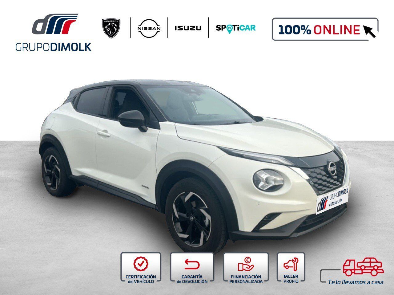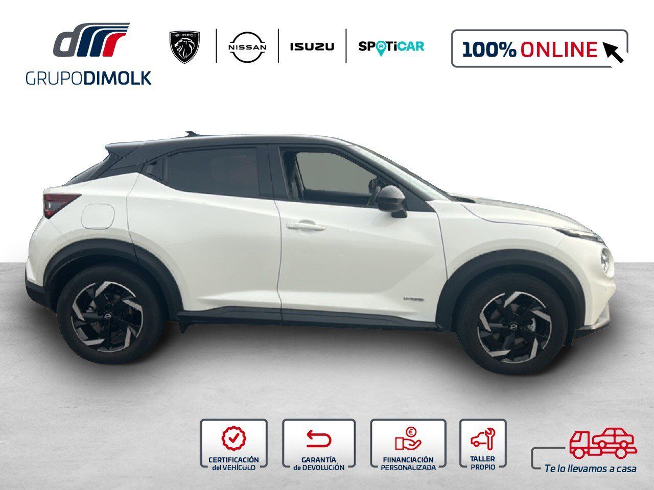Vehículo REF: 2433MDD disponible en Grupo Dimolk, con 12 puntos de venta y más de 300 vehículos en stock, ¡Somos la referencia del sector en vehículos de ocasión de GALICIA! Aprovecha la OPORTUNIDAD y Llévate este NISSAN JUKE N-CONNECTA 1.6 HYBRID de 2022 con 64562 Kms. Entrega inmediata - Vehículo disponible en nuestro concesionario ANTAMOTOR Con Entrega a domicilio a cualquier punto de la península. Precio financiado sujeto a la aprobación de la entidad bancaria. Necesitarás tu DNI o NIE en vigor, última nómina, vida laboral y recibo bancario. Consúltanos para financiaciones a tu medida.) Si tu coche tiene menos de 8 años o lo entregas como parte de pago, tienes asegurada la tasación más competitiva del mercado. La propuesta integral del Grupo Dimolk incluye: Todos los trámites vinculados a la compra. Las mejores ofertas en seguros Posibilidad de aumentar la garantía. Financiación del 100% del importe. Encuentra tu vehículo km 0, seminuevo o de ocasión en el Grupo de referencia del vehículo de ocasión en Galicia. ¡VEN A VISITARNOS! Este anuncio no es vinculante, puede contener errores, se muestra a título informativo y no contractual. Dimolk PEUGEOT en A Coruña, Santiago, Carballo y Ferrol Antamotor, NISSAN E ISUZU A Coruña, Santiago, Carballo y Ferrol Oferta valida salvo error tipográfico o fin de existencia. Garantía de devolución ÚNICA en grupo Dimolk: Llévatelo 15 días o 1.000 Km y si no te convence te devolvemos el dinero.