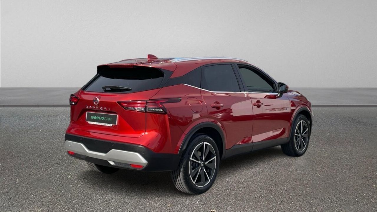 Bienvenido a WeevoCar, ¡Muchos coches, cero rollos! En WeevoCar creemos que comprar o vender un coche de ocasión debería ser fácil, transparente y sin complicaciones. Por eso reinventamos la experiencia: coches de calidad, precios claros y un equipo que te lo pone fácil desde el primer clic. · Financiación a tu medida: Elige la opción que mejor se adapte a ti. Diseñamos planes flexibles para que estrenes coche sin preocupaciones. · Vehículos certificados Todos nuestros coches pasan un control de 100 puntos en nuestros talleres oficiales. Calidad verificada, confianza garantizada. · Garantía mínima de 12 meses Con posibilidad de ampliación para que conduzcas con total tranquilidad. · Entrega donde quieras Llevamos tu coche a cualquier punto de la península por 350 € (IVA incluido). Y si estás en Baleares o quieres enviar tu coche allí: 550 € (IVA incluido). Recogida gratuita en instalación. · Valoramos tu coche a cambio Te damos la mejor tasación del mercado, rápida y sin compromiso. · Precio TODO INCLUIDO Sin sorpresas: IVA y transferencia ya incluidos en el precio final. Y para que no tengas que preocuparte por nada, te gestionamos también el seguro del vehículo en el momento de la compra. Contacta con nosotros a través del formulario web y uno de nuestros asesores te atenderá de forma personalizada. El vehículo ofertado puede no encontrarse físicamente en la ubicación del anuncio. La oferta es válida salvo error tipográfico en el precio o en la ficha. Imágenes no contractuales. ***EQUIPAMIENTO OPCIONAL INCLUIDO*** - Pintura metalizada - Skyline Pack ***EQUIPAMIENTO SERIE INCLUIDO*** - Cinco plazas ( 2+3 ) - Seis altavoces - Equipo de audio con radio AM/FM. reproductor de CD. RDS. radio digital y pantalla táctil pantalla a color. 0 y radio reproduce MP3 - Control remoto de audio en el volante - Toma/s de 12v en la zona de carga y los asientos delanteros - Cuatro frenos de disco siendo dos ventilados - ABS - Preparación para teléfono móvil soporte y cargador - Apertura a distancia del maletero con control remoto - Servocierre del maletero - Control de crucero con control de crucero adaptativo - Luces de lectura delanteras y traseras - Espejo de cortesía iluminado en conductor en acompañante - Sensores de aparcamiento delanteros con radar y cámara. sensores de aparcamiento traseros con radar y cámara. sensores de aparcamiento en los lados con cámara - Combustible: sin plomo 95 octanos y Combustible primario: gasolina - Acabados de lujo: pomo de la palanca de cambios en cuero. puertas en simil cuero y tablero en cuero sintético - Faros con lente elipsoidal. bombilla LED y luz larga con bombilla LED - Regulación de los faros con ajuste de altura automático. luces direccionales y sensor de luz ambiental luces de carretera activas y matrix - Luces antiniebla delanteras - Encendido diurno automático - Airbag lateral de cortina delantero y trasero - Bandeja trasera rígida - Sujeción de carga - Cierre centralizado con apertura por tarjeta/llave inteligente y contról de los elevalunas - Protección antirrobo - Airbag frontal del conductor inteligente. airbag frontal del acompañante desconectable y inteligente - Airbags laterales delanteros - Dos reposacabezas en asientos delanteros ajustables en altura. tres reposacabezas en asientos traseros ajustables en altura - Cinturón de seguridad delantero en asiento conductor. acompañante y ajustable en altura con pretensores - Cinturón de seguridad trasero en lado conductor. cinturón de seguridad trasero en lado acompañante. cinturón de seguridad trasero en asiento central de 3 puntos - Asientos de tela (material principal) y de cuero sintético (material secundario) - Apoyabrazos central delantero - Apoyabrazos trasero - Asiento delantero del conductor individual con ajuste eléctrico ( cuatro ajustes eléctricos ) eléctrico. ajuste eléctrico en altura y eléctrico de dos direcciones con ajuste eléctrico del respaldo. asiento delantero del acompañante individual. ajuste longitudinal manual. ajuste manual en altura y ajuste lumbar manual con ajuste manual del respaldo - Asientos traseros de tres plazas de tipo banco de orientación delantera con banqueta fija y respaldo abatible asimétrico - Volante multi-función de aleación y cuero ajustable en altura y en profundidad - Dirección asistida eléctrica con endurecimiento progresivo s/velocidad - Sujetavasos en los asientos delanteros y los asientos traseros - Sistema de ventilación con pantalla digital y filtro de pólen - Controles de climatización diferenciados digitales para conductor/acompañante - Aire acondicionado bizona de automático - Limpiaparabrisas delantero con sensor de lluvia - Elevalunas eléctricos delanteros y traseros con dos de ellos de un solo toque - Navegador con datos vía internet y pantalla a color de 9.0 con información en 3D y con voz. control mediante pantalla táctil y información de tráfico 22.9 - Consola en el suelo - Distribución electrónica de la frenada - Sistema de servofreno de emergencia - Indicador de baja presion de los neumáticos con visualización de presión y sensor Montado en la llanta - Preparación Isofix - Tarjeta / llave inteligente automática con entrada sin llave y arranque sin llave - Sistema activacion por voz del sistema de audio. teléfono y sistema de navegación Alexa - Freno mano electrónico - Control de frenada en curva - Sensor de adelantamiento incluye pantalla y activo sin intermitente - Filtro de partículas - Resultado de pruebas de impacto Euro NCAP :. puntuación global: 5.00. protección adultos: 91.00. protección niños: 91.00. protección peatones: 70.00. puntuación ayudas a la seguridad: 95.00. Versión evaluada: Nissan Qashqai 1.3 petrol 4x2 Acenta LHD 5dr OD y Fecha del test: 08 dic 2021 - Control de arranque en pendiente - Encendido automático luces emergencia - Sistema de alarma de colisión: activa los cinturones de seguridad y las luces de freno con 
