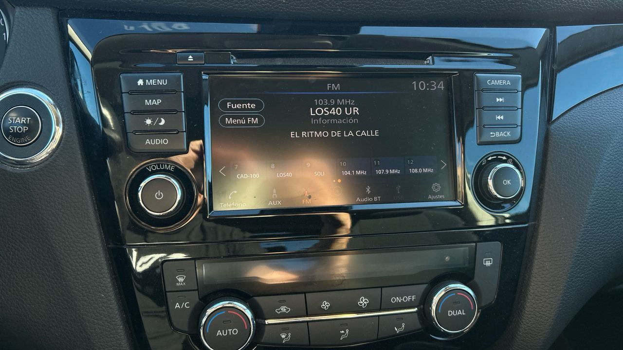 Este Nissan Qashqai con motor gasolina de 116 kW (158 CV) y cambio automático ofrece una conducción suave y eficiente, ideal para quienes buscan confort y tecnología en un SUV compacto. Su diseño moderno y su altura al suelo proporcionan buena visibilidad y una sensación de seguridad al volante. El acabado N-Connecta incluye climatizador bizona, cámara 360º, sensores de aparcamiento, sistema de navegación, control de crucero adaptativo y conectividad completa con smartphone. El interior está bien distribuido, con materiales agradables y espacio suficiente para viajar cómodamente. Su color gris aporta un estilo elegante y discreto, perfecto tanto para uso familiar como profesional. Financiación 100% a tu medida y hasta 3 años de garantía. Aceptamos tu coche como parte de pago, con la máxima tasación tanto presencial como online. ***EQUIPAMIENTO SERIE INCLUIDO*** - Cinco plazas ( 2+3 ) - Seis altavoces - Equipo de audio con radio AM/FM. reproductor de CD. RDS. radio digital y pantalla táctil pantalla a color. 0 y radio reproduce MP3 - Control remoto de audio en el volante - Toma/s de 12v en los asientos delanteros - Cuatro frenos de disco siendo dos ventilados - ABS - Apertura a distancia del maletero con control remoto - Control de crucero - Luces de lectura delanteras y traseras - Espejo de cortesía iluminado en conductor en acompañante - Sensores de aparcamiento delanteros con radar y cámara. sensores de aparcamiento traseros con radar y cámara. sensores de aparcamiento en los lados con cámara - Combustible: sin plomo 95 octanos y Combustible primario: gasolina - Acabados de lujo: pomo de la palanca de cambios en cromo y piel. puertas en negro piano y tablero en simil fibra de carbono - Faros con lente elipsoidal. bombilla halógena y luz larga con bombilla halógena - Regulación de los faros con ajuste de altura manual. sensor de luz ambiental y sensor de vehículos en sentido contrario - Luces antiniebla delanteras - Encendido diurno automático - Airbag lateral de cortina delantero y trasero - Bandeja trasera rígida - Sujeción de carga - Cierre centralizado con apertura por tarjeta/llave inteligente y contról de los elevalunas - Protección antirrobo - Airbag frontal del conductor. airbag frontal del acompañante desconectable - Airbags laterales delanteros - Dos reposacabezas en asientos delanteros ajustables en altura. tres reposacabezas en asientos traseros ajustables en altura - Cinturón de seguridad delantero en asiento conductor. acompañante y ajustable en altura con pretensores - Cinturón de seguridad trasero en lado conductor. cinturón de seguridad trasero en lado acompañante. cinturón de seguridad trasero en asiento central de 3 puntos - Asientos de velour (material principal) y de velour (material secundario) - Apoyabrazos central delantero - Apoyabrazos trasero - Asiento delantero del conductor individual. ajuste longitudinal manual. ajuste manual en altura y ajuste lumbar manual con ajuste manual del respaldo. asiento delantero del acompañante individual y ajuste longitudinal manual con ajuste manual del respaldo - Sujetavasos en los asientos delanteros y los asientos traseros - Sistema de ventilación con pantalla digital y filtro de pólen - Controles de climatización diferenciados digitales para conductor/acompañante - Aire acondicionado bizona de automático - Limpiaparabrisas delantero con sensor de lluvia - Elevalunas eléctricos delanteros y traseros con dos de ellos de un solo toque - Navegador con datos vía tarjeta SD y pantalla a color de 7.0 con información 3D. control mediante pantalla táctil y información de tráfico 17.8 - Consola en el suelo - Distribución electrónica de la frenada - Sistema de servofreno de emergencia - Indicador de baja presion de los neumáticos con visualización de presión y sensor Montado en la llanta - Preparación Isofix - Tarjeta / llave inteligente automática con entrada sin llave y arranque sin llave - Sistema activacion por voz del sistema de audio otro - Freno mano electrónico - Control de frenada en curva - Filtro de partículas - Resultado de pruebas de impacto Euro NCAP :. puntuación global: 5.00. protección adultos: 88.00. protección niños: 83.00. protección peatones: 69.00. puntuación ayudas a la seguridad: 79.00. Versión evaluada: Nissan Qashqai 1.5 dCi Acenta 5dr HA y Fecha del test: 01 abr 2014 - Control de arranque en pendiente - Sistema de alarma de colisión: activa los cinturones de seguridad y las luces de freno con asistencia de frenado. sistema antiatropello peatones/ciclistas y frenado a baja velocidad de 10 Km/h como mínimo aviso visual/ acústico y funciona por debajo de 50 km/h / 30 mph - Bluetooth ( incluye música por 'streaming' ) - Start/Stop parada y arranque automático - Alerta de cambio de carril: - Cristal trasero oscurecido en el lateral trasero - Conexión para: entrada AUX delantera. USB delantero. 1 y 0 - Botón de arranque del vehículo - Sistema de asistencia de aparcamiento trasero con visualización de guía - Limitador de velocidad - Luces de freno. luces intermitentes laterales. Luces de día y Luces traseras con tecnología LED - Recuperación de la energía motor - Reconocimiento señales de tráfico - Cámara de visión de 360º