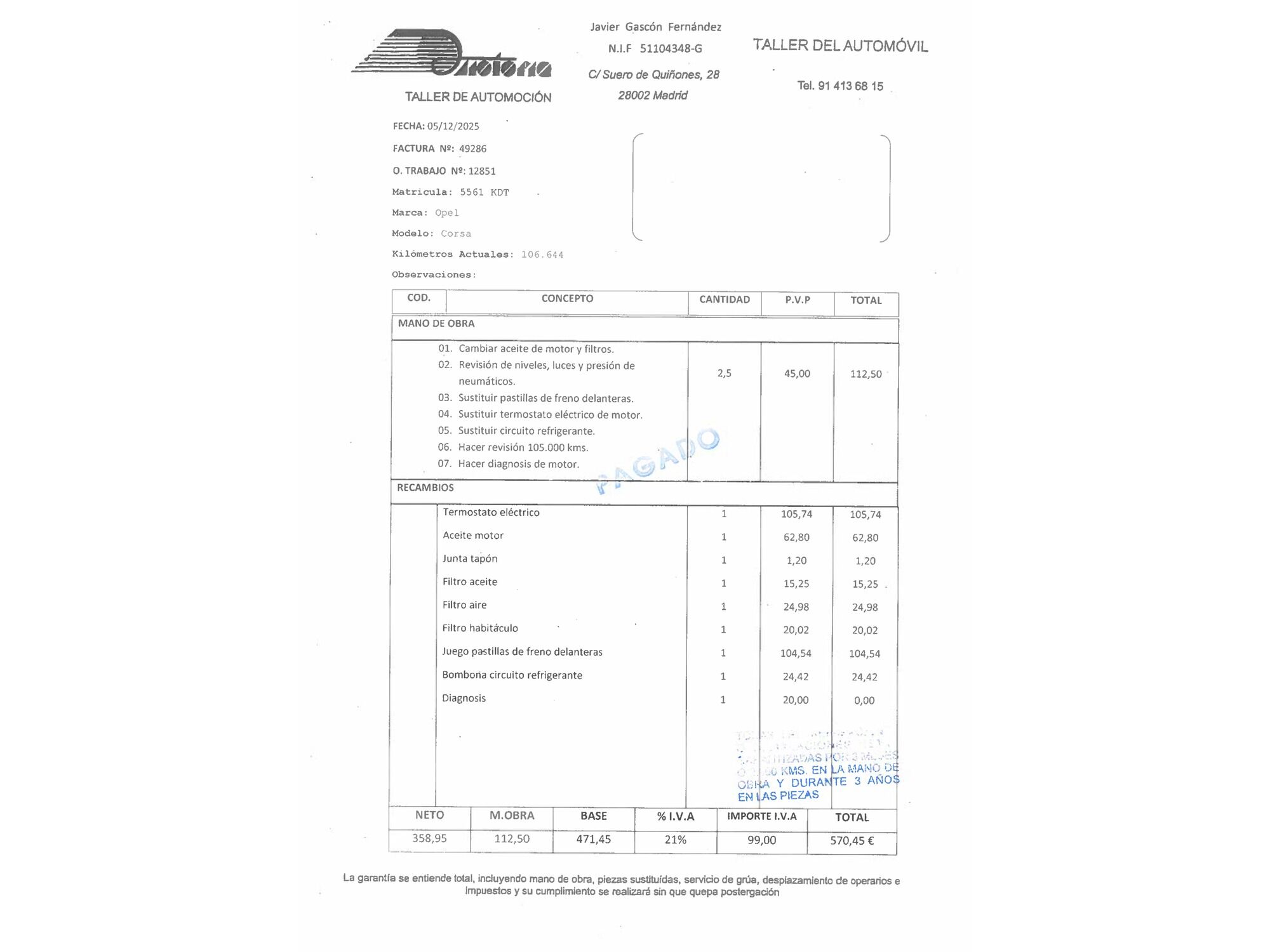 Opel con 106.730 kilómetros de 2017 en Madrid