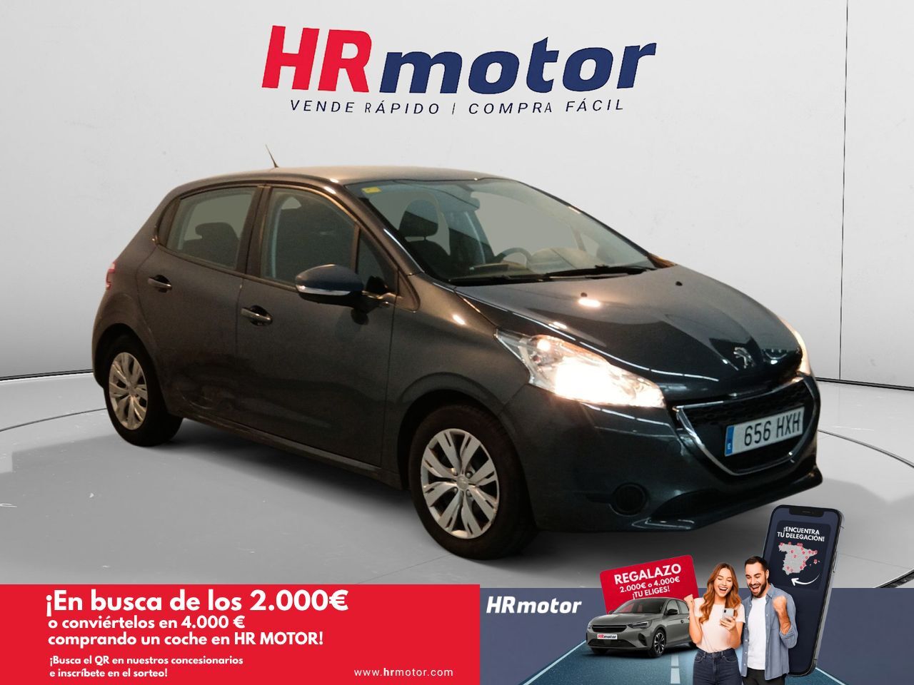 En HRmotor tenemos un coche como nuevo para ti esperándote. Disfrútalo con total tranquilidad, con hasta 2 años de garantía. Contamos con un stock de +3.000 coches de segunda mano para que puedas comprar un coche de ocasión que se adapte a todas tus necesidades y preferencias en nuestros más de 30 concesionarios repartidos en toda España. De esta manera nos encontramos en Madrid con 4 centros; en Barcelona con 4 centros; en Valencia con 3 centros; en Sevilla con 2 centros; en Málaga con 2 centros. Además, nos podrás encontrar también en Lleida, Girona, Castellón, Alicante, Bilbao, Gijón, Mallorca, Murcia, Pamplona, San Sebastián, Tudela, A Coruña, Valladolid, Zaragoza y Elche. Precio al contado de 8510€. o consultar condiciones. Peugeot 208 1.2 VTi 82 Active * Sujeto a condiciones. Consulte con su comercial V-0277066 ***EQUIPAMIENTO EXTRA:*** - Pintura metalizada ***EQUIPAMIENTO SERIE:*** - Rejilla paragolpes, Marco pintado - Antena del techo - Retrovisor exterior calefactable(s) - Retrovisor exterior regulable eléctricamente, izquierda - Retrovisor exterior regulable eléctricamente, derecha - Retrovisor exterior regulable eléctricamente y calefactable - Retrovisor exterior pintado - Retrovisor exterior color carrocería - Pilotos traseros LED - Luz de día - Luna trasera calefactable(s) - Ventanilla lateral detrás y Luna trasera tintado - Sistema de audio WIP Sound (Radio) - WIP-Bluetooth - Indicador multifunción con pantalla táctil en color - Cuentarrevoluciones - Ordenador de a bordo - Control de crucero (Tempomat) incl. Sistema limitador de velocidad - Airbag conductor/acompañante - Sistema de airbag para la cabeza - Airbag lateral delante - Airbag acompañante Desconectable - Cubierta del maletero / Persiana - Aire acondicionado - tapicería asientos: Tela - Asiento delante izquierda regulable en altura - Respaldo del asiento trasero dividido/abatible - Reposacabezas detrás regulable - Elevalunas eléctric. delante, izquierda con Protección de aplastamiento - automático Bloqueo de la puerta - Agarraderos de la puerta ext. color carrocería - Marco de la ventana con Molduras - Dispositivo de alarma para sistema-cinturón seguridad - Tensor del cinturón - Guantera iluminación - Inmovilizador - Anclajes Isofix para Asiento para niños en Asiento trasero - Sistema antibloqueo (ABS) - Distribuidor eléctrónico de frenada - Asistente a la conducción: Freno de emergencia - Rueda de repuesto - Volante (cuero) - Columna de dirección (Volante) regulable - Volante con Palancas de cambio - Dirección asistida - Dirección asistida electromecánica - Asistente estabilizador dirección (Steering Stability Program, SSP) - Programa electrónico de estabilidad (ESP) - Reducción polución según norma gases escape Euro 5 - Carrocería: 5 puertas - Caja de cambios 5-marcha - Motor 1,2 Ltr. - 60 kW 12V VTi