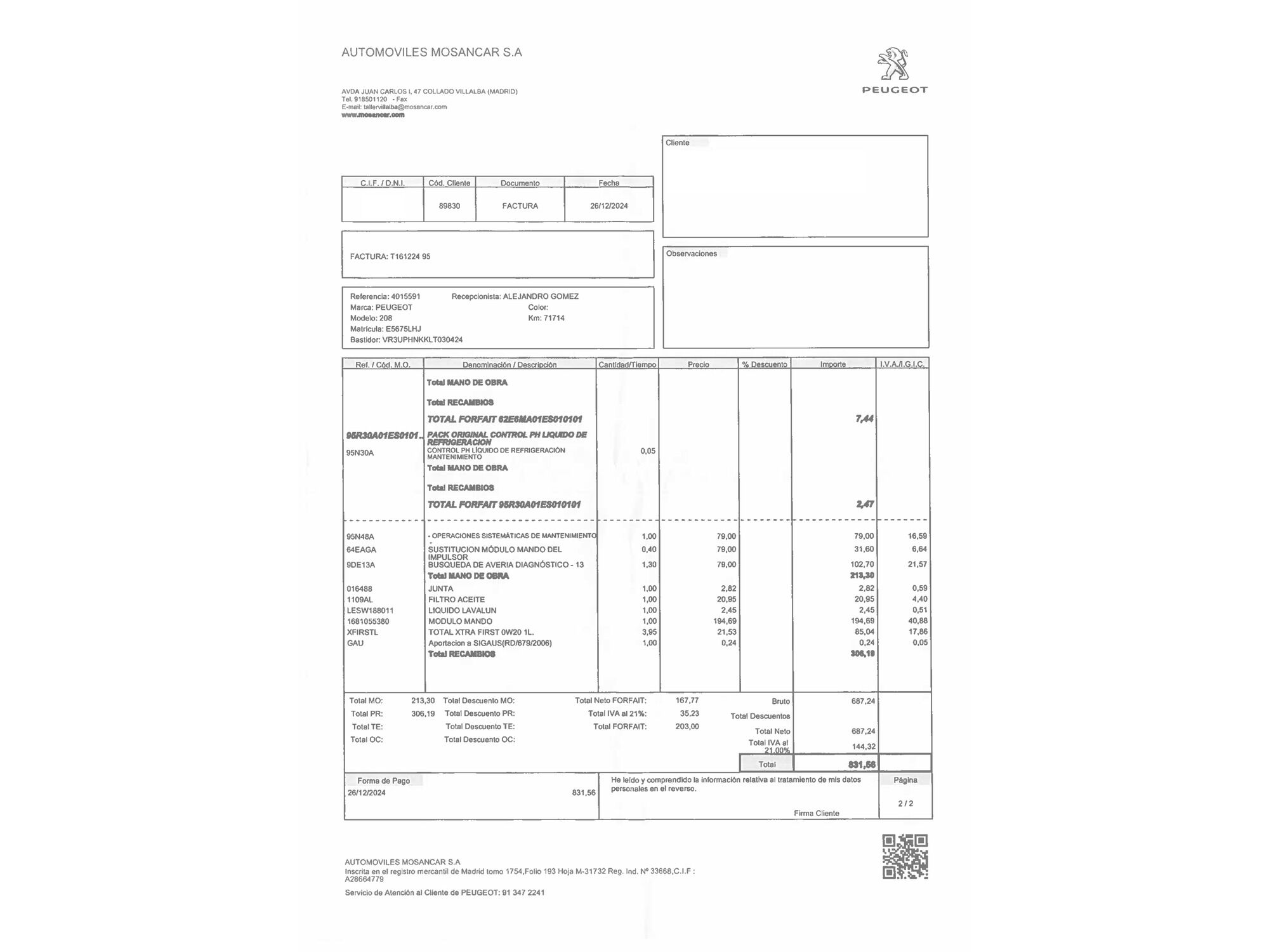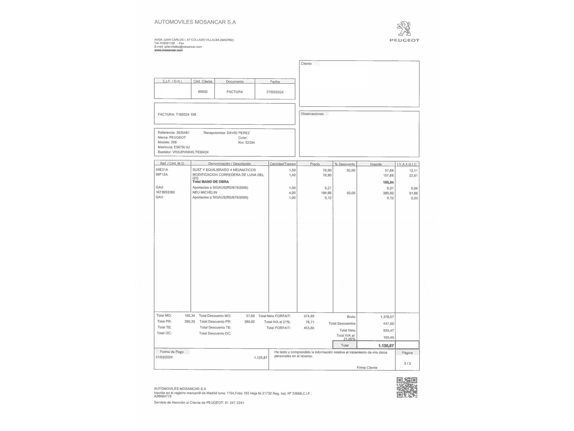 Peugeot con 89.588 kilómetros de 2020 en Madrid