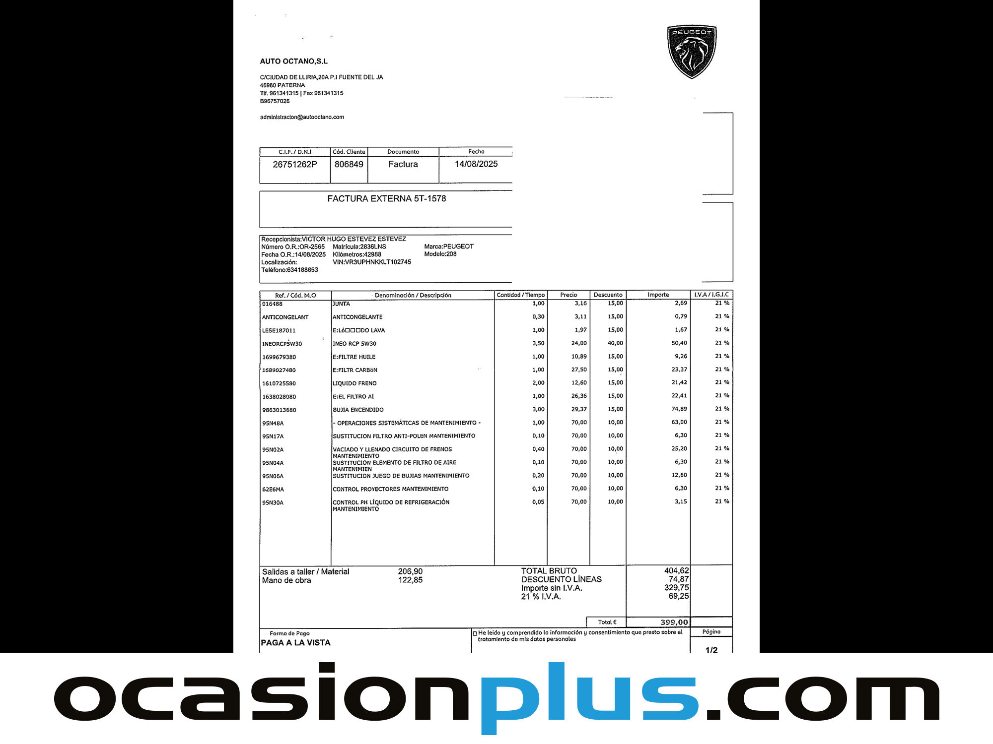 OCASIONPLUS - 20000 COCHES - 120 CENTROS OCASIONPLUS Nº1 CALIDAD - PRECIO Elige el coche que te guste y te lo llevamos a tu ciudad sólo con reservarlo 15 DÍAS / 1000 KMS DE PRUEBA Hasta 2608€ de descuento en este coche Precio oferta financiado: 12082€ (consulta condiciones específicas de promo - sujeta a aprobación de la entidad financiera) Precio al contado: 13290€ ADEMÁS, HACEMOS LAS MEJORES FINANCIACIONES DEL MERCADO, PREGÚNTANOS!! Equipamiento destacado: Car Play, Cámara de marcha atrás, Encendido automático de faros, Sensor de lluvia, Reconocimiento señales de tráfico, Asistente de cambio de carril, Start/Stop automático, Faros delanteros led, Faros traseros led, Control de velocidad, Limitador de velocidad, Volante multifunción, Aire Acondicionado (Climatizador), Arranque por botón, Bluetooth, Freno de estacionamiento eléctrico, Elevalunas eléctrico, Llantas de aleación (17"). - Coche Nacional, Historial Mantenimiento, Único propietario. - Garantía total 1 año, con cobertura nacional, ampliable a 24 meses. - Certificado de Kilómetros y ausencia de golpes estructurales. - Sobrevaloramos tu coche en operaciones de cambio. Tásalo ahora en ocasionplus.com - Entregamos cualquier coche en cualquier centro - Abierto Domingo y Festivos.