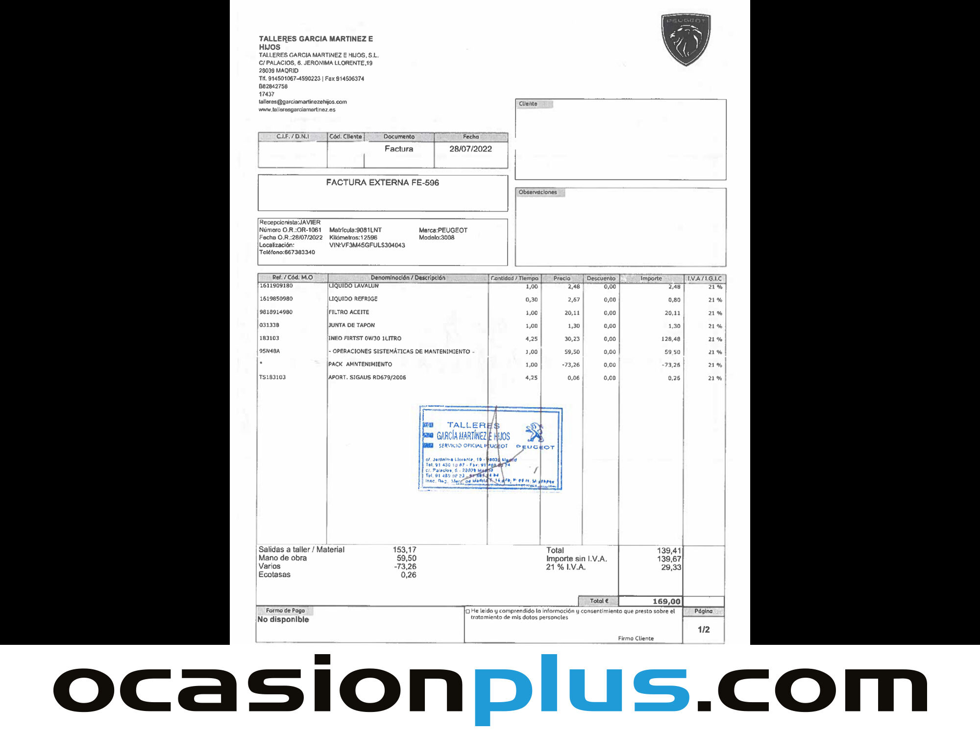 Peugeot con 61.983 kilómetros de 2021 en Madrid