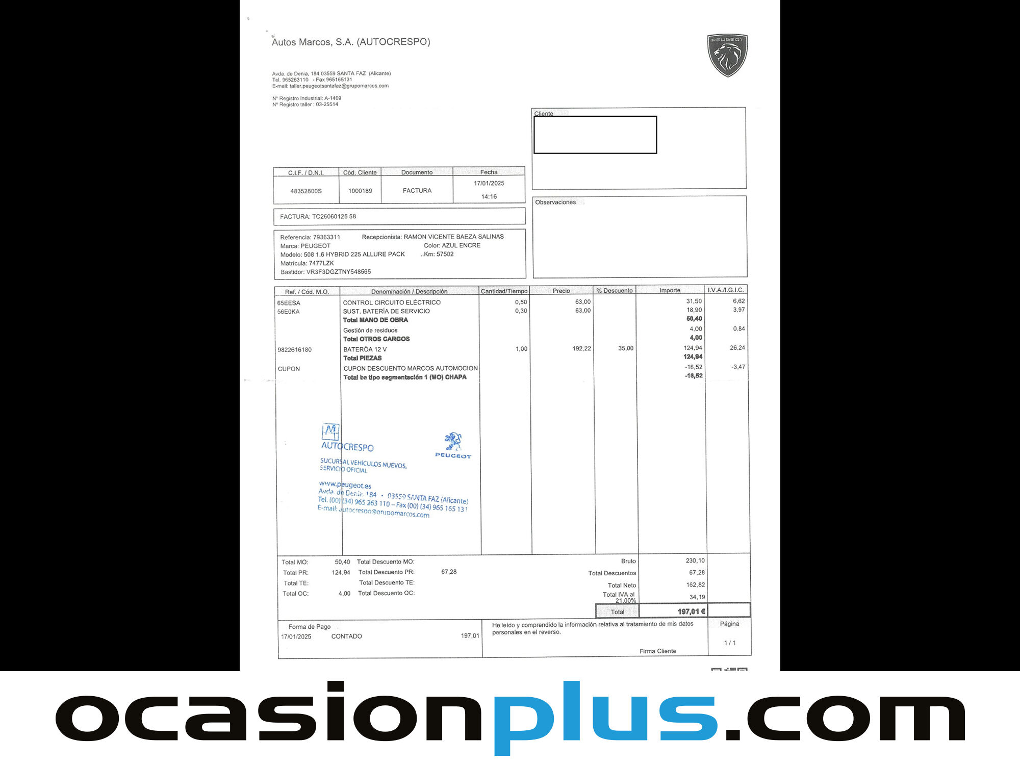¡LIQUIDACIÓN FIN DE AÑO DE OCASIONPLUS! LOS MEJORES PRECIOS DEL AÑO CON HASTA -40% DE DESCUENTO EN MÁS DE 16.000 COCHES. SÓLO HASTA EL 21 DE DICIEMBRE OCASIONPLUS - 16000 COCHES - 100 CENTROS OCASIONPLUS Nº1 CALIDAD - PRECIO Elige el coche que te guste y te lo llevamos a tu ciudad sólo con reservarlo 15 DÍAS / 1000 KMS DE PRUEBA Hasta 2862€ de descuento en este coche Precio oferta financiado: 18628€ (consulta condiciones específicas de promo - sujeta a aprobación de la entidad financiera) Precio al contado: 20490€ ADEMÁS, HACEMOS LAS MEJORES FINANCIACIONES DEL MERCADO, PREGÚNTANOS!! Equipamiento destacado: Car Play, Navegador, Cámara de marcha atrás, Ayuda aparcamiento, Asistente de mantenimiento de carril, Encendido automático de faros, Sensor de lluvia, Start/Stop automático, Control de velocidad, Limitador de velocidad, Volante multifunción, Arranque por botón, Aire Acondicionado (Climatizador), Isofix, Bluetooth, Freno de estacionamiento eléctrico, Llantas de aleación (17"). - Coche Nacional, Historial Mantenimiento. - Garantía total 1 año, con cobertura nacional, ampliable a 24 meses. - Certificado de Kilómetros y ausencia de golpes estructurales. - Sobrevaloramos tu coche en operaciones de cambio. Tásalo ahora en ocasionplus.com - Entregamos cualquier coche en cualquier centro - Abierto Domingo y Festivos.