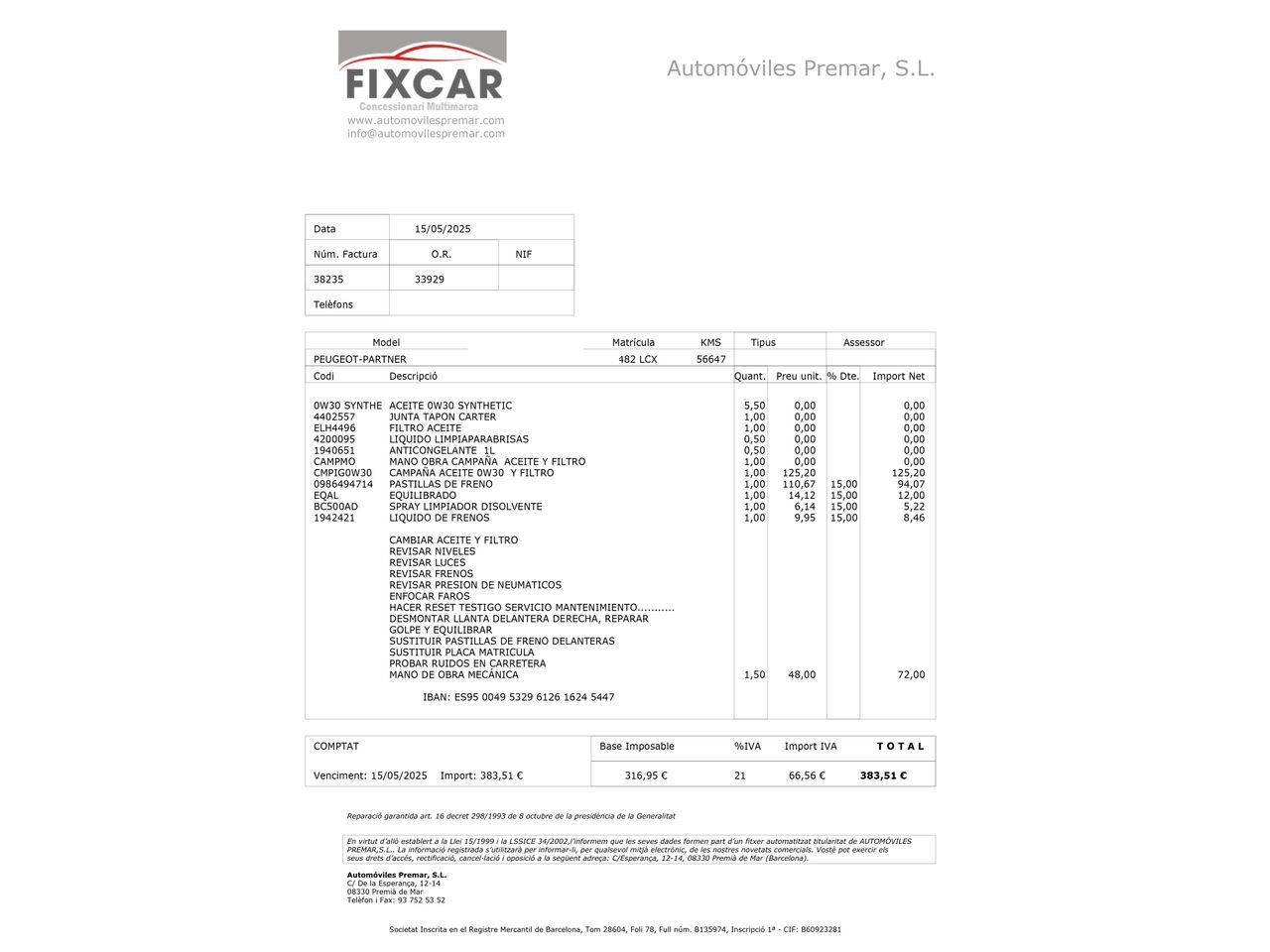 En HRmotor tenemos un coche como nuevo para ti esperándote. Disfrútalo con total tranquilidad, con hasta 2 años de garantía. Contamos con un stock de +3.000 coches de segunda mano para que puedas comprar un coche de ocasión que se adapte a todas tus necesidades y preferencias en nuestros más de 30 concesionarios repartidos en toda España. De esta manera nos encontramos en Madrid con 4 centros; en Barcelona con 4 centros; en Valencia con 3 centros; en Sevilla con 2 centros; en Málaga con 2 centros. Además, nos podrás encontrar también en Lleida, Girona, Castellón, Alicante, Bilbao, Gijón, Mallorca, Murcia, Pamplona, San Sebastián, Tudela, A Coruña, Valladolid, Zaragoza y Elche. Precio al contado de 14440€. o consultar condiciones. Peugeot Partner 1.5 BlueHDi 100 Asphalt L1 * Sujeto a condiciones. Consulte con su comercial V-0274273 ***EQUIPAMIENTO SERIE:*** - Retrovisor exterior regulable eléctricamente, calefactable y plegable - Retrovisor exterior con Tapas coberteras Negro - Asistente a la conducción: Asistente luz carretera - Luces antiniebla con integrado luz de curva - Función automática de las luces (Coming Home, Leaving Home) - Luz de día - Sensor de luz y lluvia - Sistema de audio RCC (Radio, apto para MP3) - USB-Audio-Interfaz - Ordenador de a bordo - Indicador de las marchas - Sistema audio-navegador NAC 3-D, DAB con pantalla en color - Ayuda aparcamiento delante y detrás incl. Cámara - Ayuda aparcamiento delante y detrás con Surround Rear Vision - Sistema control presión neumáticos - Control de crucero (Tempomat) incl. Sistema limitador de velocidad - Airbag lado del conductor - Tabique separador del compartimento de carga Sin Ventana - Asiento delante izquierda regulable en altura - Asiento individual del pasajero - Desbloqueo de la puerta autom (en accidente) - Cierre centralizado incl. Bloqueo de la puerta autom - Puertas traseras doble hoja Sin Lunas - Puerta corredera derecha Sin Ventana - Portaobjetos sobre los parasoles - Enchufe (enchufe 12V) en consola central delante - Orejas de amarre Maletero/compartimento de carga - Cámara de marcha atrás con 180° Vista del entorno - Asistente a la conducción: Freno de emergencia - Freno de estacionamiento eléctric. - Elevado Carga útil - Kit reparación de neumáticos - Volante con Multifunción - Columna de dirección (Volante) regulable - Dirección asistida eléctric. - Regulación antideslizante (ASR) - Programa electrónico de estabilidad (ESP) - Asistente a la conducción: Asistente de subidas (Hill-Holder) - Sistema SCR (Tecnología-AdBlue) - Reducción polución según norma gases escape Euro 6d-TEMP - Sistema Start/Stop - Filtro partículas - Carrocería/estructura: Caja - Tipo transmisión: Tracción delantera - Batalla 2785 mm - Caja de cambios 5-marcha - Motor 1,5 Ltr. - 75 kW Blue-HDI FAP