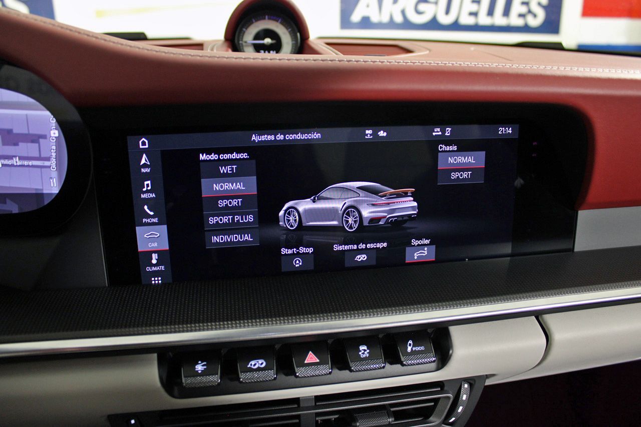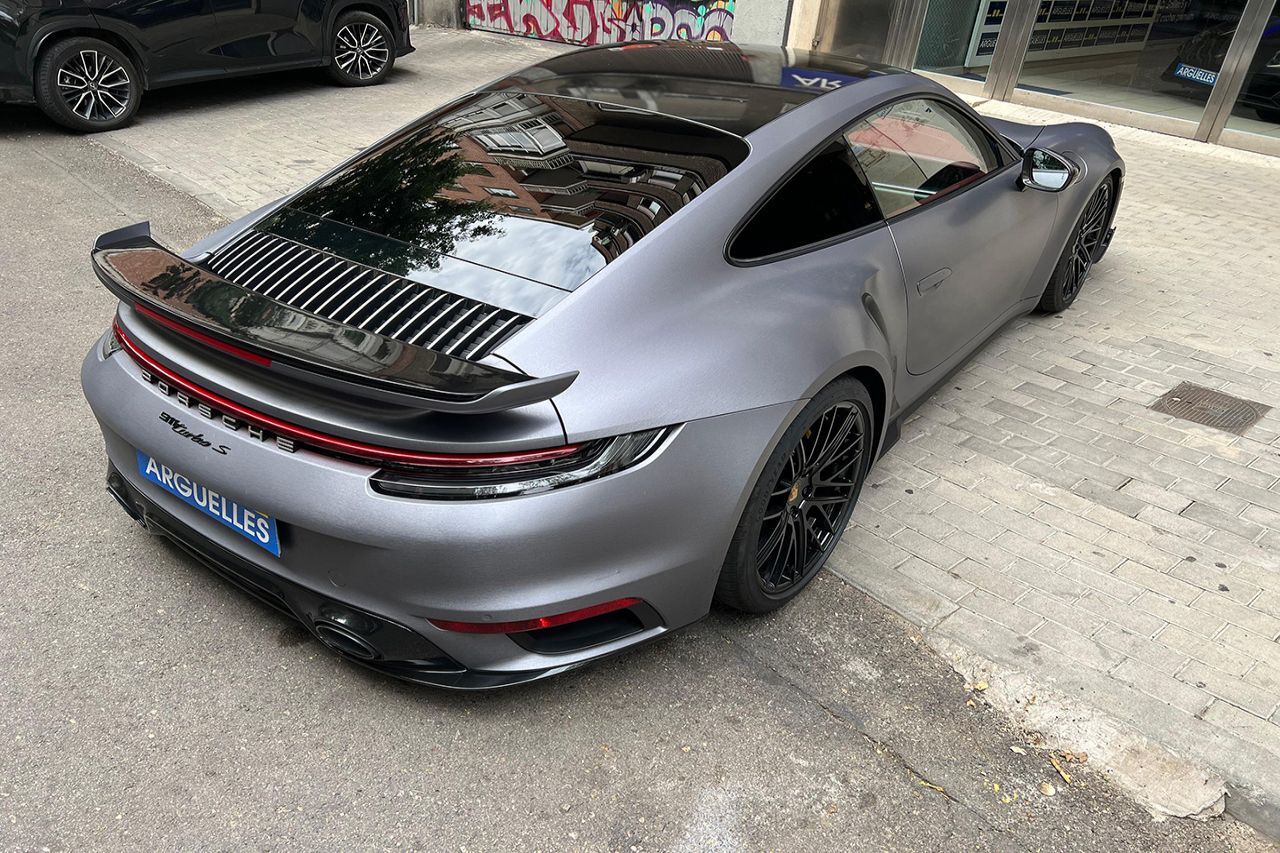 12 Meses de garantía incluida en el precio Vehículo único con un equipamiento completísimo, costando nuevo más de 320.000Euros.Vinilado de aluminio cepillado mate.Paquete SportDesign, suspensión activa PASM junto con elevación del eje delantero, tapicería bicolor Manufaktur, frenos cerámicos con pinzas en amarillo, sistema de navegación PCM, faros Matrix LED, asientos calefactados y ventilados, asientos eléctricos Adaptativos con 18 posiciones, cámara de visión trasera junto con sensores de aparcamiento, climatizador bizona, sistema de sonido Bosé, alerta de vehículos en ángulo muerto y de salida involuntaria de carril, regulador de velocidad, retrovisores de carbono abatibles eléctricamente, paquete Sport Chrono en blanco, pasos de puerta en carbono iluminados, elementos interiores en carbono y Race Tex, columna de dirección en cuero, escape deportivo en negro, volante multifunción con levas de cambio, Apple CarPlay y Android Auto, llantas de aleación en 20 y 21, Bluetooth, conexión USB. +316.000EUR NUEVO, CONSULTAR LISTADO COMPLETO DE OPCIONALES.