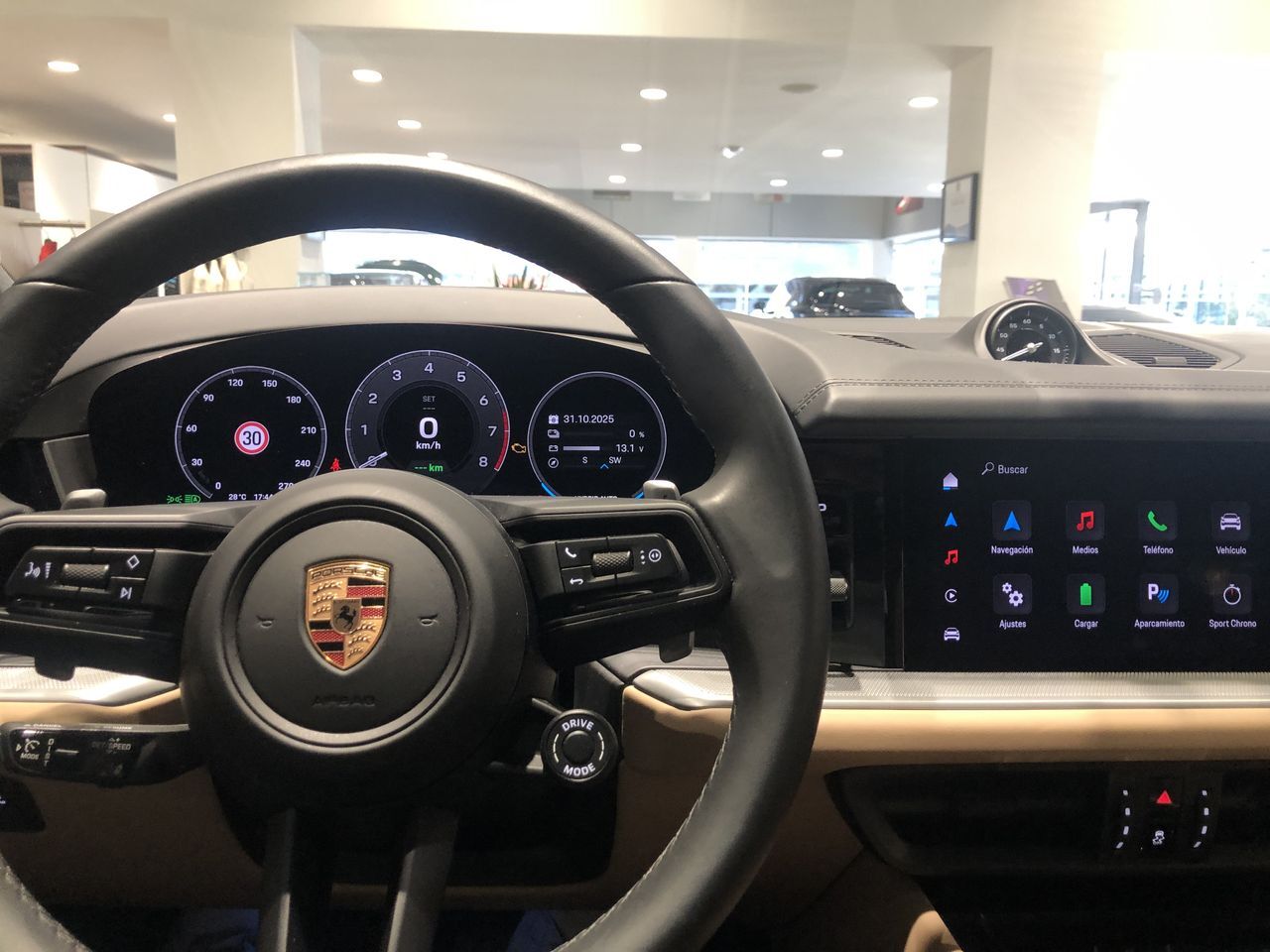 Porsche Cayenne E-Hybrid – 470 CV – Automático – Tracción integral SUV premium híbrido enchufable que combina potencia, confort y tecnología con el carácter deportivo de Porsche. Este Cayenne E-Hybrid ofrece una conducción refinada y eficiente gracias a su sistema híbrido enchufable de 470 CV, transmisión automática y tracción integral, ideal tanto para el día a día como para viajar con el máximo nivel de comodidad. Configurado en Gris Cuarcita Metalizado e interior en cuero bicolor Negro–Beige Mojave, destaca por su exclusividad y equipamiento orientado al confort y la seguridad. Detalles clave: Versión: Cayenne E-Hybrid Potencia: 470 CV Transmisión: Automático Tracción: Integral Combustible: Híbrido enchufable Color exterior: Gris Cuarcita Metalizado Interior: Cuero bicolor Negro–Beige Mojave Equipamiento (selección): Suspensión neumática adaptativa con PASM Eje trasero direccional Llantas AeroDesign 21” Faros LED HD-Matrix Head-Up Display Asientos Confort delanteros eléctricos con memoria Asientos ventilados (delanteros) Pantalla para el acompañante Sistema de sonido BOSE Surround Cristales tintados (Privacy Glass) Asistente de cambio de carril Remote ParkAssist Control de velocidad adaptativo Concesionario Oficial Porsche A Coruña. Financiación y seguro a su medida. Vehículo incluido en nuestro programa de vehículos de re-estreno certificados Porsche Approved. Oferta válida salvo error tipográfico y disponibilidad. Gastos de gestión y transferencia: 350 € (no incluidos en el precio).