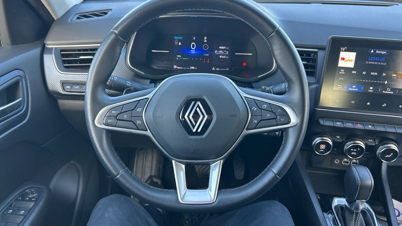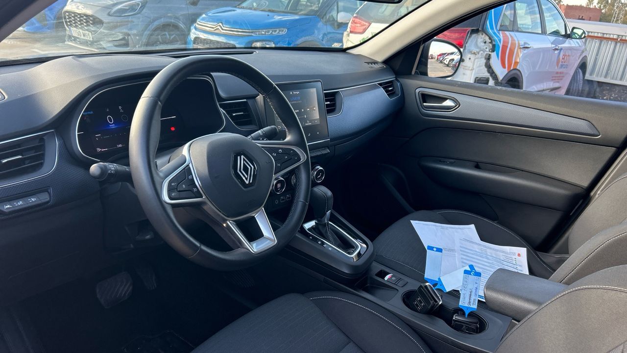 Este Renault Arkana combina diseño deportivo con eficiencia híbrida, ideal para quienes buscan estilo sin renunciar al confort diario. Con su motor gasolina mild hybrid de 140 CV y cambio automático EDC, ofrece una conducción suave y ágil tanto en ciudad como en carretera. Ha recorrido 40.598 km y se presenta en un elegante color negro que realza su carácter dinámico. En cuanto a equipamiento, destaca por su sistema multimedia con pantalla táctil, conectividad completa, sensores de aparcamiento, cámara trasera y climatizador automático. Además, incorpora ayudas a la conducción como el asistente de mantenimiento de carril y frenada de emergencia. Su carrocería tipo SUV coupé lo hace perfecto para conductores que valoran la estética sin perder espacio interior. Financiación 100% a tu medida y hasta 3 años de garantía. Aceptamos tu coche como parte de pago, con la máxima tasación tanto presencial como online. ***EQUIPAMIENTO SERIE INCLUIDO*** - Cinco plazas ( 2+3 ) - Seis altavoces con subwoofer - Equipo de audio con radio AM/FM. radio digital y pantalla táctil pantalla a color - Control remoto de audio en el volante - Toma/s de 12v en los asientos delanteros - Cuatro frenos de disco siendo dos ventilados - ABS - Control de crucero con control de crucero adaptativo - Iluminación de acceso - Espejo de cortesía iluminado en conductor en acompañante - Sistema de distancia de aparcamiento traseros con sensor - Combustible: sin plomo 95 octanos y Combustible primario: gasolina - Acabados de lujo: consola central en símil aluminio. puertas en símil aluminio y tablero en símil aluminio - Faros con lente de superficie compleja. bombilla LED y luz larga con bombilla LED - Regulación de los faros con ajuste de altura automático. sensor de oscuridad y sensor de vehículos en sentido contrario - Encendido diurno automático - Airbag lateral de cortina delantero y trasero - Bandeja trasera rígida - Sujeción de carga - Cierre centralizado con apertura por tarjeta/llave inteligente y contról de los elevalunas - Airbag frontal del conductor. airbag frontal del acompañante desconectable - Airbags laterales delanteros - Dos reposacabezas en asientos delanteros ajustables en altura. tres reposacabezas en asientos traseros ajustables en altura - Cinturón de seguridad delantero en asiento conductor. acompañante y ajustable en altura con pretensores - Cinturón de seguridad trasero en lado conductor. cinturón de seguridad trasero en lado acompañante. cinturón de seguridad trasero en asiento central de 3 puntos - Asientos de tela (material principal) y de tela (material secundario) - Apoyabrazos central delantero - Apoyabrazos trasero - Asiento delantero del conductor y acompañante individual. ajuste longitudinal manual y ajuste manual en altura con ajuste manual del respaldo - Sujetavasos en los asientos delanteros y los asientos traseros - Sistema de ventilación con pantalla digital y filtro de pólen calefacción del motor - Controles de climatización diferenciados digitales para conductor/acompañante - Aire acondicionado bizona de automático - Limpiaparabrisas delantero con sensor de lluvia - Elevalunas eléctricos delanteros y traseros con dos de ellos de un solo toque - Navegador con datos vía memoria interna/disco duro y pantalla a color de 9.30 con información en 3D y con voz. control mediante pantalla táctil y información de tráfico 23.6. 36 y 36 - Sistema de servofreno de emergencia - Indicador de baja presion de los neumáticos con sensor Montado en la llanta - Preparación Isofix - Tarjeta / llave inteligente con entrada sin llave y arranque sin llave incluye bloqueo al alejarse - Sistema activacion por voz Google - Conexion internet - Telemática ( 36 meses incluidos) vía SIM en el vehículo con sistema de seguimiento 0 y asistencia por avería - Freno mano electrónico - Filtro de partículas - Control de arranque en pendiente - Encendido automático luces emergencia - Sistema de alarma de colisión: activa las luces de freno con asistencia de frenado. sistema antiatropello peatones/ciclistas. monitorización del conductor y frenado a baja velocidad de 7 Km/h como mínimo aviso visual/ acústico. funciona por encima de 130 km/h / 78 mph. funciona por encima de 50 km/h / 30 mph y funciona por debajo de 50 km/h / 30 mph - Bluetooth - Start/Stop parada y arranque automático - Alerta de cambio de carril: activa la dirección - Conexión para: entrada AUX delantera. USB delantero. USB trasero. 2. 2 y 0 - Botón de arranque del vehículo - Limitador de velocidad - Luces de freno. luces de cruce. luces intermitentes laterales. Luces de día. Luces traseras y luces de carretera con tecnología LED - Recuperación de la energía - Hibrido suave - Reconocimiento señales de tráfico - Memoria interna/disco duro: 10.00 GB - Conexión wi-fi 36 y tarjeta SIM integrada - Un motor eléctrico motor generador integrado y motor generador integrado c/ correa BISG