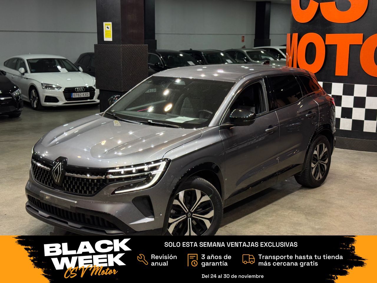 BLACK WEEK CSV MOTOR Del 24 al 30 de noviembre Solo esta semana, si señalizas tu coche desde nuestra web, puedes elegir una de estas ventajas exclusivas: Revisión anual incluida 3 años de garantía incluidos Transporte hasta tu tienda más cercana gratis ¡Sin compromiso! ¡Más de 50 coches nuevos cada día esta semana! ES EL MODELO 1.2HEV 200CV TECHNO Financiación SIN entrada. Admitimos tu coche a cambio, Y TE LO SOBREVALORAMOS, aunque sea muy viejo. ¿Quieres comprar online? Contáctanos y te daremos todo lo que necesites para decidirte: Teleperitación, certificados, etc. así como la financiación, que sólo con tu nómina te confirmamos en minutos la concesión de la financiación POR EL TOTAL y sin entrada. Nuestros precios son totalmente fijos y sin sorpresas por financiación abusiva. Este vehículo está disponible para su venta en la ubicación que ves en este anuncio. Así también habrá la posibilidad del envío a domicilio, en cualquiera de las siguientes provincias desde 90€: La Coruña Álava Albacete Alicante Almería Asturias Ávila Badajoz Barcelona Burgos Cáceres Cádiz Cantabria Castellón Ciudad Real Córdoba Cuenca Girona Granada Guadalajara Gipuzkoa Huelva Huesca Jaén La Rioja León Lérida Lugo Madrid Málaga Murcia Navarra Ourense Palencia Pontevedra Salamanca Segovia Sevilla Soria Tarragona Teruel Toledo Valencia Valladolid Vizcaya Zamora Zaragoza. El precio indicado es con GARANTIA DE UN AÑO ampliable hasta TRES AÑOS. SEGUNDO AÑO GRATIS FINANCIANDO CON NOSOTROS. El vehículo tiene IVA INCLUIDO y desgravable si eres empresa o autónomo. Garantizamos por CONTRATO kilometraje real y que no ha tenido ningún golpe estructural. INFORMACIÓN PARA PARTICULARES: Te ahorras HASTA EL 11% que deberías pagar a hacienda si comprases a un particular en impuestos. En nuestra web dispone de más información sobre todos nuestros vehículos, así como más posibilidades para contactar con nosotros directamente: www.csvmotor.net Los extras del vehículo que usted está viendo son: VEHÍCULO HÍBRIDO CON ETIQUETA ECO, CAMBIO AUTOMÁTICO, ASIENTOS CON TAPICERÍA DE CUERO MIXTO, CLIMATIZADOR AUTOMÁTICO BIZONA (600€), CÁMARA DE VISIÓN 360º (750€), SENSOR DE APARCAMIENTO DELANTERO Y TRASERO CON DETECCIÓN DE MOVIMIENTO (500€), SISTEMA MULTI-SENSE CON MODOS DE CONDUCCIÓN (450€), DETECTOR DE SOMNOLENCIA (350€), PINTURA METALIZADA GRIS SCHISTE (850€). EQUIPAMIENTO DE SERIE DEL ACABADO TECHNO: FAROS LED PURE VISION DELANTEROS Y TRASEROS, LLANTAS DE ALEACIÓN DE 19” TECHNO, SISTEMA MULTIMEDIA OPENR LINK CON PANTALLA CENTRAL DE 12” Y CUADRO DIGITAL DE 12,3” CON GOOGLE INTEGRADO, SENSORES DE APARCAMIENTO DELANTEROS, TRASEROS Y LATERALES, CÁMARA TRASERA, CONTROL DE CRUCERO ADAPTATIVO CON FUNCIÓN STOP&GO, ASISTENTE DE MANTENIMIENTO DE CARRIL Y CENTRADO EN CARRIL, RECONOCIMIENTO DE SEÑALES DE TRÁFICO, TARJETA MANOS LIBRES RENAULT, TAPICERÍA MIXTA TELA/SÍMIL CUERO CON DETALLES TECHNO, ILUMINACIÓN AMBIENTAL MULTICOLOR, ESPEJOS EXTERIORES ELÉCTRICOS, CALEFACTADOS Y ABATIBLES ELÉCTRICAMENTE, VOLANTE MULTIFUNCIÓN EN CUERO, ETC.TOTAL PRECIO VEHÍCULO NUEVO CON ESTA CONFIGURACIÓN: 39.900€. INFORME DE INGENIERO EXTERNO PARA GARANTIZAR KILOMETRAJE Y ESTADO. SE ENTREGARÁ CON LA ÚLTIMA MATRÍCULA EMITIDA POR LA DGT. Este anuncio no es vinculante, puede contener errores.