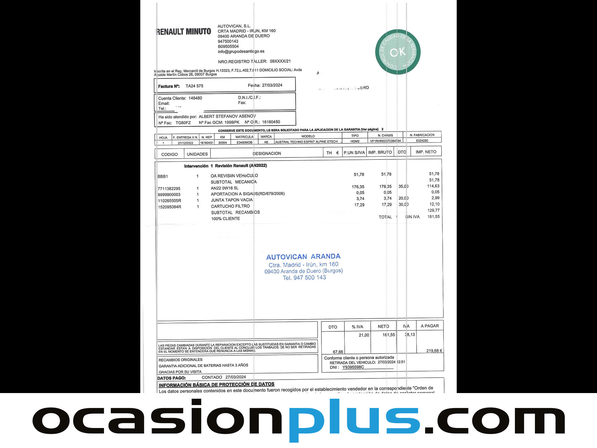 OCASIONPLUS CUMPLE 15 AÑOS Y LO CELEBRA SOLO ESTA SEMANA CON LOS MEJORES PRECIOS DE LA HISTORIA OCASIONPLUS - 14000 COCHES - 100 CENTROS OCASIONPLUS Nº1 CALIDAD - PRECIO Elige el coche que te guste y te lo llevamos a tu ciudad sólo con reservarlo 15 DÍAS / 1000 KMS DE PRUEBA Hasta 3672€ de descuento en este coche Precio oferta financiado: 25228€ (consulta condiciones específicas de promo - sujeta a aprobación de la entidad financiera) Precio al contado: 27750€ ADEMÁS, HACEMOS LAS MEJORES FINANCIACIONES DEL MERCADO, PREGÚNTANOS!! Equipamiento destacado: Tapicería cuero-alcántara, Asientos calefactables, Car Play, Navegador, Cámara de marcha atrás, Ayuda aparcamiento, Asistente de mantenimiento de carril, Encendido automático de faros, Sensor de lluvia, Faros delanteros led, Faros traseros led, Start/Stop automático, Control de velocidad, Limitador de velocidad, Volante multifunción, Arranque por botón, Portón del maletero eléctrico, Aire Acondicionado (Climatizador), Isofix, Bluetooth, Freno de estacionamiento eléctrico, Llantas de aleación (20"). - Coche Nacional, Historial Mantenimiento, Único propietario. - Garantía total 1 año, con cobertura nacional, ampliable a 24 meses. Garantía fabricante 12/2027 - Certificado de Kilómetros y ausencia de golpes estructurales. - Sobrevaloramos tu coche en operaciones de cambio. Tásalo ahora en ocasionplus.com - Entregamos cualquier coche en cualquier centro - Abierto Domingo y Festivos.