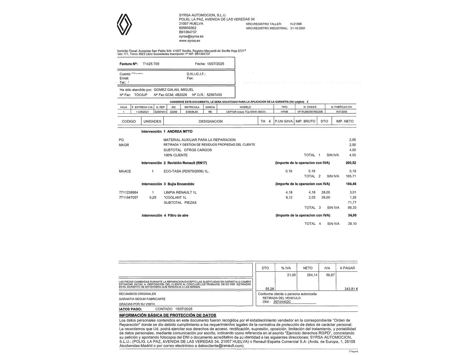 ¡LLEGA LA FERIA DE OTOÑO A OCASIONPLUS! HASTA 8.000 € DE DESCUENTO EN MÁS DE 16.000 COCHES.. OCASIONPLUS - 16000 COCHES - 100 CENTROS OCASIONPLUS Nº1 CALIDAD - PRECIO Elige el coche que te guste y te lo llevamos a tu ciudad sólo con reservarlo 15 DÍAS / 1000 KMS DE PRUEBA Hasta 1526€ de descuento en este coche Precio oferta financiado: 15264€ (consulta condiciones específicas de promo - sujeta a aprobación de la entidad financiera) Precio al contado: 16790€ ADEMÁS, HACEMOS LAS MEJORES FINANCIACIONES DEL MERCADO, PREGÚNTANOS!! Equipamiento destacado: Car Play, Cámara de marcha atrás, Ayuda aparcamiento, Encendido automático de faros, Asistente de mantenimiento de carril, Sensor de lluvia, Faros delanteros led, Faros traseros led, Control de velocidad, Limitador de velocidad, Volante multifunción, Arranque por botón, Aire Acondicionado (Climatizador), Freno de estacionamiento eléctrico, Bluetooth, Isofix. - Coche Nacional, Historial Mantenimiento, Único propietario. - Garantía total 1 año, con cobertura nacional, ampliable a 24 meses. - Certificado de Kilómetros y ausencia de golpes estructurales. - Sobrevaloramos tu coche en operaciones de cambio. Tásalo ahora en ocasionplus.com - Entregamos cualquier coche en cualquier centro - Abierto Domingo y Festivos.