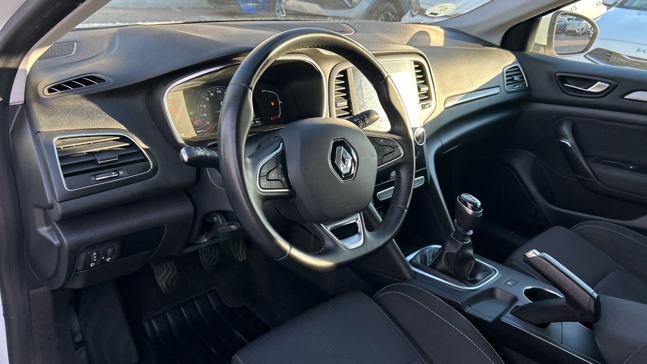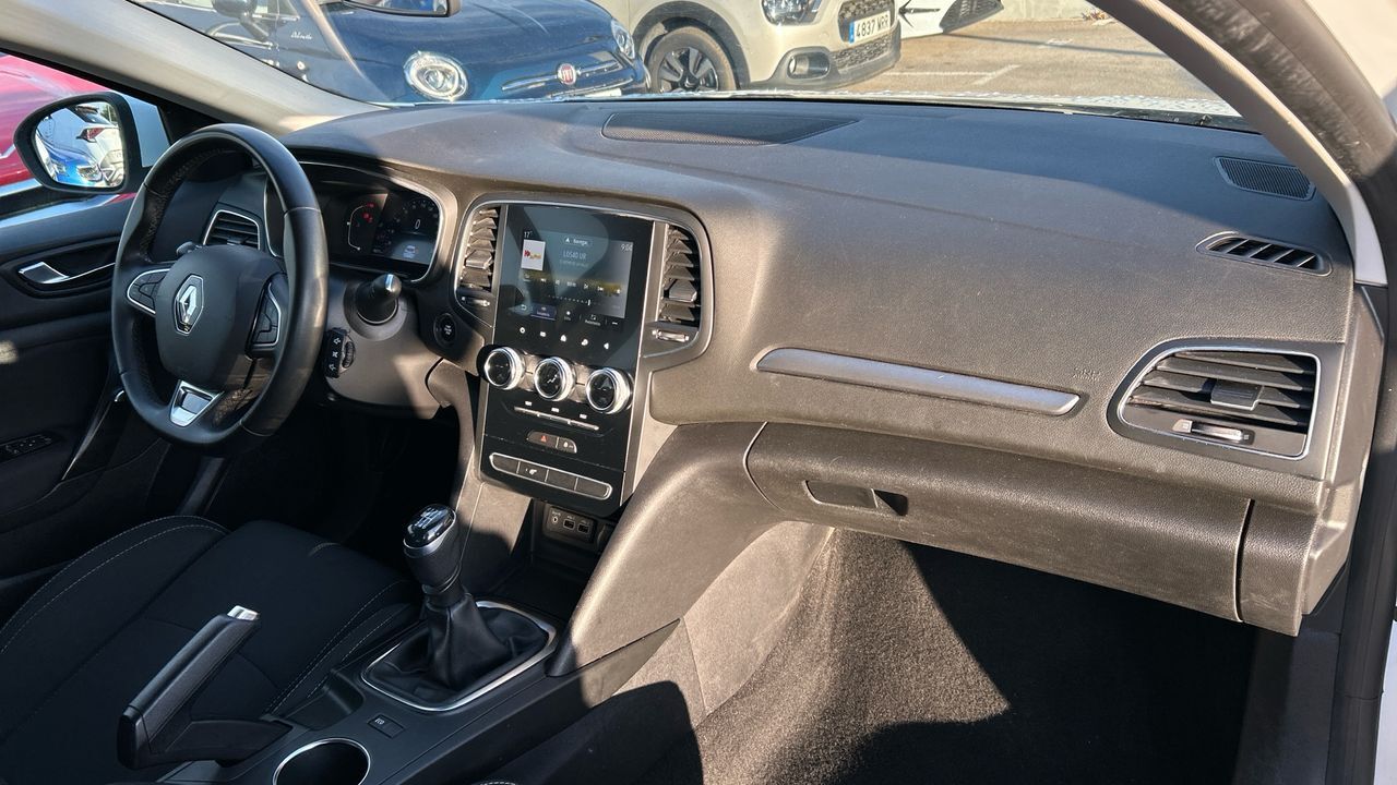 Este Renault Mégane es una berlina equilibrada, pensada para ofrecer confort y eficiencia en cada trayecto. Con 80.067 km, su motor diésel de 115 CV proporciona una respuesta suave y un consumo ajustado, ideal para quienes recorren distancias largas con frecuencia. El acabado Business incluye climatizador automático, pantalla táctil con conectividad móvil, control de velocidad, sensores de aparcamiento y asistente de mantenimiento de carril. Su diseño exterior en blanco transmite sobriedad y elegancia, mientras que el interior ofrece espacio y ergonomía. Es una opción muy interesante para conductores que valoran la practicidad, el confort y la eficiencia en el día a día, tanto en ciudad como en carretera. Financiación 100% a tu medida y hasta 3 años de garantía. Aceptamos tu coche como parte de pago, con la máxima tasación tanto presencial como online. ***EQUIPAMIENTO OPCIONAL INCLUIDO*** - Pintura Blanco Glaciar ***EQUIPAMIENTO SERIE INCLUIDO*** - Cinco plazas ( 2+3 ) - Cuatro altavoces - Equipo de audio con radio AM/FM. RDS. radio digital y pantalla táctil pantalla a color. 0 y radio reproduce MP3 - Control remoto de audio en el volante - Toma/s de 12v en los asientos delanteros y los asientos traseros - Cuatro frenos de disco siendo dos ventilados - ABS - Apertura a distancia del maletero con control remoto - Control de crucero - Luces de lectura delanteras y traseras - Iluminación de acceso - Espejo de cortesía en conductor en acompañante - Sensores de aparcamiento delanteros y traseros con radar - Combustible: diesel y Combustible primario: diesel - Acabados de lujo: pomo de la palanca de cambios en aleación. consola central en aluminio simil. puertas en aluminio simil y tablero en aluminio simil - Faros con lente elipsoidal. bombilla LED y luz larga con bombilla LED - Regulación de los faros con ajuste de altura manual y sensor de luz ambiental - Luces antiniebla delanteras - Encendido diurno automático - Airbag lateral de cortina delantero y trasero - Bandeja trasera rígida - Sujeción de carga - Cierre centralizado con apertura por tarjeta/llave inteligente y contról de los elevalunas - Airbag frontal del conductor inteligente. airbag frontal del acompañante desconectable y inteligente - Airbags laterales delanteros - Dos reposacabezas en asientos delanteros ajustables en altura. tres reposacabezas en asientos traseros ajustables en altura - Cinturón de seguridad delantero en asiento conductor. acompañante y ajustable en altura con pretensores - Cinturón de seguridad trasero en lado conductor. cinturón de seguridad trasero en lado acompañante. cinturón de seguridad trasero en asiento central de 3 puntos - Asientos de tela (material principal) y de tela (material secundario) - Apoyabrazos central delantero - Asiento delantero del conductor individual. ajuste longitudinal manual. ajuste manual en altura y ajuste lumbar manual con ajuste manual del respaldo. asiento delantero del acompañante individual y ajuste longitudinal manual con ajuste manual del respaldo - Sujetavasos en los asientos delanteros - Sistema de ventilación con pantalla digital y filtro de pólen combustión y controles en pantalla táctil - Controles de climatización diferenciados digitales para conductor/acompañante - Aire acondicionado bizona de automático - Limpiaparabrisas delantero con sensor de lluvia - Elevalunas eléctricos delanteros y traseros con dos de ellos de un solo toque - Navegador con datos vía tarjeta SD y pantalla a color de 7.0 con información en 3D y con voz. control mediante pantalla táctil y información de tráfico 17.8 y 0 - Consola en el suelo - Distribución electrónica de la frenada - Sistema de servofreno de emergencia - Indicador de baja presion de los neumáticos con visualización de presión y sensor Montado en la llanta - Preparación Isofix - Tarjeta / llave inteligente automática con entrada sin llave y arranque sin llave incluye bloqueo al alejarse - Sistema activacion por voz del sistema de audio. teléfono y sistema de navegación - Control de frenada en curva - Filtro de partículas - Resultado de pruebas de impacto Euro NCAP :. puntuación global: 5.00. protección adultos: 88.00. protección niños: 87.00. protección peatones: 71.00. puntuación ayudas a la seguridad: 71.00. Versión evaluada: Renault Megane 1.5dCi 5dr HA y Fecha del test: 07 dic 2015 - Control de arranque en pendiente - Encendido automático luces emergencia - Bluetooth ( incluye música por 'streaming' ) - Start/Stop parada y arranque automático - Conexión para: entrada AUX delantera. USB delantero. USB trasero. 2 y 2 - Botón de arranque del vehículo - Limitador de velocidad - Luces de cruce. luces intermitentes laterales. Luces de día. Luces traseras y luces de carretera con tecnología LED - Recuperación de la energía