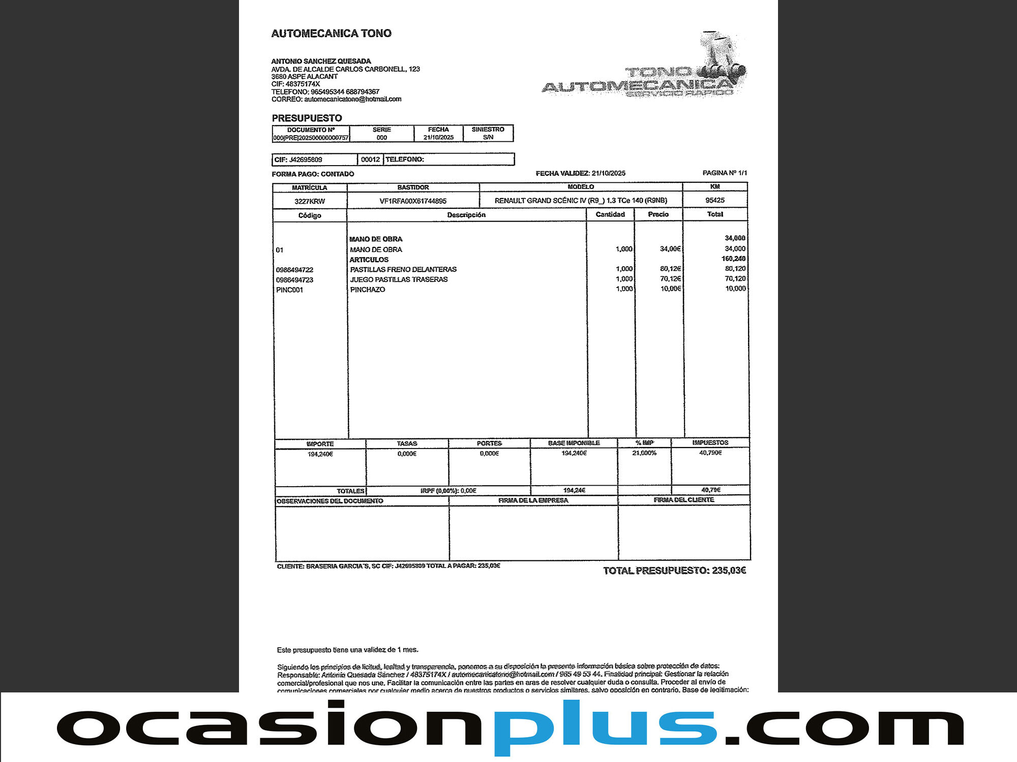 OCASIONPLUS - 20000 COCHES - 120 CENTROS OCASIONPLUS Nº1 CALIDAD - PRECIO Elige el coche que te guste y te lo llevamos a tu ciudad sólo con reservarlo 15 DÍAS / 1000 KMS DE PRUEBA Hasta 1526€ de descuento en este coche Precio oferta financiado: 15264€ (consulta condiciones específicas de promo - sujeta a aprobación de la entidad financiera) Precio al contado: 16790€ ADEMÁS, HACEMOS LAS MEJORES FINANCIACIONES DEL MERCADO, PREGÚNTANOS!! Equipamiento destacado: Tercera fila de asientos, Navegador, Cámara de marcha atrás, Ayuda aparcamiento, Encendido automático de faros, Sensor de lluvia, Start/Stop automático, Control de velocidad, Limitador de velocidad, Volante multifunción, Arranque por botón, Aire Acondicionado (Climatizador), Isofix, Bluetooth, Freno de estacionamiento eléctrico, Llantas de aleación (20"). - Coche Nacional, Historial Mantenimiento. - Garantía total 1 año, con cobertura nacional, ampliable a 24 meses. - Certificado de Kilómetros y ausencia de golpes estructurales. - Sobrevaloramos tu coche en operaciones de cambio. Tásalo ahora en ocasionplus.com - Entregamos cualquier coche en cualquier centro - Abierto Domingo y Festivos.