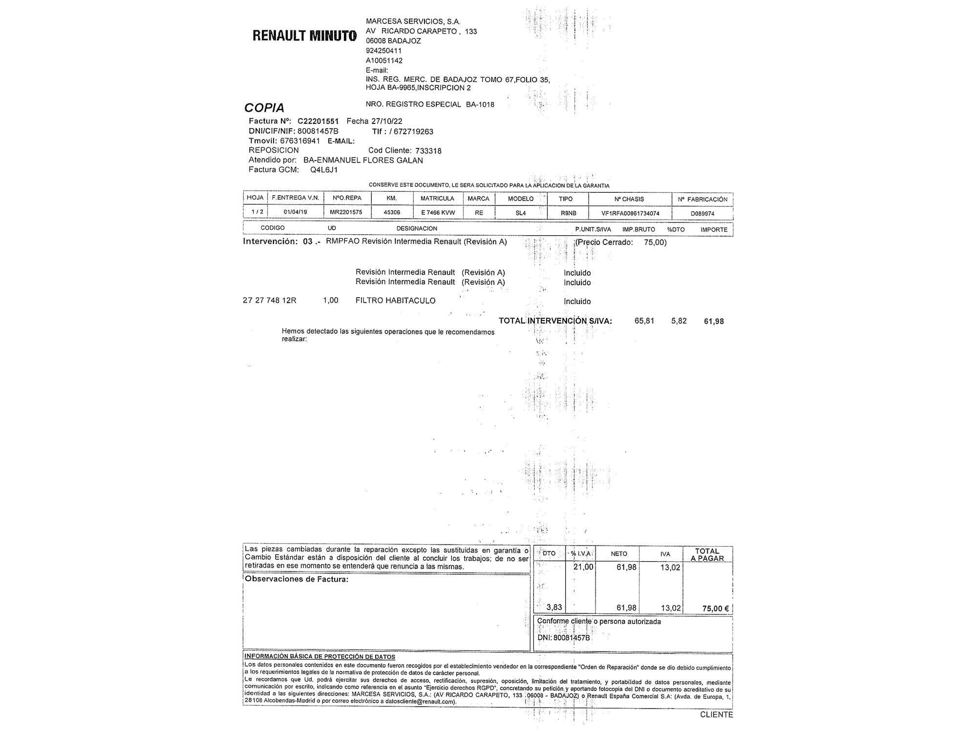 Renault con 110.550 kilómetros de 2019 en Madrid