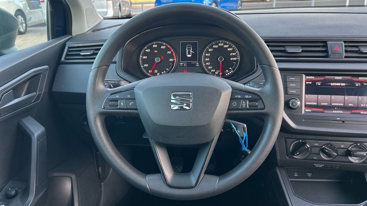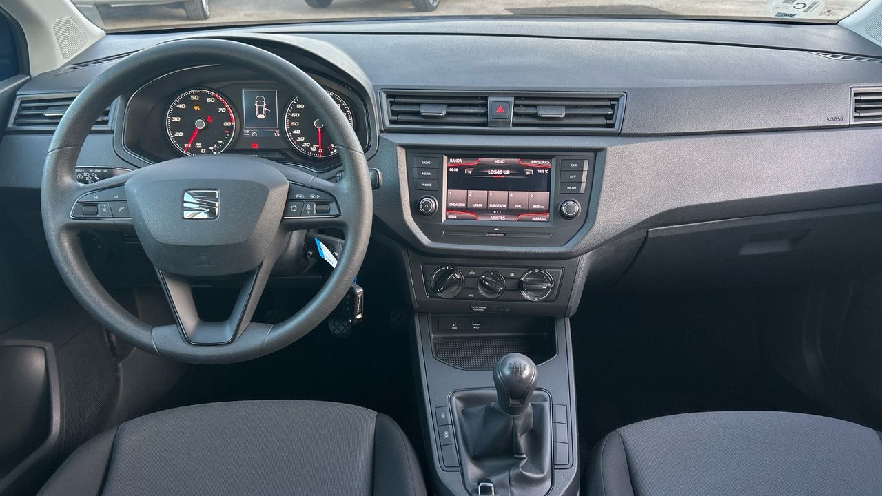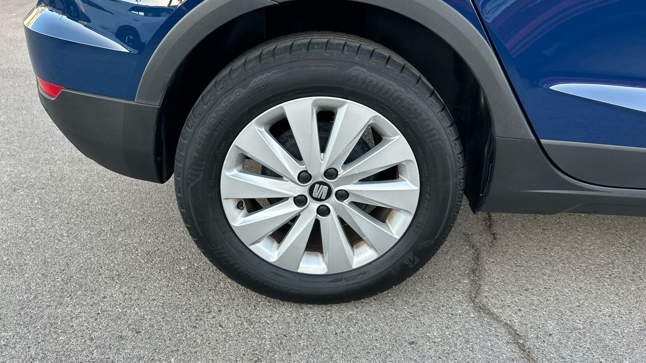 El SEAT Arona es un SUV compacto que destaca por su practicidad y eficiencia, ideal para quienes buscan un vehículo versátil para el día a día. Este modelo gasolina de 95 CV ofrece una conducción ágil y cómoda, perfecta tanto para entornos urbanos como para desplazamientos más largos. Ha recorrido 47.093 km y se presenta en color azul, con un diseño moderno y funcional. En el acabado Reference Edition, incluye aire acondicionado, sistema multimedia con pantalla táctil, conectividad móvil, control de velocidad y sensores de aparcamiento traseros. También cuenta con volante multifunción, asistente de arranque en pendiente y detalles que mejoran la experiencia al volante. Es una opción muy equilibrada para conductores que valoran la sencillez, el consumo contenido y la fiabilidad. Financiación 100% a tu medida y hasta 3 años de garantía. Aceptamos tu coche como parte de pago, con la máxima tasación tanto presencial como online. ***EQUIPAMIENTO SERIE INCLUIDO*** - Cinco plazas ( 2+3 ) - Seis altavoces - Equipo de audio con radio AM/FM. RDS. Tarjeta digital y pantalla táctil pantalla color - Control remoto de audio en el volante - Dos frenos de disco siendo dos ventilados - ABS - Apertura a distancia del maletero con control remoto - Control de crucero - Luz en el maletero - Sensores de aparcamiento traseros con radar - Combustible: sin plomo 95 octanos y Combustible primario: gasolina - Faros con lente de superficie compleja. bombilla halógena y luz larga con bombilla halógena - Regulación de los faros con ajuste de altura manual - Encendido diurno automático - Airbag lateral de cortina delantero y trasero - Bandeja trasera rígida - Sujeción de carga - Cierre centralizado con mando a distancia - Portaequipajes longitudinal en el techo en negro/gris (no pintado) con barras transversales fijas - Airbag frontal del conductor. airbag frontal del acompañante desconectable - Airbags laterales delanteros - Dos reposacabezas en asientos delanteros ajustables en altura. tres reposacabezas en asientos traseros ajustables en altura - Cinturón de seguridad delantero en asiento conductor y acompañante con pretensores - Cinturón de seguridad trasero en lado conductor con pretensores. cinturón de seguridad trasero en lado acompañante con pretensores. cinturón de seguridad trasero en asiento central de 3 puntos - Asientos de tela (material principal) y de tela (material secundario) - Asiento delantero del conductor individual. ajuste longitudinal manual y ajuste manual en altura con ajuste manual del respaldo. asiento delantero del acompañante individual y ajuste longitudinal manual con ajuste manual del respaldo - Sujetavasos en los asientos delanteros - Sistema de ventilación con filtro de pólen combustión - Aire acondicionado - Limpiaparabrisas delantero - Elevalunas eléctricos delanteros y traseros - Consola en el suelo - Distribución electrónica de la frenada - Sistema de servofreno de emergencia - Indicador de baja presion de los neumáticos - Preparación Isofix - Filtro de partículas - Resultado de pruebas de impacto Euro NCAP :. puntuación global: 5.00. protección adultos: 95.00. protección niños: 80.00. protección peatones: 77.00. puntuación ayudas a la seguridad: 60.00. Versión evaluada: SEAT Arona 1.0 'Excellence' 5dr SUV y Fecha del test: 08 nov 2017 - Control de arranque en pendiente - Sistema de alarma de colisión: activa las luces de freno con asistencia de frenado. sistema antiatropello de peatones y monitorización del conductor de 0 Km/h como mínimo aviso visual/ acústico - Bluetooth ( incluye conexión para el teléfono ) ( incluye música por 'streaming' ) - Start/Stop parada y arranque automático - Conexión para: ipod delantero. entrada AUX delantera y USB delantero - Limitador de velocidad