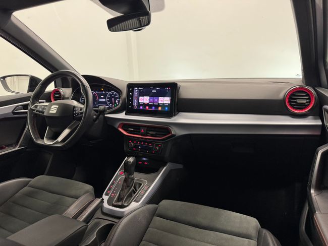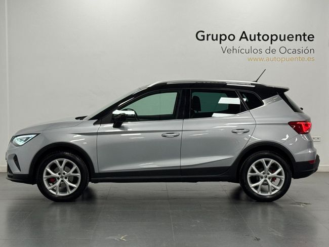 SEAT Arona FR 1.5 TSI 150CV DSG Automático | 2023 | 39.000 km Nacional – Único propietario – IVA deducible – Garantía total 1 año – Kilometraje certificado ¡DESDE 299€/MES SIN ENTRADA! Autopuente Ocasión, concesionario oficial Renault con más de 30 años de experiencia, te ofrece este espectacular SEAT Arona 1.5 TSI 150CV DSG Automático, un SUV nacional, de único propietario y en perfecto estado de carrocería, interior y mecánica. Entregamos tu nuevo vehículo a domicilio, aceptamos tu coche como parte de pago y ofrecemos financiación rápida y flexible. ¡SOMOS EL ÚNICO CONCESIONARIO CON 5 ESTRELLAS EN GOOGLE! Tecnología y conectividad: Pantalla multimedia táctil con navegador GPS, Apple CarPlay y Android Auto, cuadro digital Virtual Cockpit, llamada de emergencia SOS y tomas USB-C. Incluye modos de conducción, sistema Start/Stop, iluminación ambiental y control por voz para una experiencia moderna y conectada. Seguridad y asistencia: Front Assist con detección de obstáculos, asistente de mantenimiento de carril, reconocimiento de señales de tráfico y de fatiga, cámara de visión trasera, sensores de aparcamiento delanteros y traseros, control de crucero adaptativo y ayuda al aparcamiento, garantizando una conducción cómoda y segura. Confort y diseño: Interior con climatizador bizona, volante multifuncional, arranque por botón, espejos eléctricos, faros y pilotos LED, materiales de alta calidad y diseño ergonómico. El Arona combina un carácter urbano y dinámico con la fiabilidad del grupo Volkswagen, ofreciendo un comportamiento ágil y eficiente. Estado del vehículo: Revisión completa recién realizada, mantenimiento al día y vehículo revisado minuciosamente para garantizar el mejor estado antes de la entrega. Precio: 20.990 € sujeto a financiación | 22.990 € al contado (+600 € de cambio de nombre y preentrega) Por qué elegir este SEAT Arona: Un SUV compacto, eficiente y con el potente motor 1.5 TSI de 150CV, ideal para quienes buscan estilo, tecnología y dinamismo en un vehículo moderno y seguro. ¡Solicita más información o ven a probarlo sin compromiso! Este anuncio no es vinculante, puede contener errores y se muestra a título informativo y no contractual.