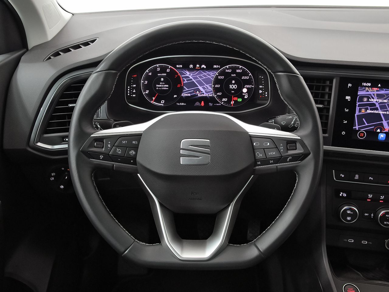 SEAT ATECA 1.5 TSI 150 S/S STYLE XXL DSG 5P - ENTREGA INMEDIATA - KILOMETRAJE CERTIFICADO - MATRICULACIÓN: 06/2024 EQUIPAMIENTO DESTACADO: - ASISTENTE DE APARCAMIENTO AUTOMÁTICO - ASIENTO ELÉCTRICO CON MEMORIA CALEFACTABLE - CARGADOR INALÁMBRICO EN CONSOLA CENTRAL - CUADRO DIGITAL COMPLETAMENTE CONFIGURABLE - ANDROID AUTO Y CARPLAY INALÁMBRICO - LLANTAS DE ALEACIÓN - Cambio de nombre NO incluído en el precio - Financiación a su medida con o sin entrada hasta el 100% del importe - Aceptamos su actual vehículo como forma de pago, tasación sin compromiso. ONDINAUTO, concesionarios oficiales SEAT, CUPRA DasWeltAuto en: - SANT CUGAT Concesionarios de MAAS ens mous, profesionales desde 1964 Las especificaciones en esta ficha en cuanto a precio, modelo, equipamiento, fotos... pueden contener algún error y por tanto no tienen carácter vinculante no pudiendo constituir en ningún caso la base de un futuro contrato. ***EQUIPAMIENTO OPCIONAL INCLUIDO*** - Rueda de repuesto minimizada 46cm (18) - Llantas de aleación Dynamic de 43cm (17) 36/1 Machined - Faros traseros Full LED con intermitente dinámico - Cámara de visión trasera ***EQUIPAMIENTO SERIE INCLUIDO*** ACABADO INTERIOR - Acabados de lujo: pomo de la palanca de cambios en aluminio y cuero, consola central en cromado y tablero en cromado ASIENTOS - Cinco plazas ( 2+3 ) - Asientos de tela (material principal) y de tela (material secundario) - Apoyabrazos central delantero - Apoyabrazos trasero - Asiento delantero del conductor y acompañante individual, ajuste longitudinal manual, ajuste manual en altura y ajuste lumbar manual con ajuste manual del respaldo - Asientos traseros de tres plazas de tipo banco de orientación delantera con banqueta fija, respaldo abatible asimétrico y ajuste manual del respaldo con plegado remoto AUDIO - Ocho altavoces - Equipo de audio con radio AM/FM, RDS, radio digital y pantalla táctil pantalla a color - Control remoto de audio en el volante - Conexión para: entrada AUX delantera, USB delantero, 2, 0 y 0 CERRADURAS - Cierre centralizado con mando a distancia y contról de los elevalunas CLIMATIZACIóN - Sistema de ventilación con pantalla digital, filtro de pólen y filtro de carbón activo calefacción del motor - Controles de climatización diferenciados digitales para conductor/acompañante - Aire acondicionado bizona de automático COMBUSTIBLE Y ALIMENTACIóN DEL MOTOR - Alimentación : gasolina - inyección directa - Combustible: sin plomo 95 octanos y Combustible primario: gasolina - Depósito principal de combustible: 50 litros CONFORT - Toma/s de 12v en la zona de carga y los asientos delanteros - Preparación para teléfono móvil soporte y cargador - Apertura a distancia del maletero con control remoto - Control de crucero con control de crucero adaptativo y función stop/go - Espejo de cortesía en conductor en acompañante - Sensores de aparcamiento delanteros, traseros y en los lados con sensor - Navegador con datos vía tarjeta SD y pantalla a color de 8,00 con información en 3D y con voz, control mediante pantalla táctil 20,3 - Pantalla de entretenimiento multimedia táctil de 9,20 delantera y 23,4 - Tarjeta / llave inteligente con arranque sin llave - Sistema activacion por voz ninguno - Telemática vía SIM en el vehículo con aviso avanzado automático de colisión - Bluetooth - Botón de arranque del vehículo - Sistema de asistencia de aparcamiento trasero con aparcamient semiautomático perpendicular - Limitador de velocidad - Informacion Espacio para Parking - Conexión wi-fi 0 y tarjeta SIM integrada - Base de carga inalámbrica - Aplicaciones integradas - Control de Apps - Prev. colisiones en cruce tráfico tras. radar y incluye frenado - Conversión texto a voz / voz a texto - Integración móvil Apple CarPlay, Android Auto, MirrorLink, 999, 999, 0, 999, conexión inalámbrica Apple y Conexión inalámbrica Android DIMENSIONES - Dimensiones exteriores: 4.381 mm de largo, 1.841 mm de ancho, 1.615 mm de alto, 2.638 mm de batalla, 1.576 mm de ancho de vía delantero, 1.541 mm de ancho de vía trasero, 10.800 mm de diámetro de giro entre bordillos, 2.078 y 81,8 - Dimensiones interiores: - Capacidad del compartimento de carga: 510 litros (hasta las ventanas con asientos montados) ( medición ISO ) 0 l de almacenamiento delantero y 0,0 cu ft de almacenamiento delantero ESPACIO DE CARGA - Bandeja trasera rígida - Sujeción de carga FRENOS - Cuatro frenos de disco siendo dos ventilados - ABS - Sistema de servofreno de emergencia - Freno mano electrónico - Control de arranque en pendiente INSTRUMENTACIóN - Tablero de instrumentos digital con TFT configurable - Testigo de cinturones ( cuatro ) - Ordenador de viaje con consumo medio - Indicador de baja presion de los neumáticos - Pantalla multifunción de 10,30 panel de instrumentos 1 y 26,2, pantalla multifunción táctil de 9,20 Salpicadero central 1, 23,4, orientación de la pantalla fija y no - Reconocimiento señales de tráfico LUCES - Faros con lente elipsoidal, bombilla LED y luz larga con bombilla LED - Regulación de los faros con ajuste de altura automático, sensor de oscuridad y sensor de vehículos en sentido contrario - Luces antiniebla delanteras - Luces laterales maniobras/de bordillo - Encendido diurno automático - Luces de freno, luces frontales antiniebla, luces de cruce, luces intermitentes laterales, Luces de día, Luces traseras y luces de carretera con tecnología LED MANTENIMIENTO - Mantenimiento intermedio cada 30.000 km y 24 meses : variable distancia/tiempo - Mantenimiento principal cada 60.000 km, 48 meses : variable distancia/tiempo MOTOR - Motor de 1,5 litros ( 1.498 cc ) , cuatro cilindros en línea con 74,5 mm de diámetro y 85,9 mm de carrera ; código del motor: DS9 - Compresor: uno de tipo turbo - Norma de emisiones EU6 D, 0,00003 g/km (partículas), g/km Nox y C - Etiqueta de eficiciencia energética clase A - Filtro de partículas - Start/Stop parada y arranque automático - Recuper