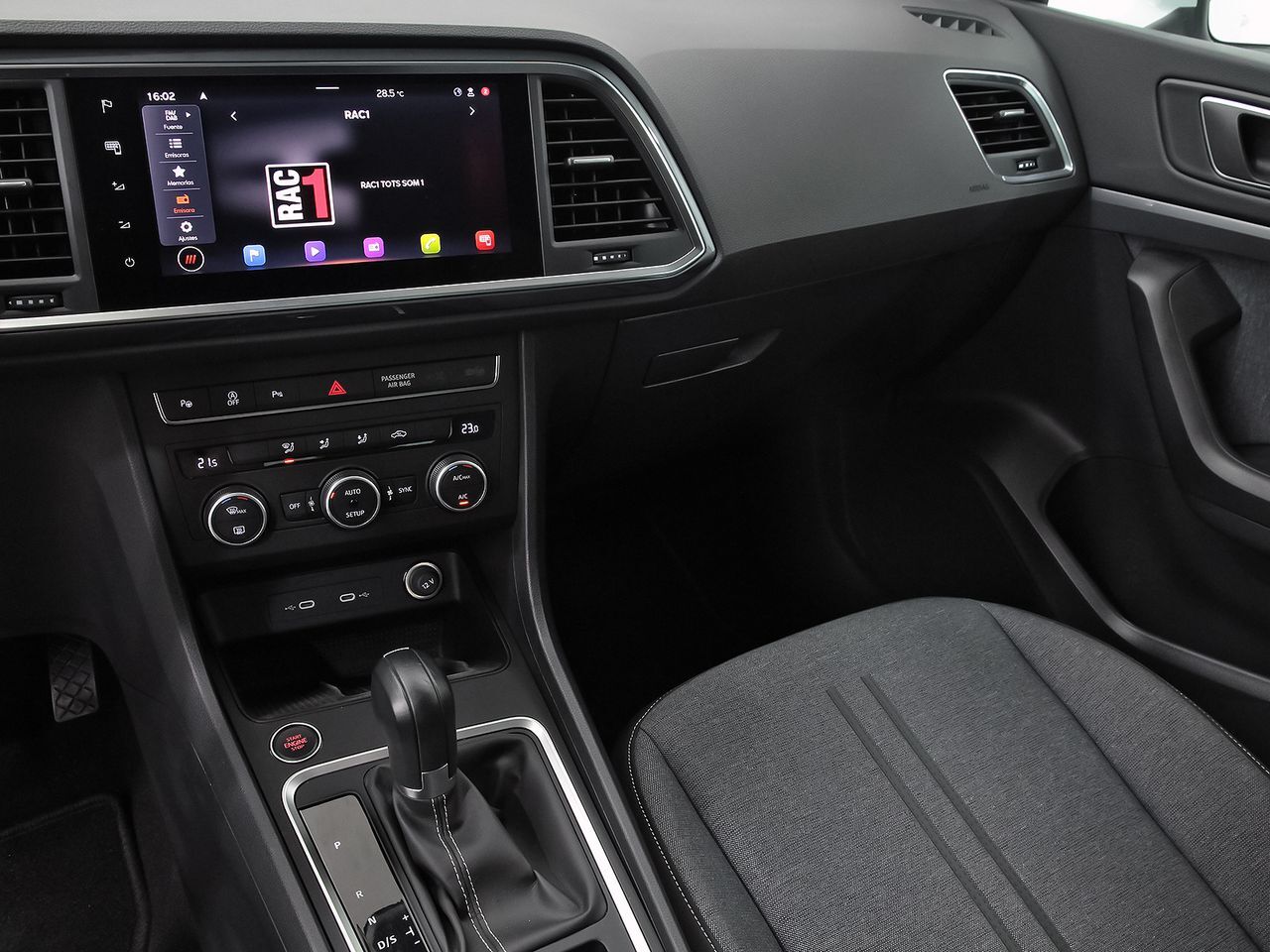 SEAT ATECA 1.5 TSI 150 S/S STYLE XXL DSG 5P - ENTREGA INMEDIATA - KILOMETRAJE CERTIFICADO - MATRICULACIÓN: 06/2024 EQUIPAMIENTO DESTACADO: - ASISTENTE DE APARCAMIENTO AUTOMÁTICO - ASIENTO ELÉCTRICO CON MEMORIA CALEFACTABLE - CARGADOR INALÁMBRICO EN CONSOLA CENTRAL - CUADRO DIGITAL COMPLETAMENTE CONFIGURABLE - ANDROID AUTO Y CARPLAY INALÁMBRICO - LLANTAS DE ALEACIÓN - Cambio de nombre NO incluído en el precio - Financiación a su medida con o sin entrada hasta el 100% del importe - Aceptamos su actual vehículo como forma de pago, tasación sin compromiso. ONDINAUTO, concesionarios oficiales SEAT, CUPRA DasWeltAuto en: - SANT CUGAT Concesionarios de MAAS ens mous, profesionales desde 1964 Las especificaciones en esta ficha en cuanto a precio, modelo, equipamiento, fotos... pueden contener algún error y por tanto no tienen carácter vinculante no pudiendo constituir en ningún caso la base de un futuro contrato. ***EQUIPAMIENTO OPCIONAL INCLUIDO*** - Rueda de repuesto minimizada 46cm (18) - Llantas de aleación Dynamic de 43cm (17) 36/1 Machined - Faros traseros Full LED con intermitente dinámico - Cámara de visión trasera ***EQUIPAMIENTO SERIE INCLUIDO*** ACABADO INTERIOR - Acabados de lujo: pomo de la palanca de cambios en aluminio y cuero, consola central en cromado y tablero en cromado ASIENTOS - Cinco plazas ( 2+3 ) - Asientos de tela (material principal) y de tela (material secundario) - Apoyabrazos central delantero - Apoyabrazos trasero - Asiento delantero del conductor y acompañante individual, ajuste longitudinal manual, ajuste manual en altura y ajuste lumbar manual con ajuste manual del respaldo - Asientos traseros de tres plazas de tipo banco de orientación delantera con banqueta fija, respaldo abatible asimétrico y ajuste manual del respaldo con plegado remoto AUDIO - Ocho altavoces - Equipo de audio con radio AM/FM, RDS, radio digital y pantalla táctil pantalla a color - Control remoto de audio en el volante - Conexión para: entrada AUX delantera, USB delantero, 2, 0 y 0 CERRADURAS - Cierre centralizado con mando a distancia y contról de los elevalunas CLIMATIZACIóN - Sistema de ventilación con pantalla digital, filtro de pólen y filtro de carbón activo calefacción del motor - Controles de climatización diferenciados digitales para conductor/acompañante - Aire acondicionado bizona de automático COMBUSTIBLE Y ALIMENTACIóN DEL MOTOR - Alimentación : gasolina - inyección directa - Combustible: sin plomo 95 octanos y Combustible primario: gasolina - Depósito principal de combustible: 50 litros CONFORT - Toma/s de 12v en la zona de carga y los asientos delanteros - Preparación para teléfono móvil soporte y cargador - Apertura a distancia del maletero con control remoto - Control de crucero con control de crucero adaptativo y función stop/go - Espejo de cortesía en conductor en acompañante - Sensores de aparcamiento delanteros, traseros y en los lados con sensor - Navegador con datos vía tarjeta SD y pantalla a color de 8,00 con información en 3D y con voz, control mediante pantalla táctil 20,3 - Pantalla de entretenimiento multimedia táctil de 9,20 delantera y 23,4 - Tarjeta / llave inteligente con arranque sin llave - Sistema activacion por voz ninguno - Telemática vía SIM en el vehículo con aviso avanzado automático de colisión - Bluetooth - Botón de arranque del vehículo - Sistema de asistencia de aparcamiento trasero con aparcamient semiautomático perpendicular - Limitador de velocidad - Informacion Espacio para Parking - Conexión wi-fi 0 y tarjeta SIM integrada - Base de carga inalámbrica - Aplicaciones integradas - Control de Apps - Prev. colisiones en cruce tráfico tras. radar y incluye frenado - Conversión texto a voz / voz a texto - Integración móvil Apple CarPlay, Android Auto, MirrorLink, 999, 999, 0, 999, conexión inalámbrica Apple y Conexión inalámbrica Android DIMENSIONES - Dimensiones exteriores: 4.381 mm de largo, 1.841 mm de ancho, 1.615 mm de alto, 2.638 mm de batalla, 1.576 mm de ancho de vía delantero, 1.541 mm de ancho de vía trasero, 10.800 mm de diámetro de giro entre bordillos, 2.078 y 81,8 - Dimensiones interiores: - Capacidad del compartimento de carga: 510 litros (hasta las ventanas con asientos montados) ( medición ISO ) 0 l de almacenamiento delantero y 0,0 cu ft de almacenamiento delantero ESPACIO DE CARGA - Bandeja trasera rígida - Sujeción de carga FRENOS - Cuatro frenos de disco siendo dos ventilados - ABS - Sistema de servofreno de emergencia - Freno mano electrónico - Control de arranque en pendiente INSTRUMENTACIóN - Tablero de instrumentos digital con TFT configurable - Testigo de cinturones ( cuatro ) - Ordenador de viaje con consumo medio - Indicador de baja presion de los neumáticos - Pantalla multifunción de 10,30 panel de instrumentos 1 y 26,2, pantalla multifunción táctil de 9,20 Salpicadero central 1, 23,4, orientación de la pantalla fija y no - Reconocimiento señales de tráfico LUCES - Faros con lente elipsoidal, bombilla LED y luz larga con bombilla LED - Regulación de los faros con ajuste de altura automático, sensor de oscuridad y sensor de vehículos en sentido contrario - Luces antiniebla delanteras - Luces laterales maniobras/de bordillo - Encendido diurno automático - Luces de freno, luces frontales antiniebla, luces de cruce, luces intermitentes laterales, Luces de día, Luces traseras y luces de carretera con tecnología LED MANTENIMIENTO - Mantenimiento intermedio cada 30.000 km y 24 meses : variable distancia/tiempo - Mantenimiento principal cada 60.000 km, 48 meses : variable distancia/tiempo MOTOR - Motor de 1,5 litros ( 1.498 cc ) , cuatro cilindros en línea con 74,5 mm de diámetro y 85,9 mm de carrera ; código del motor: DS9 - Compresor: uno de tipo turbo - Norma de emisiones EU6 D, 0,00003 g/km (partículas), g/km Nox y C - Etiqueta de eficiciencia energética clase A - Filtro de partículas - Start/Stop parada y arranque automático - Recuper