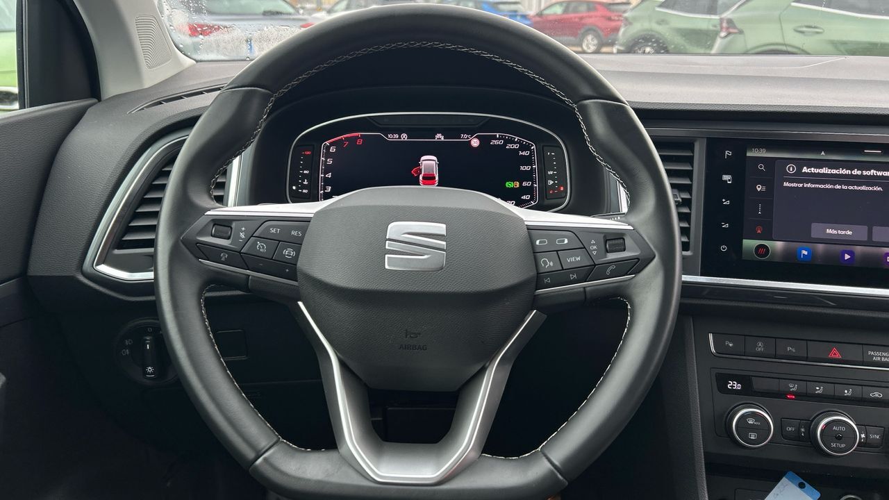 El SEAT Ateca 1.5 TSI Style XM combina diseño elegante y funcionalidad para quienes buscan espacio y dinamismo en un SUV compacto. Su motor gasolina de 150 CV con cambio automático DSG ofrece una conducción fluida y eficiente, perfecta para viajes largos y desplazamientos urbanos. Con solo 13.295 km, se encuentra en excelente estado. En su interior encontrarás confort y tecnología: pantalla táctil con conectividad, climatizador bizona, control de crucero adaptativo y sensores de aparcamiento que facilitan cada maniobra. Además, incluye llantas de aleación y detalles que realzan su estilo. Es una opción ideal para familias o conductores que valoran amplitud, seguridad y un toque deportivo en su día a día. Vehículo comercializado por Grupo Seligrat (Concesionario oficial de las marcas OPEL, PEUGEOT, KIA, HONDA, MITSUBISHI, CHANGAN, SUZUKI y MAXUS) con más de 50 años en el sector, especialistas en la venta de vehículos de ocasión online y presencial. Financiación 100% a tu medida, contacta con nosotros y te informamos sin compromiso. Posibilidad de entrega de tu coche como parte de pago, te damos la máxima tasación tanto presencial, como online. Financiación 100% a tu medida y hasta 3 años de garantía. ***EQUIPAMIENTO SERIE INCLUIDO*** - Cinco plazas ( 2+3 ) - Ocho altavoces - Equipo de audio con radio AM/FM. radio digital y pantalla táctil pantalla a color - Control remoto de audio en el volante - Toma/s de 12v en los asientos delanteros - Cuatro frenos de disco siendo dos ventilados - ABS - Control de crucero con control de crucero adaptativo (ACC) y función stop/go - Espejo de cortesía en conductor en acompañante - Sistema de distancia de aparcamiento traseros con sensor - Combustible: sin plomo 95 octanos y Combustible primario: gasolina - Acabados de lujo: pomo de la palanca de cambios en aluminio y cuero. consola central en cromado y tablero en cromado - Faros con lente elipsoidal. bombilla LED y luz larga con bombilla LED - Regulación de los faros con ajuste de altura manual. sensor de oscuridad y sensor de vehículos en sentido contrario - Luces antiniebla delanteras - Luces laterales maniobras/de bordillo - Encendido diurno automático - Airbag lateral de cortina delantero y trasero - Bandeja trasera rígida - Sujeción de carga - Cierre centralizado con mando a distancia y contról de los elevalunas - Airbag frontal del conductor. airbag frontal del acompañante desconectable - Airbags laterales delanteros - Dos reposacabezas en asientos delanteros ajustables en altura. tres reposacabezas en asientos traseros ajustables en altura - Cinturón de seguridad delantero en asiento conductor y acompañante con pretensores - Cinturón de seguridad trasero en lado conductor con pretensores. cinturón de seguridad trasero en lado acompañante con pretensores. cinturón de seguridad trasero en asiento central de 3 puntos - Asientos de tela (material principal) y de tela (material secundario) - Apoyabrazos central delantero - Apoyabrazos trasero - Asiento delantero del conductor y acompañante individual. ajuste longitudinal manual. ajuste manual en altura y ajuste lumbar manual con ajuste manual del respaldo - Compartimentos bajo el asiento del conductor - Sujetavasos en los asientos delanteros y los asientos traseros - Sistema de ventilación con pantalla digital. filtro de pólen y filtro de carbón activo calefacción del motor - Controles de climatización diferenciados digitales para conductor/acompañante - Aire acondicionado bizona de automático - Limpiaparabrisas delantero con sensor de lluvia - Elevalunas eléctricos delanteros y traseros con dos de ellos de un solo toque - Sistema de servofreno de emergencia - Pantalla de entretenimiento multimedia táctil de 8.20 delantera y 20.8 - Indicador de baja presión de los neumáticos - Preparación Isofix - Tarjeta / llave inteligente con arranque sin llave - Telemática vía SIM en el vehículo con aviso avanzado automático de colisión - Freno mano electrónico - Filtro de partículas - Resultado de pruebas de impacto Euro NCAP :. puntuación global: 5.0. protección adultos: 93.0. protección niños: 84.0. protección peatones: 71.0. puntuación ayudas a la seguridad: 60.0. Versión evaluada: Seat Ateca 1.6 Diesel 5dr SUV y Fecha del test: 22 jun 2016 - Airbag de rodilla para el conductor - Control de arranque en pendiente - Encendido automático luces emergencia - Sistema de alarma de colisión: activa las luces de freno con asistencia de frenado. sistema antiatropello peatones/ciclistas. monitorización del conductor y frenado a baja velocidad aviso visual/ acústico - Bluetooth - Start/Stop parada y arranque automático - Alerta de cambio de carril: activa la dirección - Conexión para: entrada AUX delantera. USB delantero. 2. 0 y 0 - Botón de arranque del vehículo - Limitador de velocidad - Luces de freno. luces frontales antiniebla. luces de cruce. luces intermitentes laterales. Luces de día. Luces traseras y luces de carretera con tecnología LED - Recuperación de la energía - Reconocimiento señales de tráfico