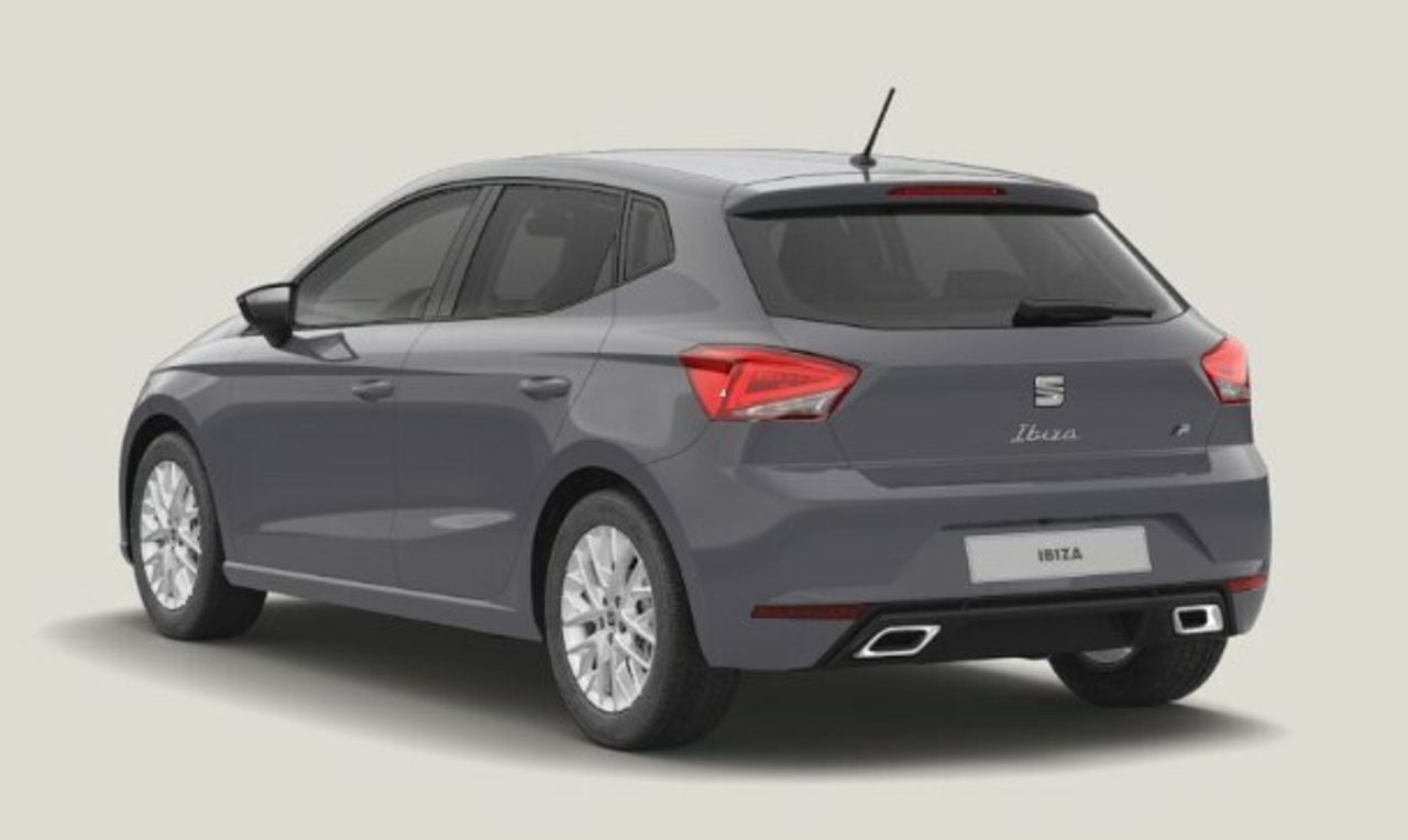 Ibiza 1.0 TSI 85 KW (115 CV) DSG Start/Stop FR Salta! [2025] -Color Gris Graphene -Rueda de repuesto minimizada 15 -SEAT CONNECT PLUS - 3 años -Oferta:715956 ***EQUIPAMIENTO OPCIONAL INCLUIDO*** - SEAT Connect Plus (3 años) - Rueda de repuesto minimizada 15 ***EQUIPAMIENTO SERIE INCLUIDO*** ACABADO INTERIOR - Acabados de lujo: pomo de la palanca de cambios en aluminio y cuero, puertas en negro piano y tablero en cuero sintético ASIENTOS - Cinco plazas ( 2+3 ) - Asientos de tela (material principal) y de tela (material secundario) - Apoyabrazos central delantero - Asiento delantero del conductor y acompañante deportivo, ajuste longitudinal manual y ajuste manual en altura con ajuste manual del respaldo - Asientos traseros de tres plazas de tipo banco partido de orientación delantera con banqueta partida y respaldo abatible asimétrico AUDIO - Cuatro altavoces - Equipo de audio con radio AM/FM, radio digital y pantalla táctil - Control remoto de audio en el volante - Conexión para: USB delantero, 1, 0 y 0 CERRADURAS - Cierre centralizado con apertura por tarjeta/llave inteligente - Protección antirrobo CLIMATIZACIóN - Sistema de ventilación con filtro de carbón activo calefacción del motor - Controles de climatización diferenciados para conductor/acompañante - Aire acondicionado bizona de automático COMBUSTIBLE Y ALIMENTACIóN DEL MOTOR - Combustible: sin plomo 95 octanos y Combustible primario: gasolina - Depósito principal de combustible: 40 litros CONFORT - Toma/s de 12v en los asientos delanteros - Control de crucero con control de crucero adaptativo (ACC) - Espejo de cortesía en conductor en acompañante - Sistema de distancia de aparcamiento delanteros con sensor, sistema de distancia de aparcamiento traseros con sensor y cámara - Navegador con datos vía internet de 9,20 con información en 3D y con voz, control mediante pantalla táctil y información de tráfico 23,4 y 0 - Tarjeta / llave inteligente con entrada sin llave y arranque sin llave - Sistema activacion por voz ninguno - Telemática ( 120 meses incluidos) vía SIM en el vehículo con aviso avanzado automático de colisión asistencia por avería - Bluetooth - Botón de arranque del vehículo - Sistema de asistencia de aparcamiento trasero con visualización de guía - Limitador de velocidad - Modos de conducción con cartografía del motor y dirección - Base de carga inalámbrica - Aplicaciones integradas - Control de Apps - Integración móvil Apple CarPlay, Android Auto, MirrorLink, 999, 999, 999, conexión inalámbrica Apple, Conexión inalámbrica Android y conexión inalámbrica Mirrorlink - Asistente de velocidad inteligente - Iluminación ambiental DIMENSIONES - Dimensiones exteriores: 4.059 mm de largo, 1.780 mm de ancho, 1.444 mm de alto, 2.564 mm de batalla, 1.525 mm de ancho de vía delantero, 1.505 mm de ancho de vía trasero, 10.600 mm de diámetro de giro entre paredes, 1.942, 34,8 y 76,5 - Dimensiones interiores: 1.022 mm de altura entre banqueta-techo (delante), 957 mm de altura entre banqueta-techo (detrás), 1.435 mm de anchura en las caderas (delante) y 1.403 mm de anchura en las caderas (detrás) - Capacidad del compartimento de carga: 355 litros (hasta las ventanas con asientos montados) y 1.165 litros (hasta el techo con asientos plegados) ( medición ISO ) 0 l de almacenamiento delantero y 0,0 cu ft de almacenamiento delantero ESPACIO DE CARGA - Bandeja trasera rígida - Sujeción de carga FRENOS - Cuatro frenos de disco siendo dos ventilados - ABS - Sistema de servofreno de emergencia - Control de arranque en pendiente INSTRUMENTACIóN - Tablero de instrumentos con pantalla TFT configurable - Ordenador de viaje con consumo medio - Indicador de baja presión de los neumáticos - Pantalla de visualización de 10,25 panel de instrumentos 1 y 26,0, pantalla de visualización táctil de 8,25 Salpicadero central 1, 21,0, orientación de la pantalla fija y no - Reconocimiento señales de tráfico LUCES - Faros con lente elipsoidal, bombilla LED y luz larga con bombilla LED - Regulación de los faros con sensor de oscuridad y sensor de vehículos en sentido contrario - Luces antiniebla delanteras - Encendido diurno automático - Luces de freno, luces de cruce, Luces de día, Luces traseras y luces de carretera con tecnología LED MANTENIMIENTO - Mantenimiento principal cada 30.000 km, 24 meses : variable distancia/tiempo MOTOR - Motor de 1,0 litros ( 999 cc ) , tres cilindros en línea ; código del motor: DG8 - Compresor: uno de tipo turbo - Norma de emisiones EU6 E, g/km Nox, C y Euro 6e (EA) - Etiqueta de eficiencia energética clase B - Start/Stop parada y arranque automático - Emisiones WLTP ICE, 125,0, 117,0 y 133,0 - Sistema eléctrico 12 PESOS - Pesos: 1.700 kg (peso máximo admisible), 1.178 kg (peso en vacío), peso en vacío incluyendo al conductor Kg (peso en vacio incluido conductor), 1.200 kg (peso máximo remolcable con freno) y 580 kg (peso máximo remolcable sin freno) ( medición: EU ) PORTAOBJETOS - Sujetavasos en los asientos delanteros PRESTACIONES - Prestaciones: 198 km/h de velocidad máxima y 9,9 segs de aceleración 0-100 km/h - Potencia de 115 CV ( CEE ) 85 kW @ 5.500 rpm (potencia max) 200 Nm de par máximo @ 2.000 rpm (par max) potencia con combustible primario - Consumo de combustible ( WLTP ICE ): 5,2 l/100km (mixto), 19,2 km/l (mixto), 769 Km de autonomía (combinado), 5,2, 5,8, 19,2, 17,2, 45 y 41 PUERTAS - Tiradores de las puertas - Puerta conductor, trasera (lado conductor), pasajero y trasera (lado pasajero) con bisagras delanteras - Puerta trasera con portón RUEDAS - Neumáticos delanteros y traseros de 18 pulgadas de diametro, 215 mm de ancho, 40 % de perfil y índice de velocidad: W con índice de carga: 89 (datos del neumático oficiales de la marca) - Llantas delanteras y traseras en aluminio de 18 pulgadas de diámetro y 7,0 pulgadas de ancho 45,7, 17,8 y PG4 - Equipo reparación neumáticos SEGURIDAD - Airbag lateral de cortina delantero y tra